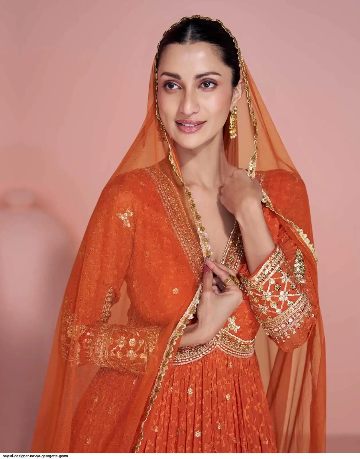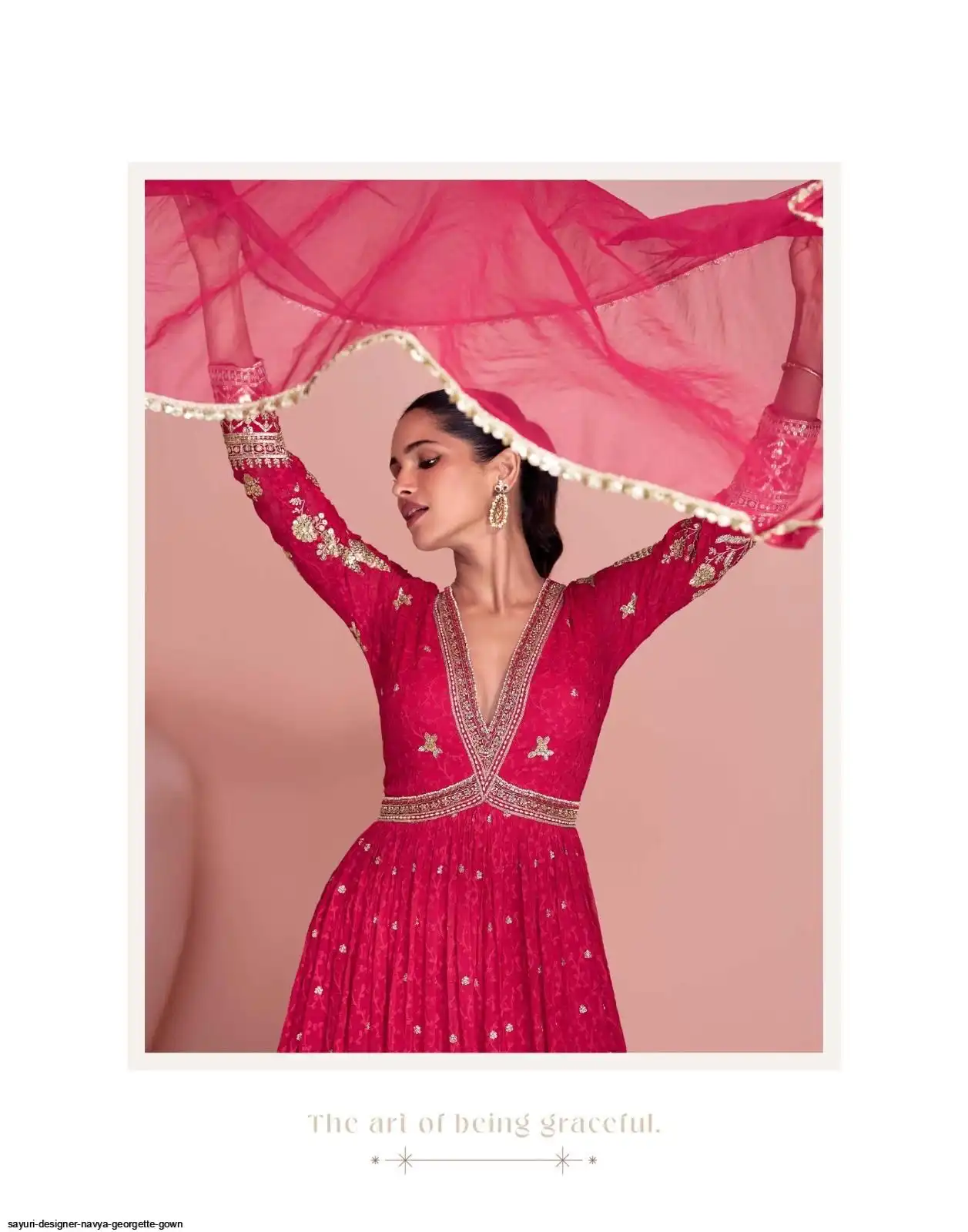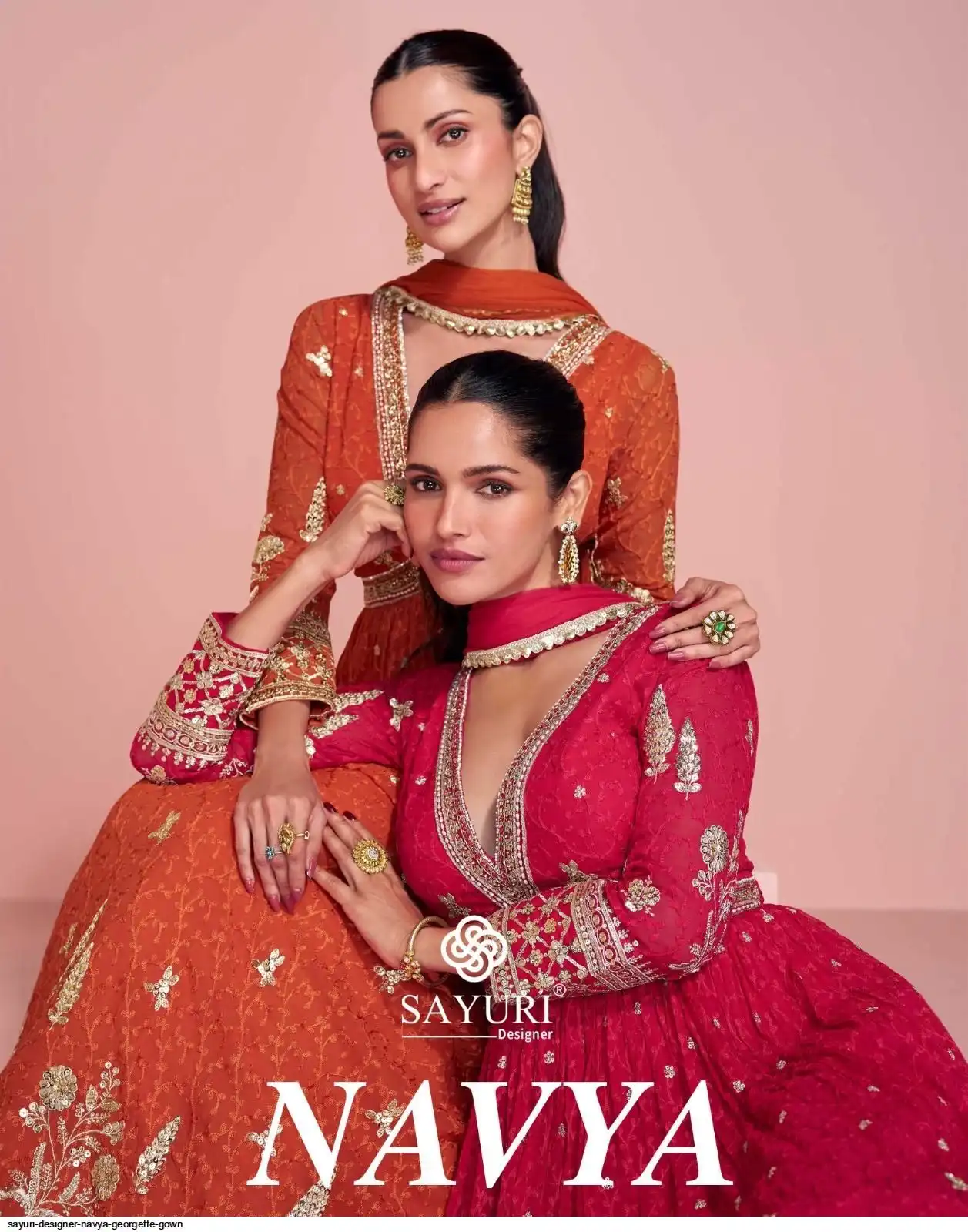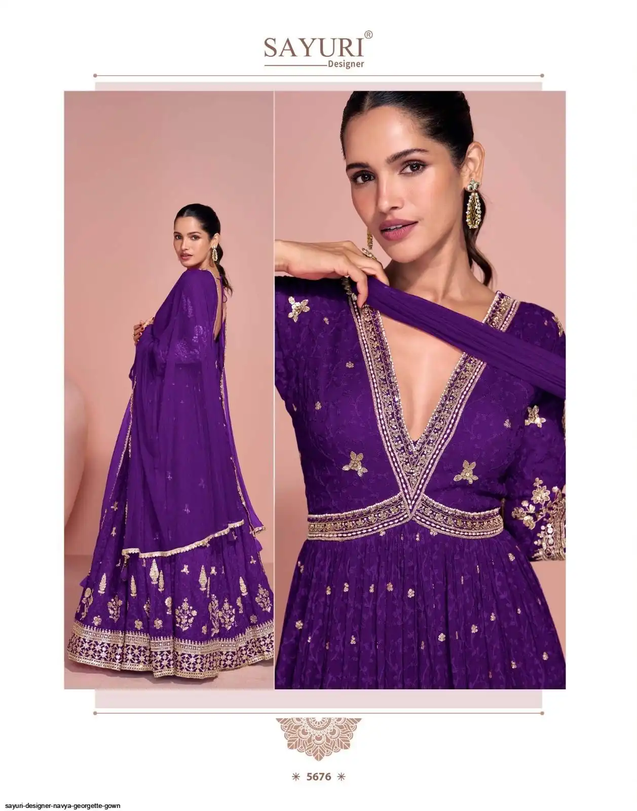 FABRIC - PREMIUM REAL GEORGETTE ( TREDY FESTIVE LOOK FRONT AND BACK EMBROIDERED GEROGETTE GOWN WITH DUPATTA )