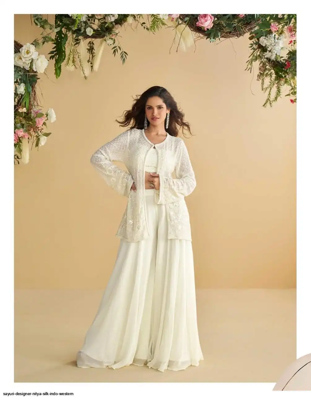 FABRIC - REAL PREMIUM SILK / REAL GEROGETTE ( HEAVY EMBROIDERED FRONT AND BACK WORK JACKET WITH EMBROIDERED BLOUSE AND PLAZZO)