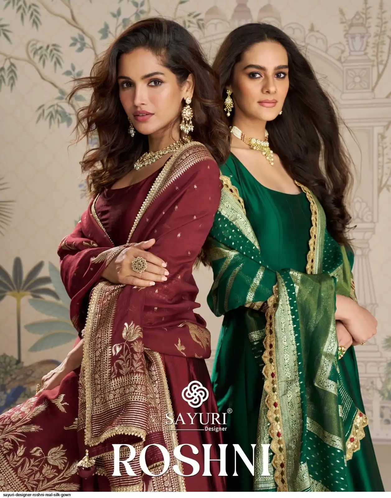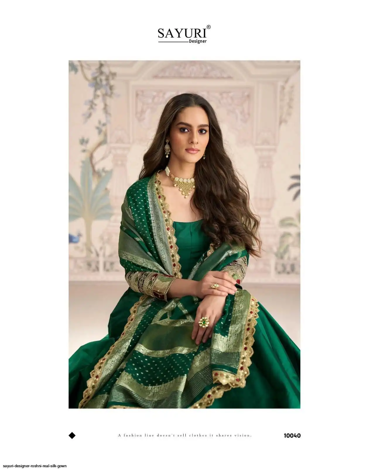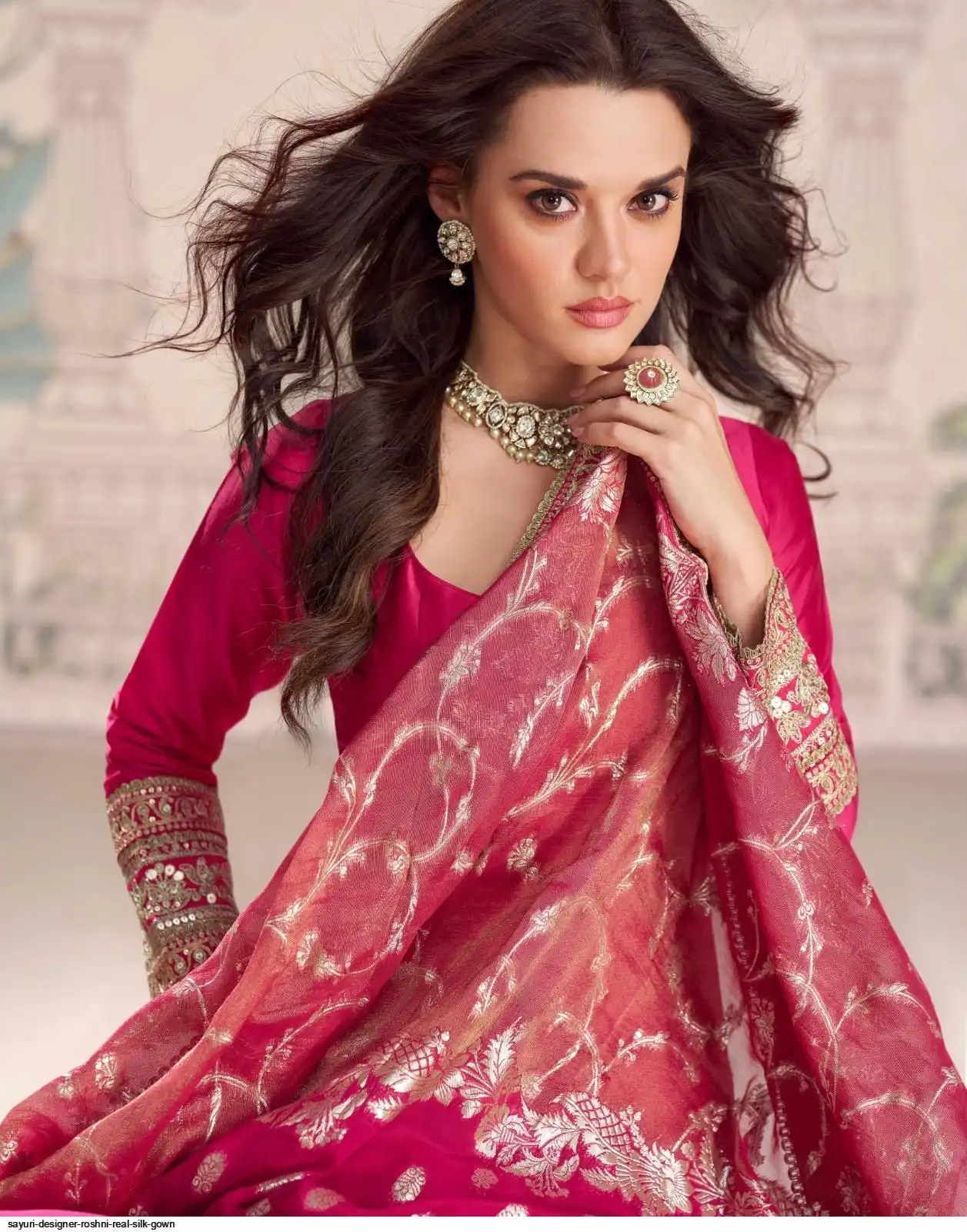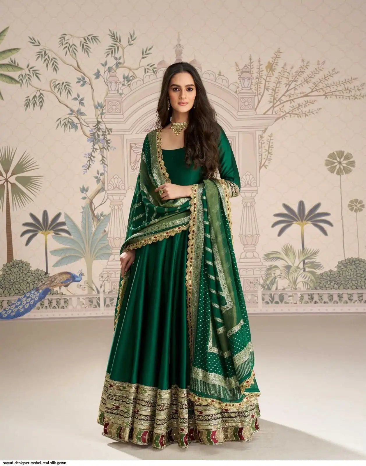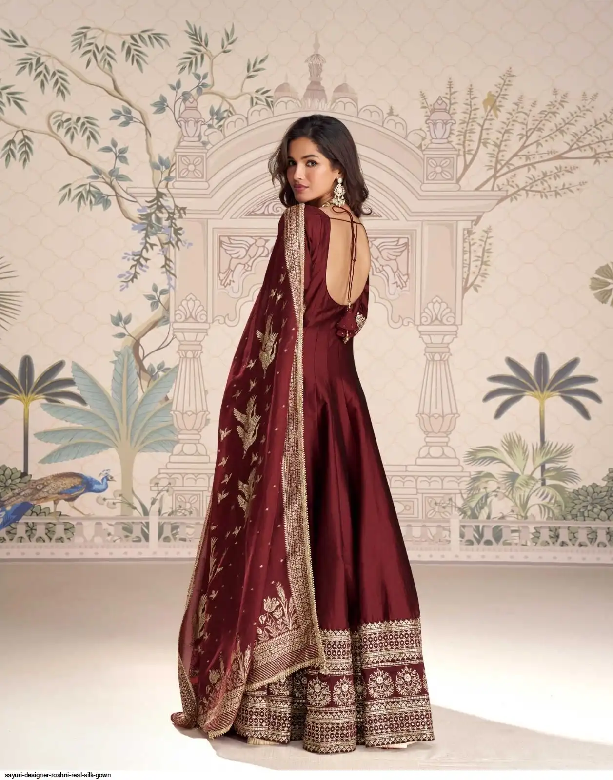FABRIC - PREMIUM REAL SILK / VISCOS JACQUARD SILK ( TREDY FESTIVE LOOK FRONT AND BACK EMBROIDERED GOWN WITH VISCOS JACQUARD SILK DUPATTA )