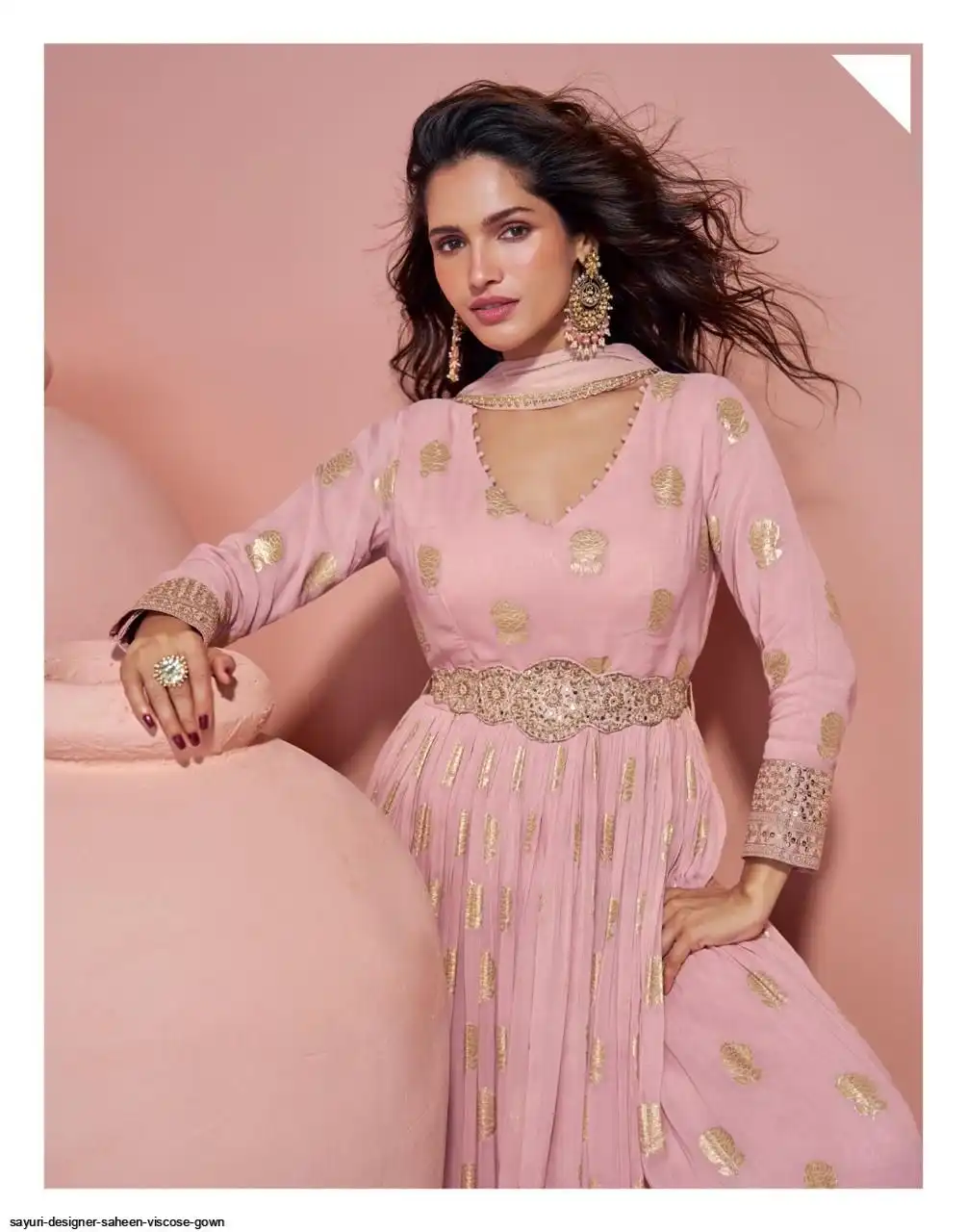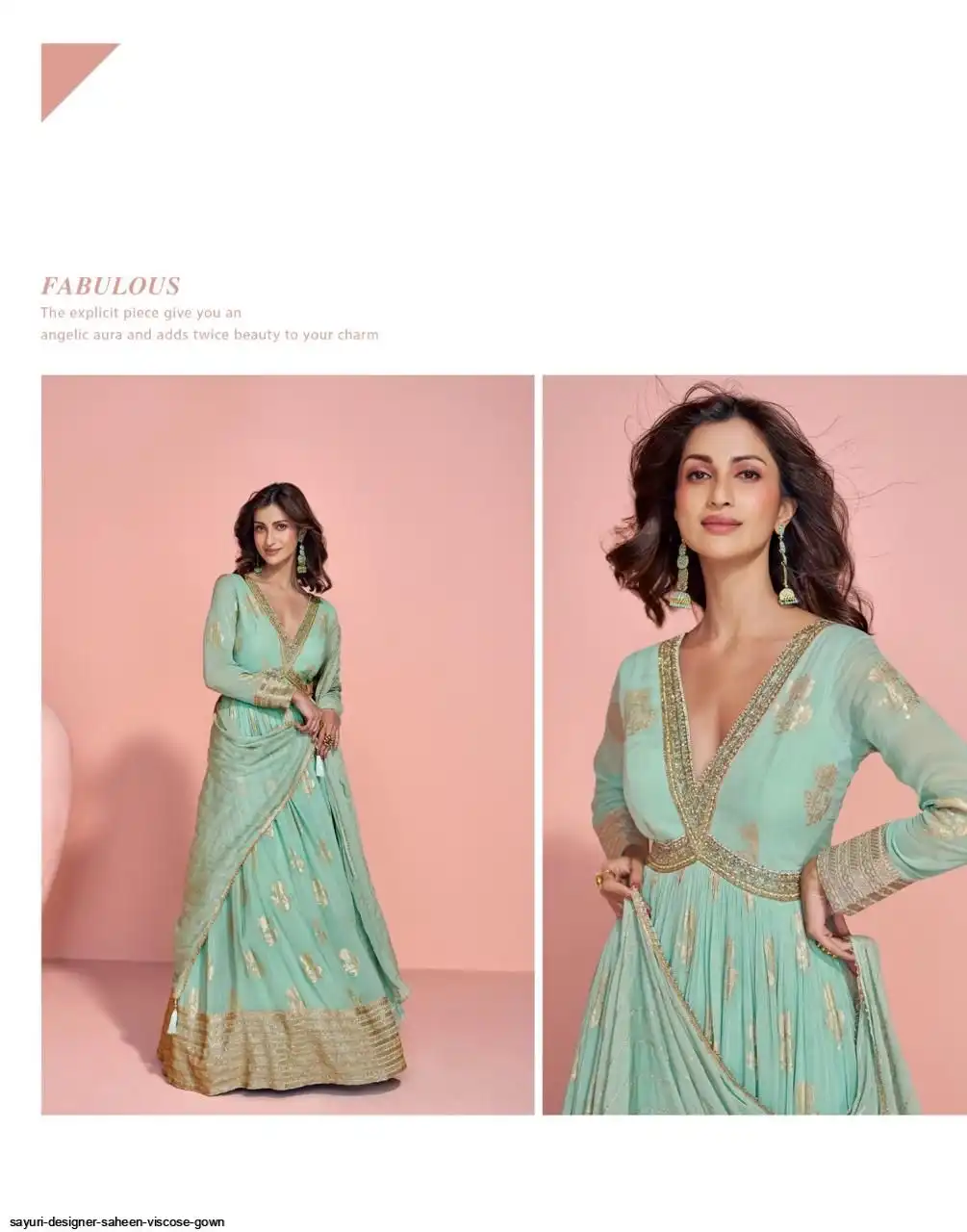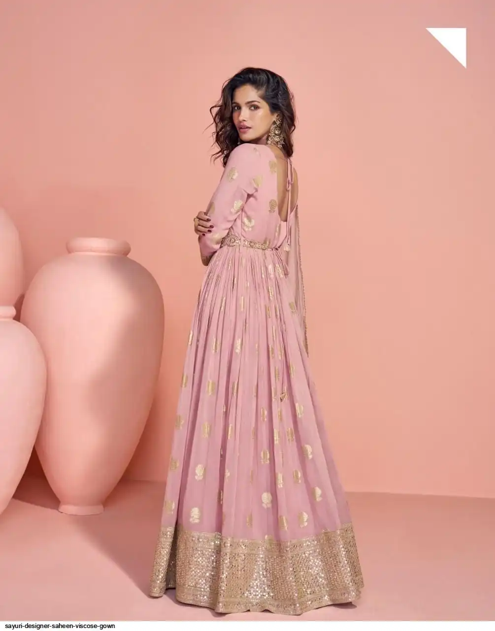 FABRIC - VISCOS JACQUARD SILK ( HEAVY FESTIVE LOOK FRONT AND BACK EMBROIDERED VISCOS JACQUARD SILK GOWN WITH EMBROIDERED DUPATTA )