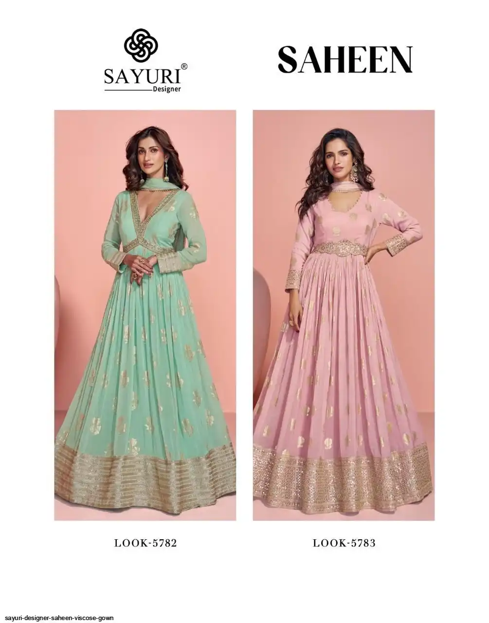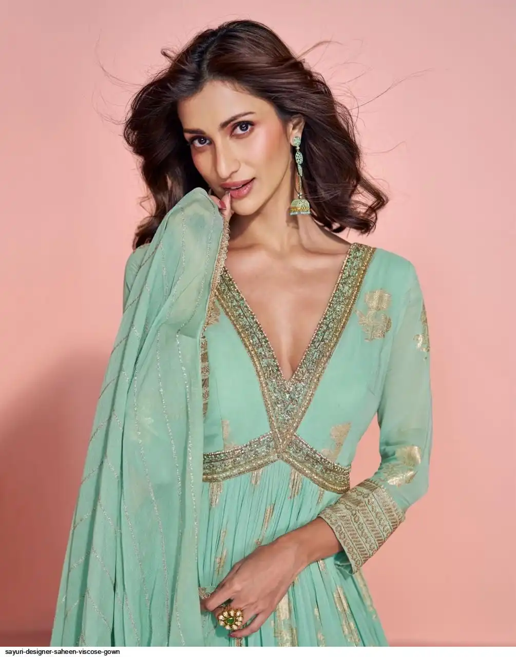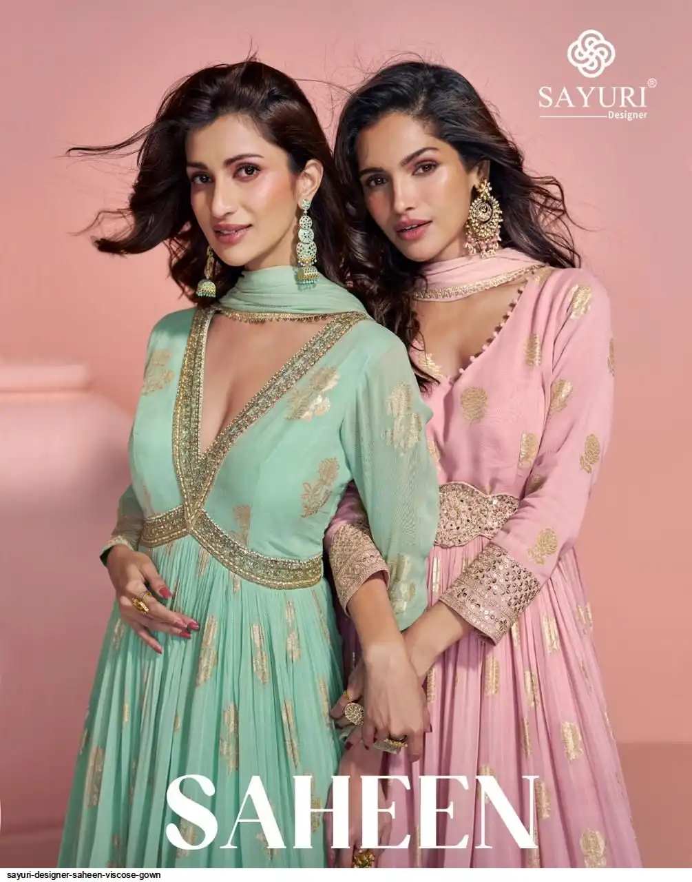FABRIC - VISCOS JACQUARD SILK ( HEAVY FESTIVE LOOK FRONT AND BACK EMBROIDERED VISCOS JACQUARD SILK GOWN WITH EMBROIDERED DUPATTA )