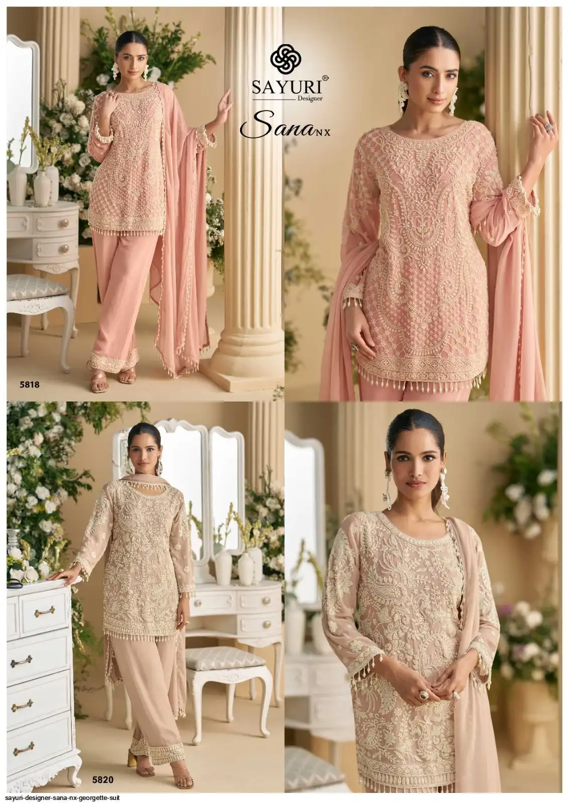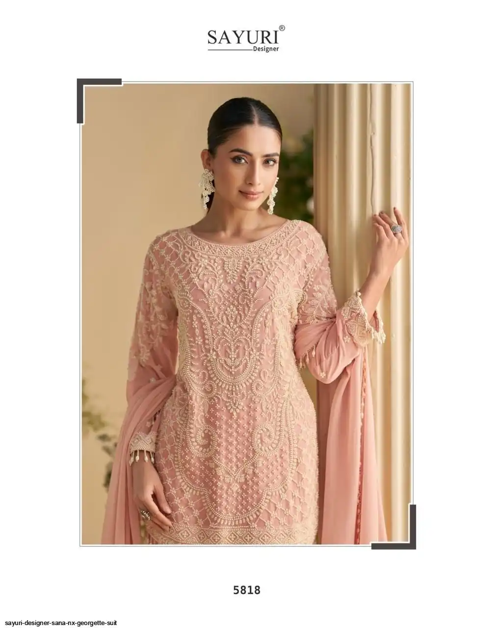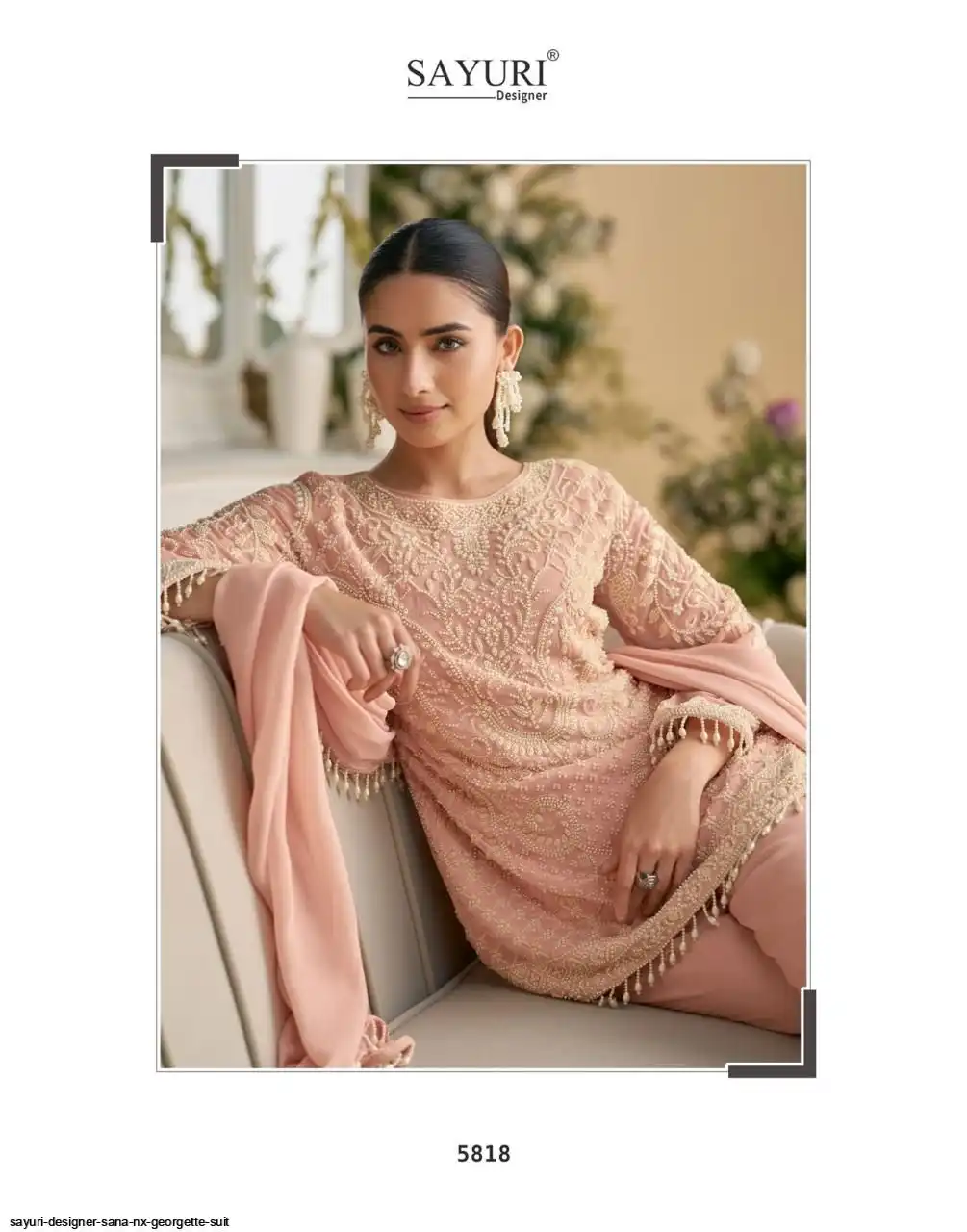 FABRIC - REAL PREMIUM GEORGETTE/PREMIUM NET( HEAVY EMBROIDERED BEADS WORK TOP WITH PLAZZO PANT AND DUPATTA )