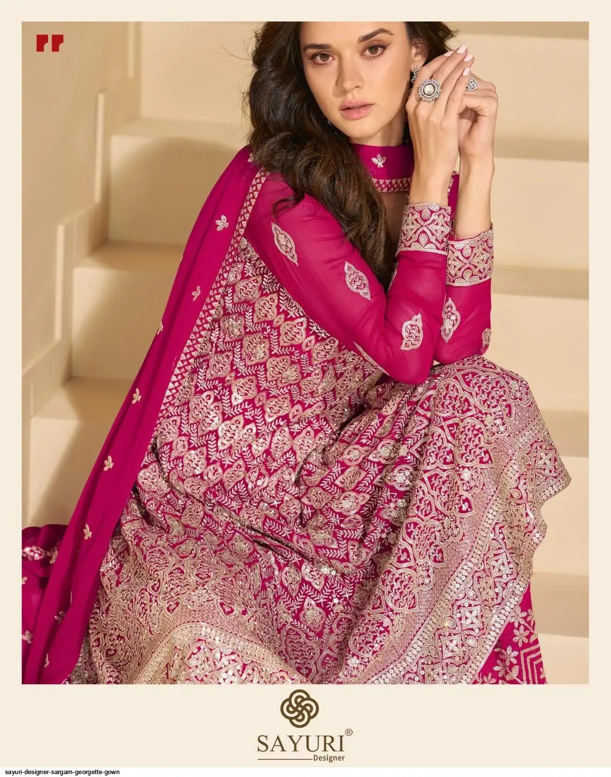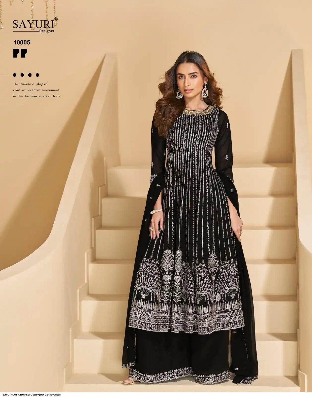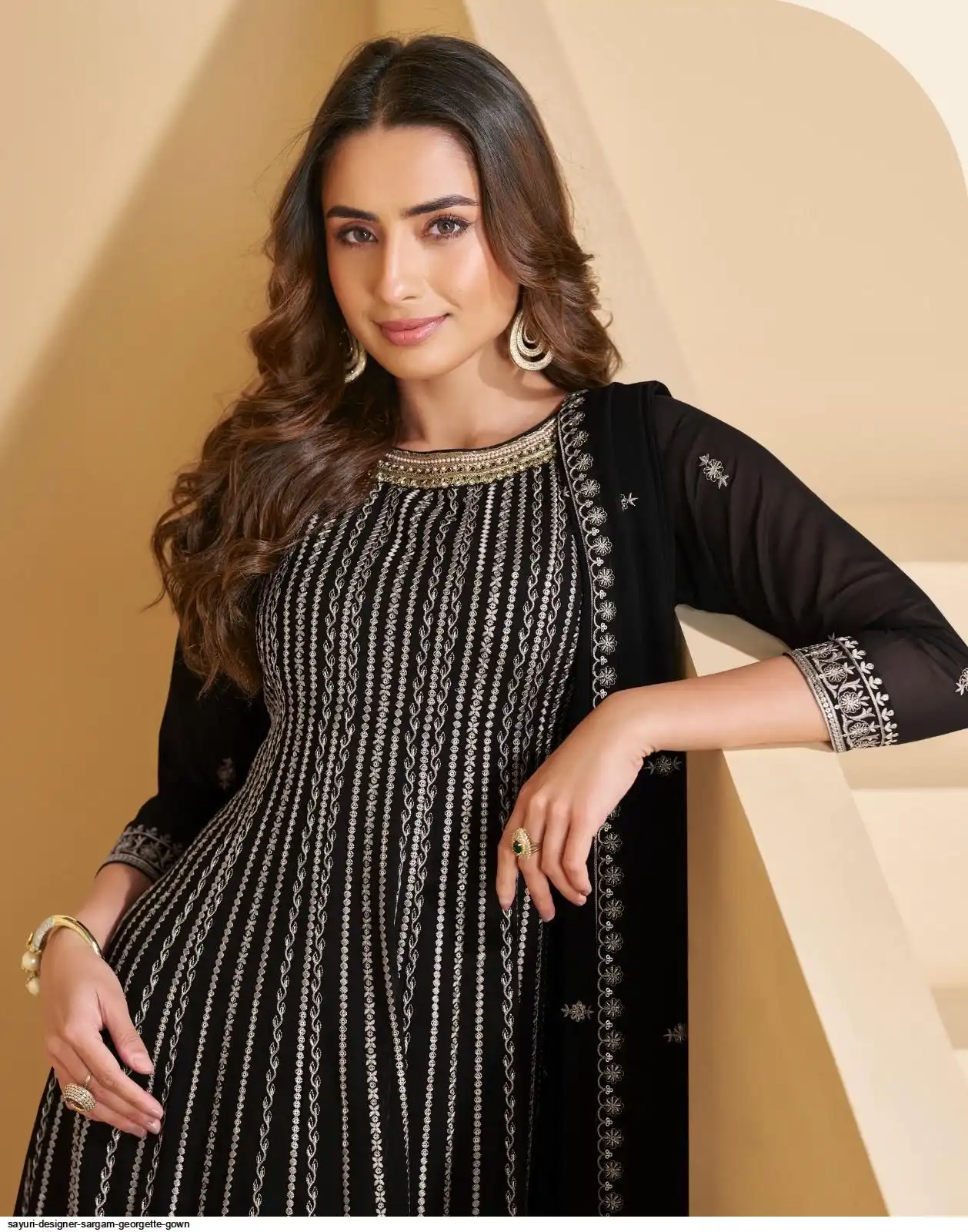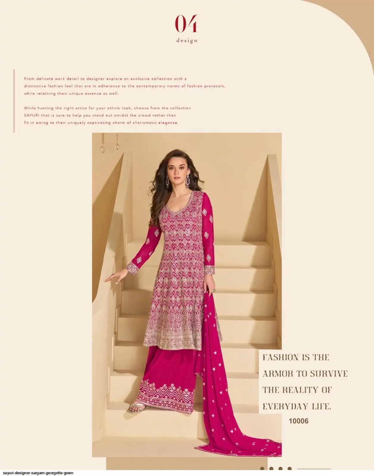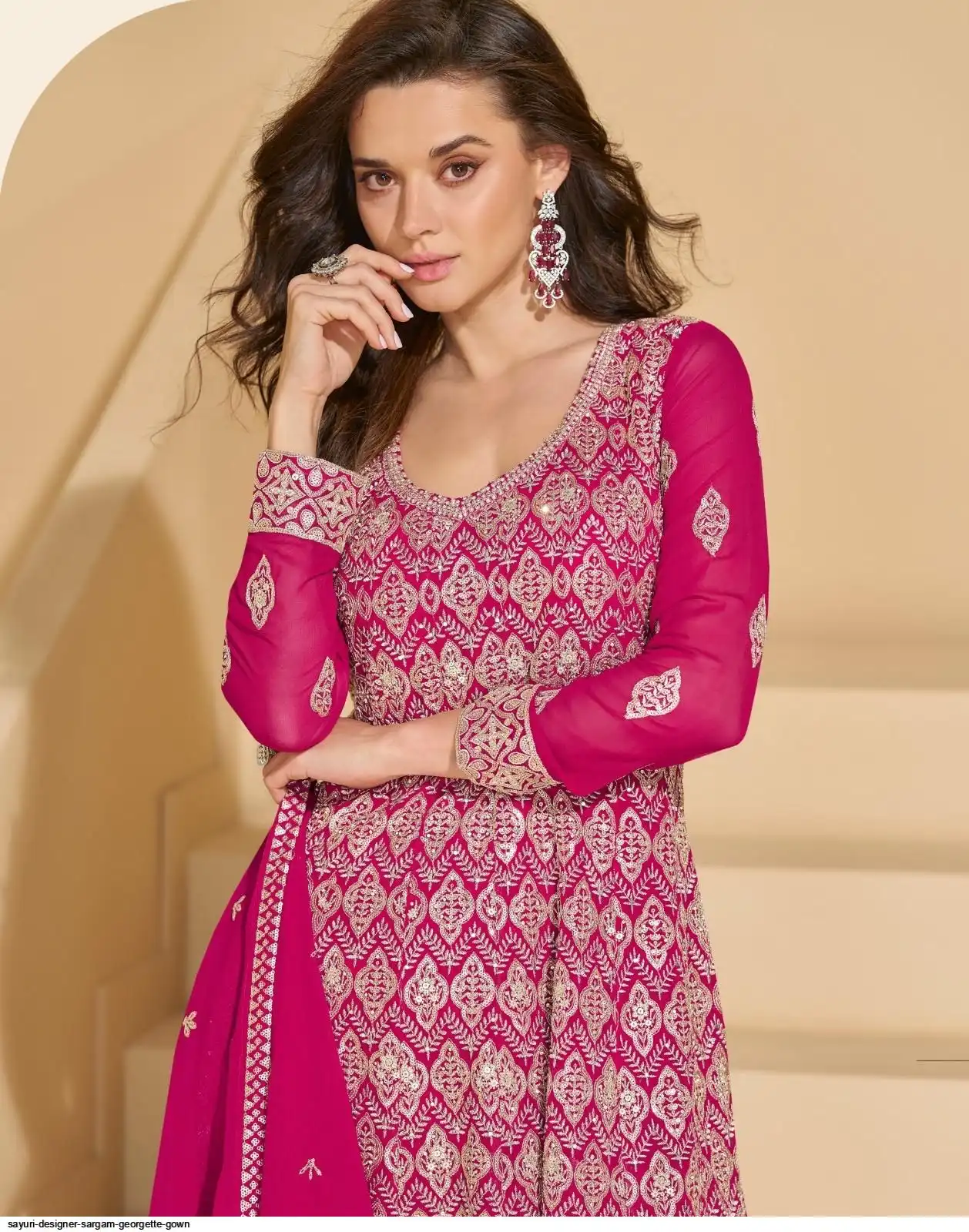 FABRIC - REAL PREMIUM GEROGETTE ( FULL HEAVY LOOK EMBROIDERED TOP WITH EMBROIDERED PLAZZO AND DUPATTA )