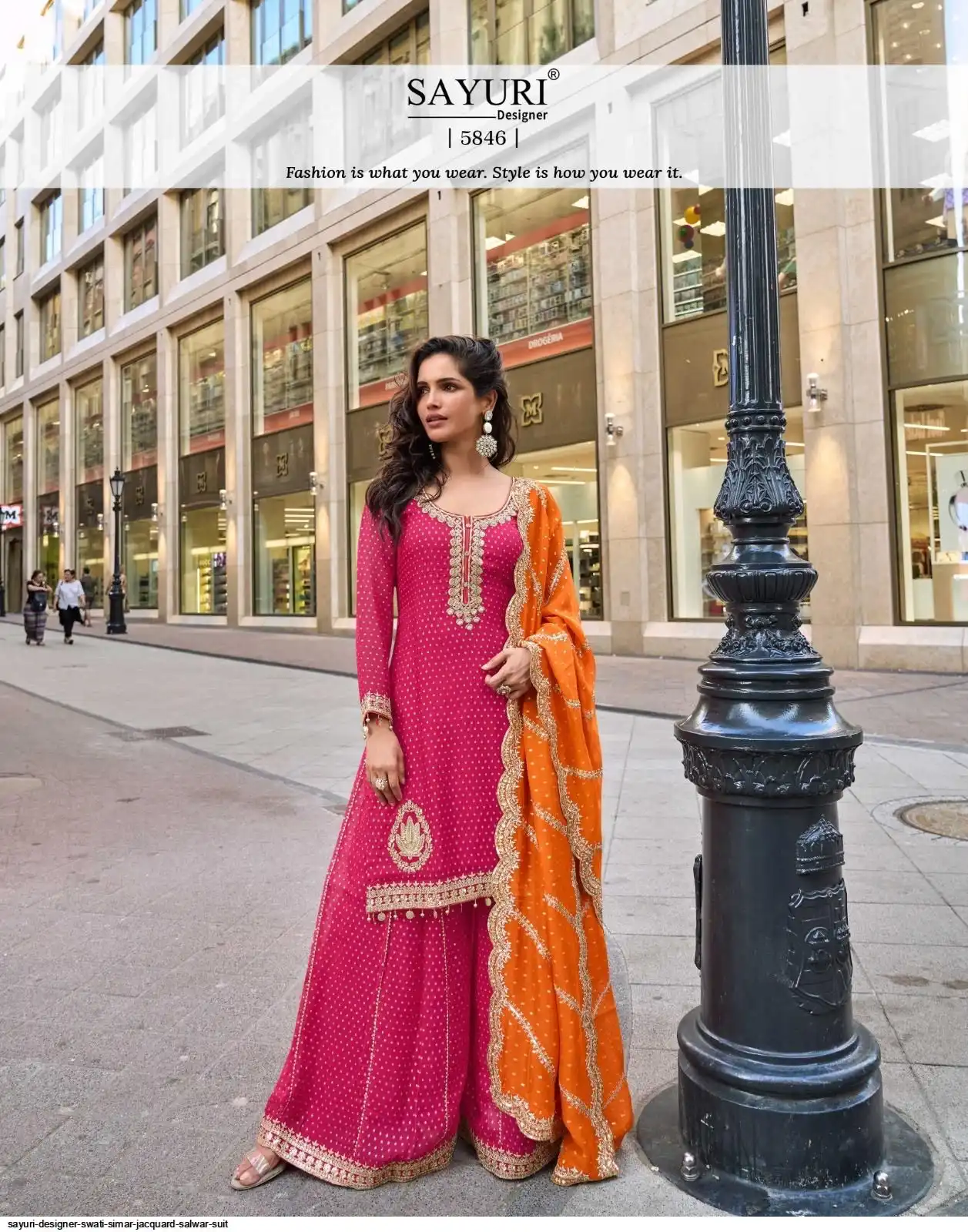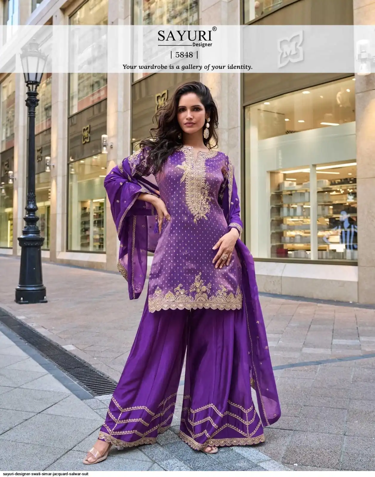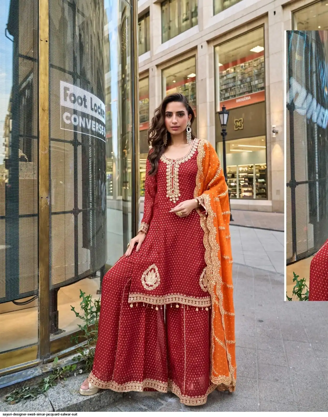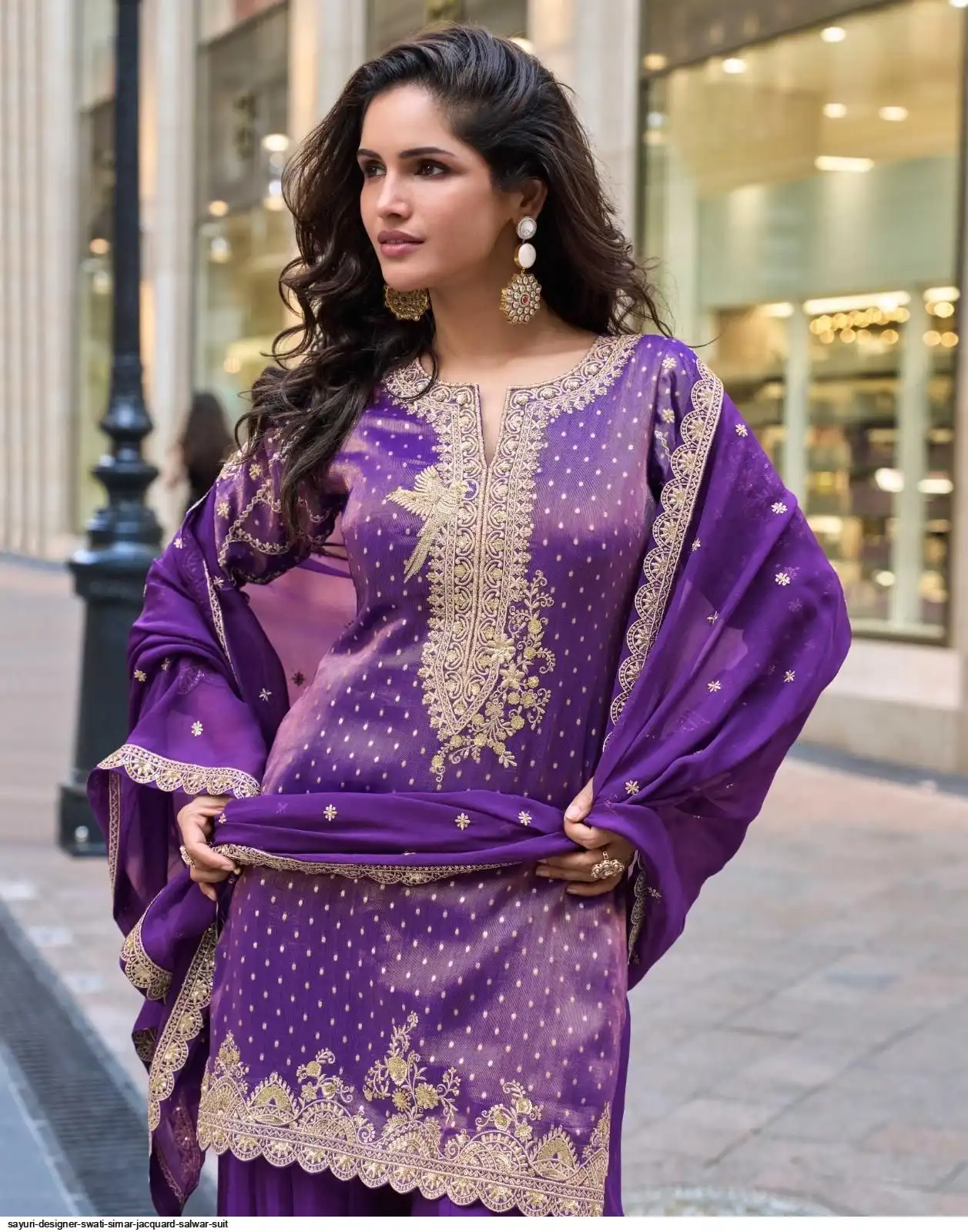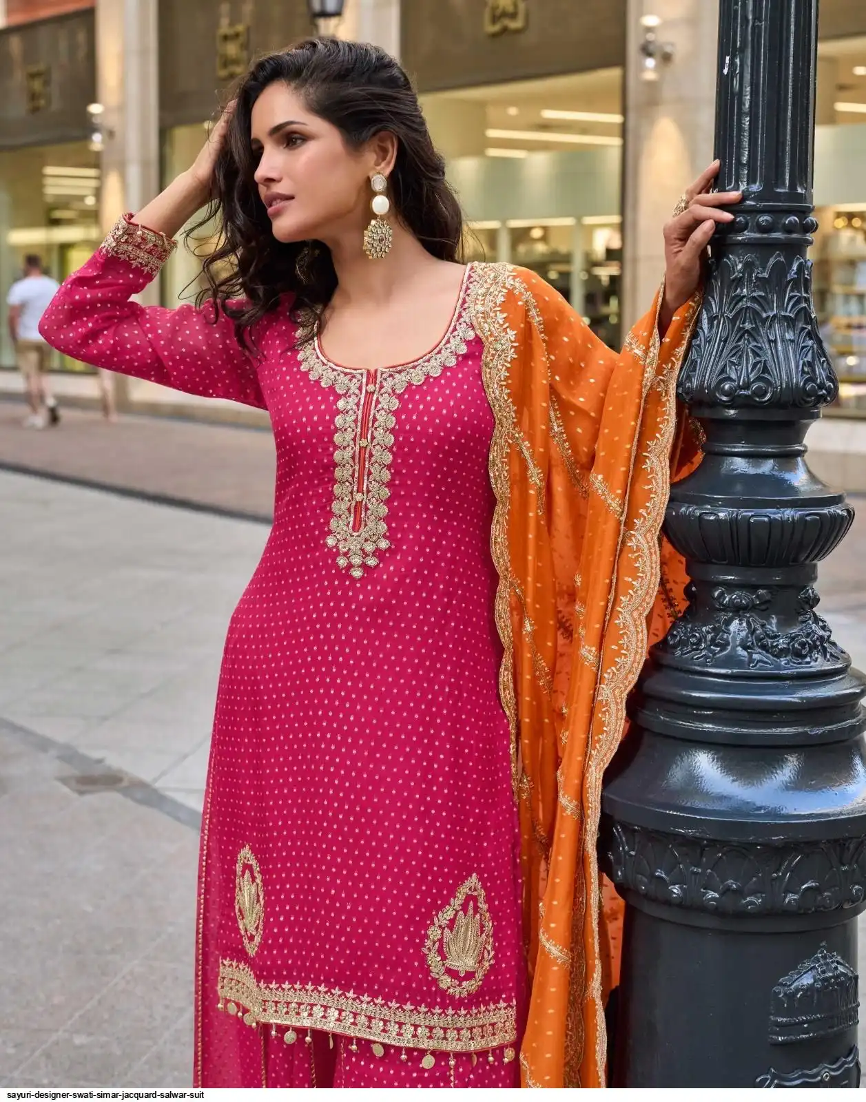 FABRIC - PURE VISCOS SIMAR JACQUARD SILK ( FULL HEAVY LOOK VISCOS SIMAR EMBROIDERED TOP WITH EMBROIDERED PLAZZO \ SHARARA AND DUPATTA )