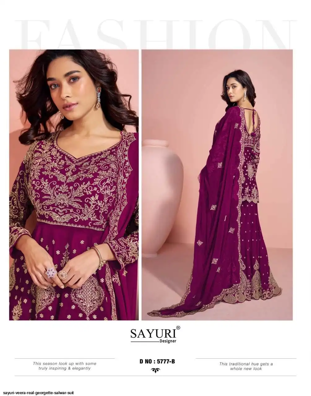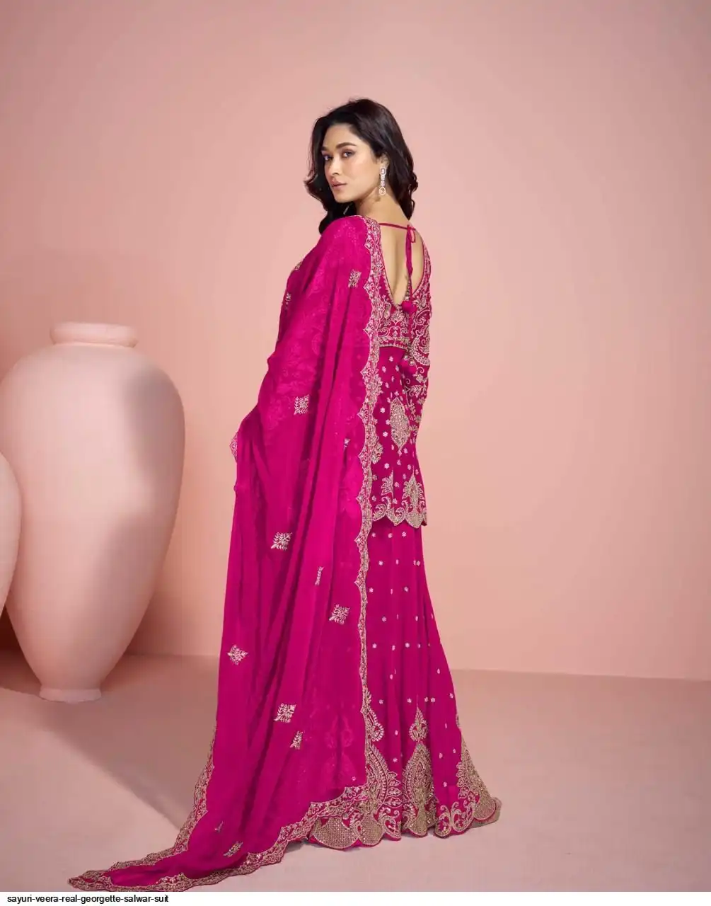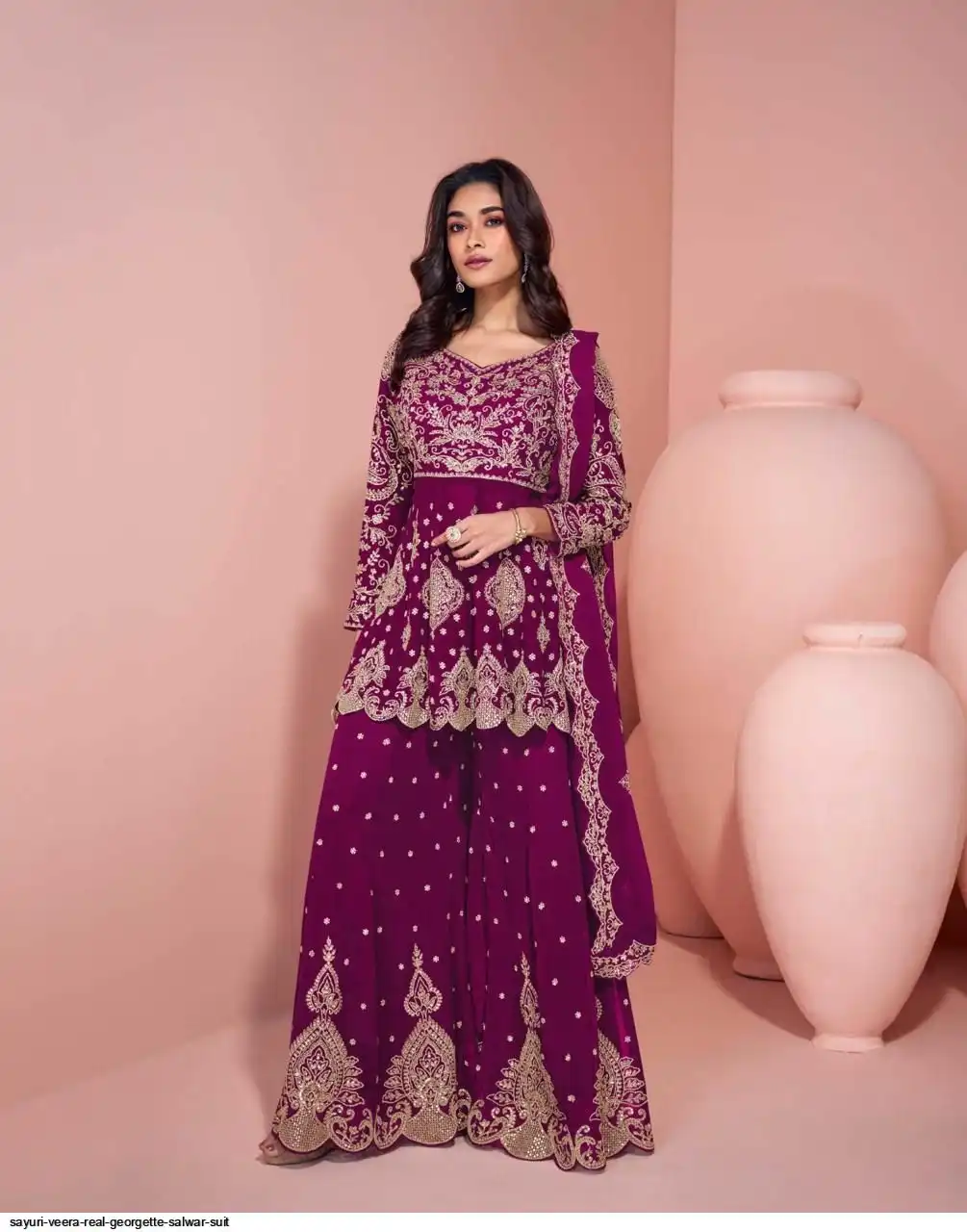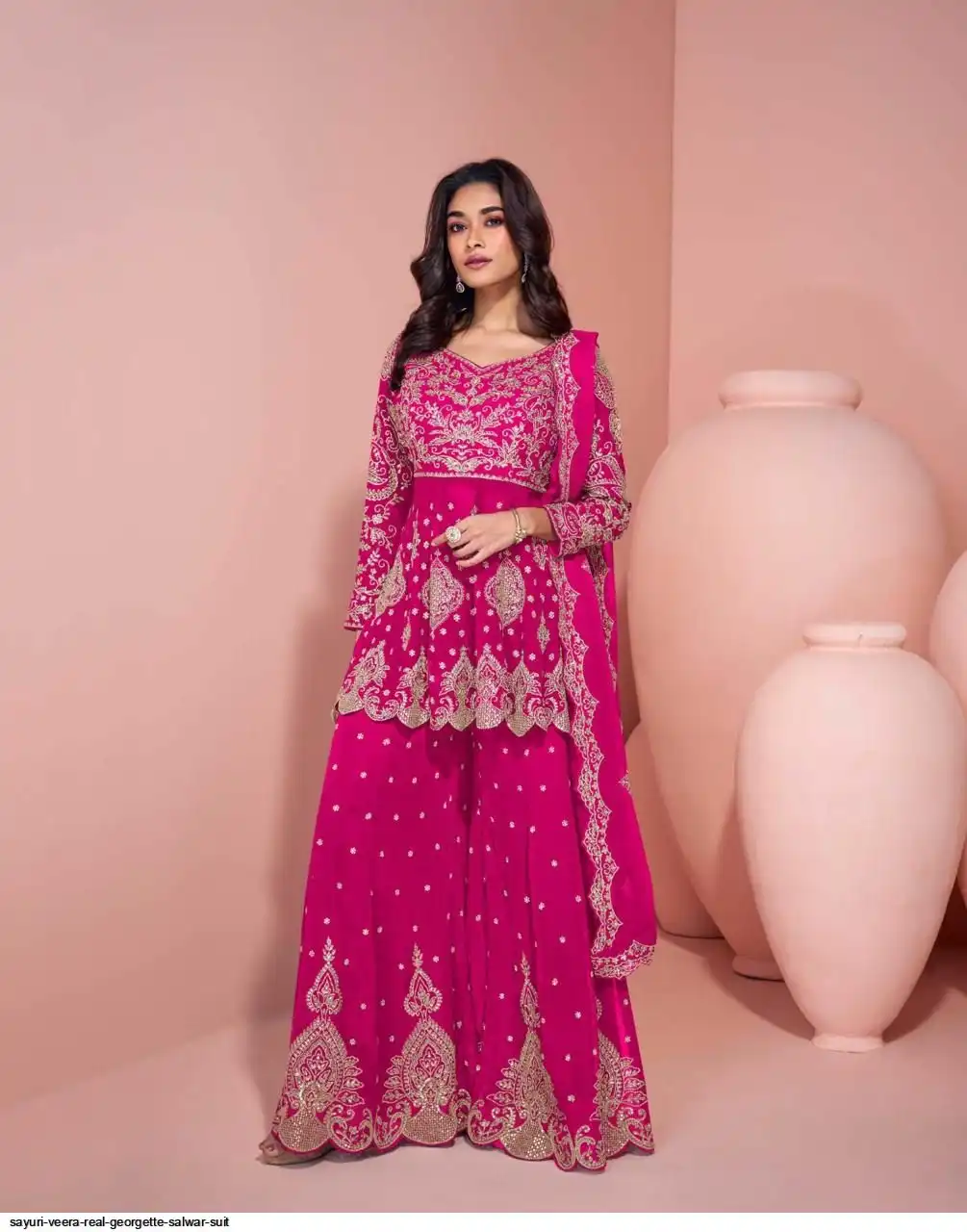 FABRIC - PREMIUM REAL GEROGETTE ( FULL HEAVY LOOK EMBROIDERED FRONT AND BACK WORK TOP , PLAZZO AND DUPATTA )