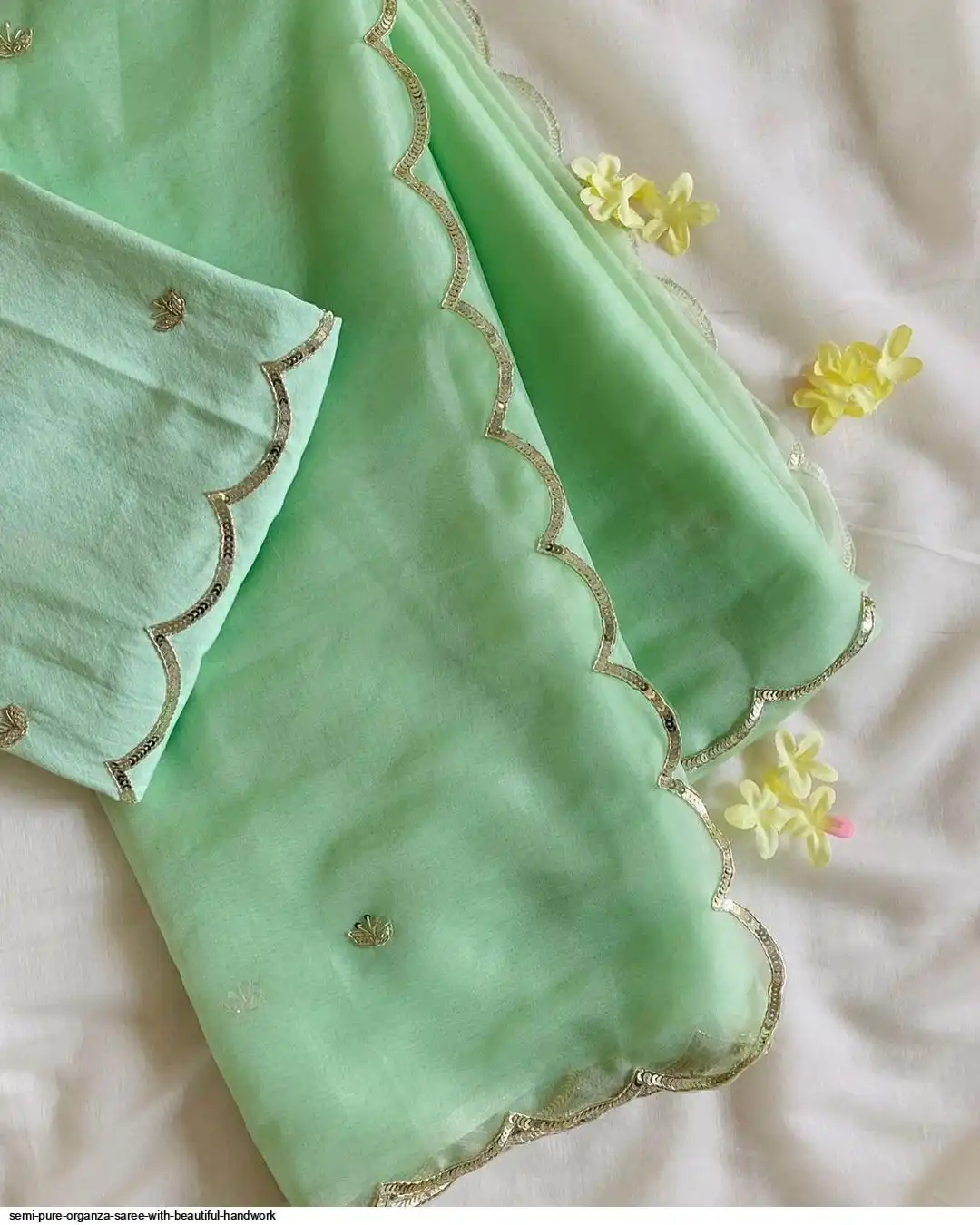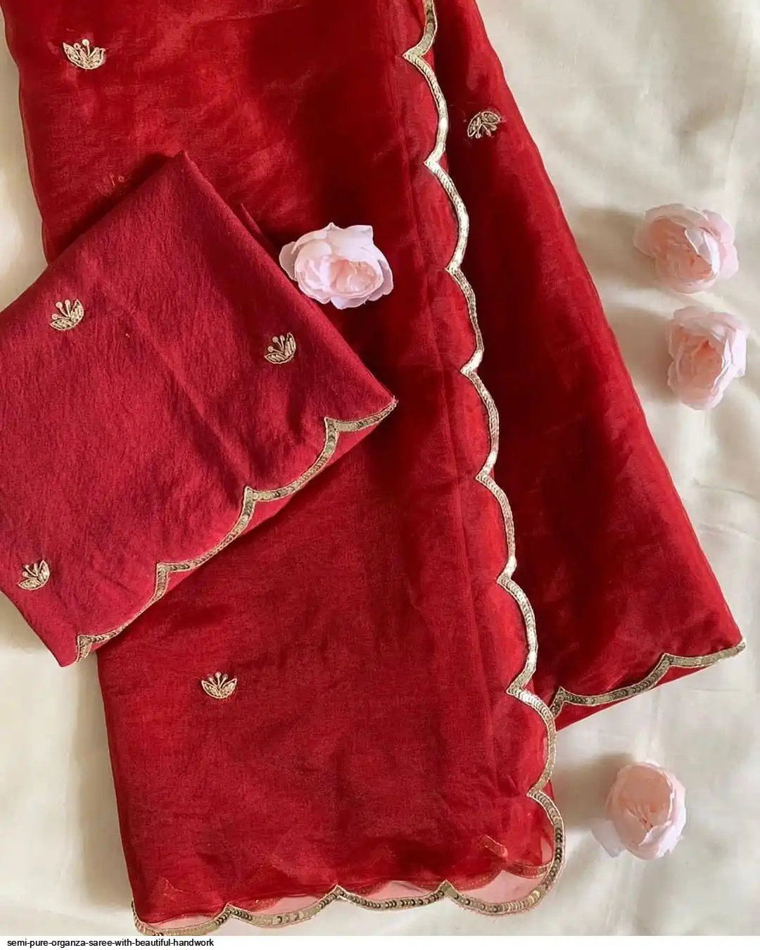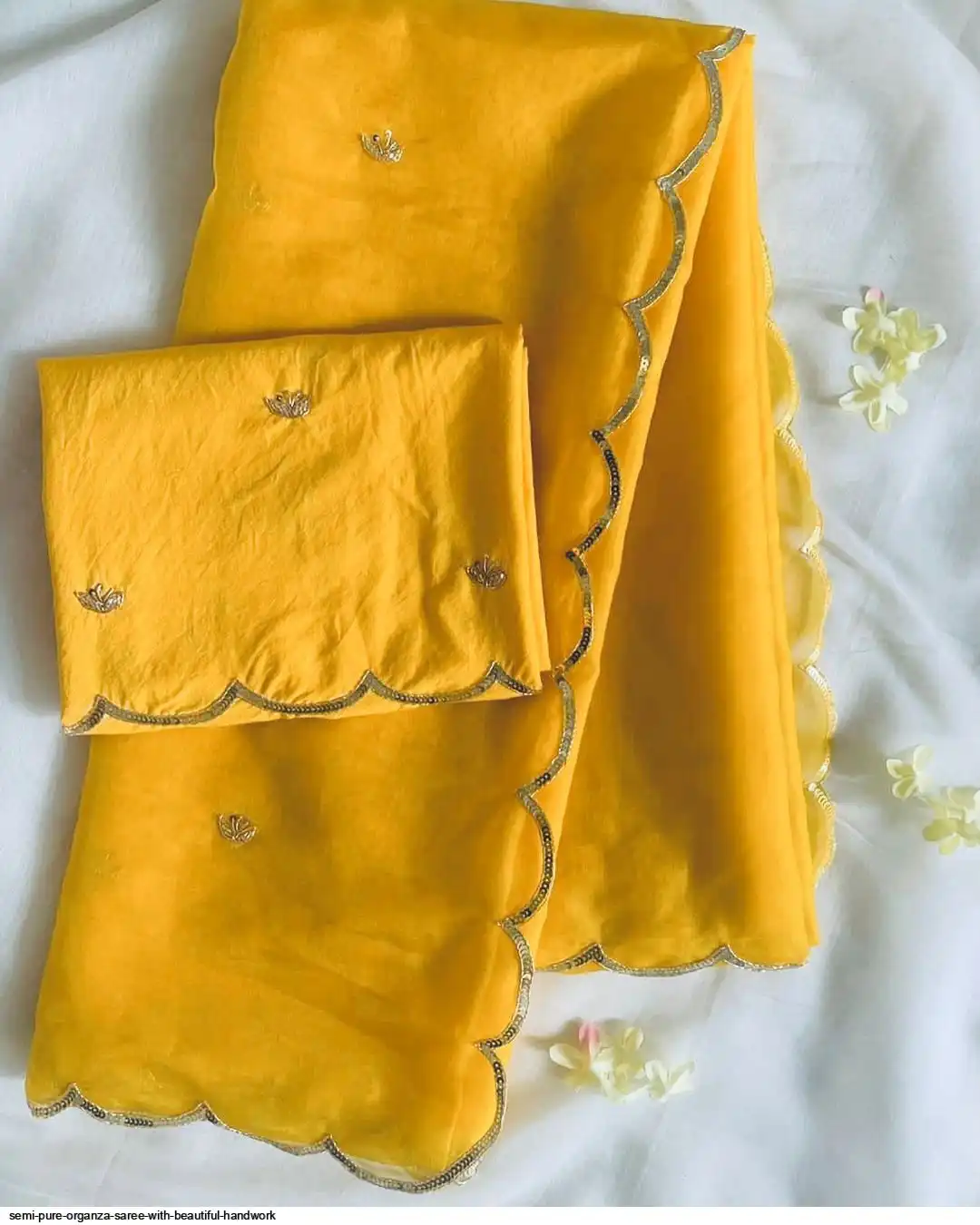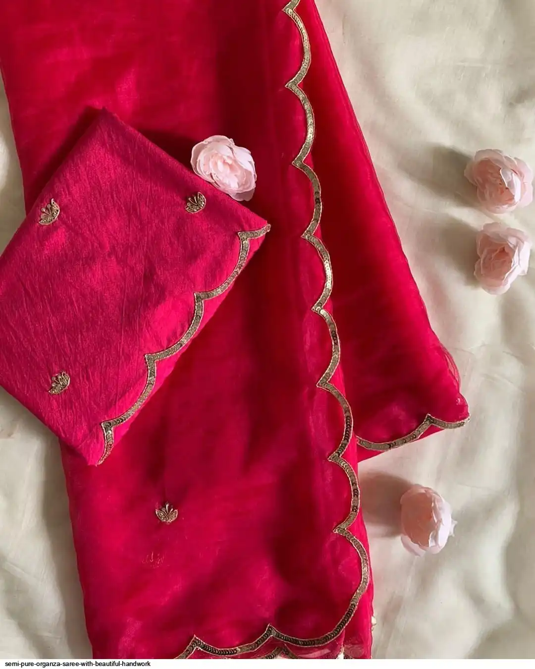 Semi pure organza saree with beautiful handwork all over saree and silk blouse with handwork