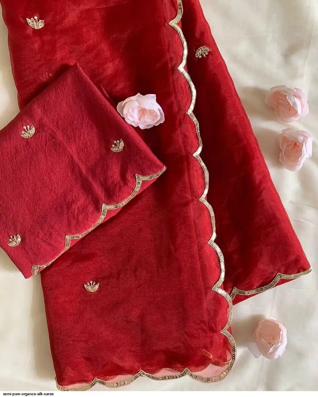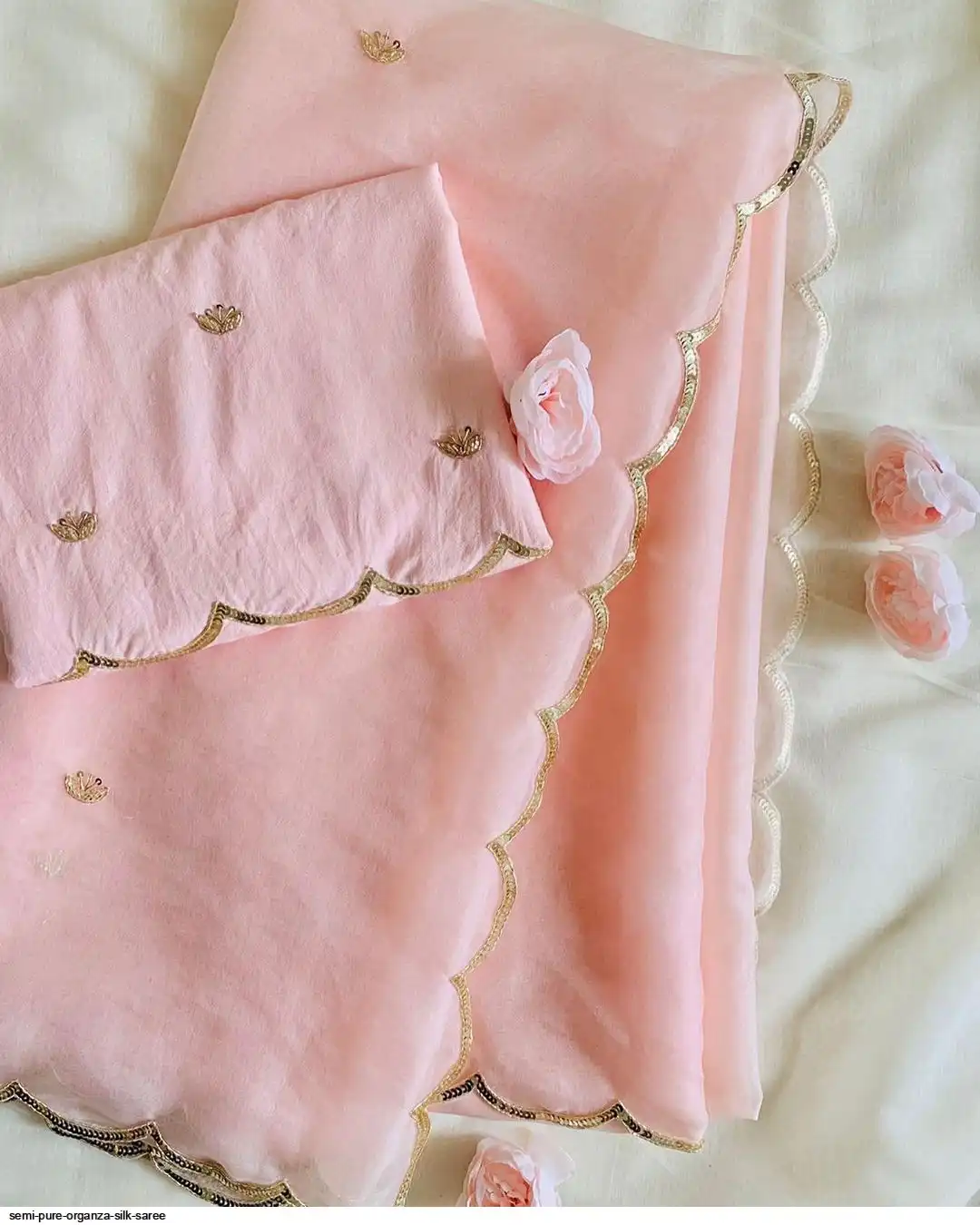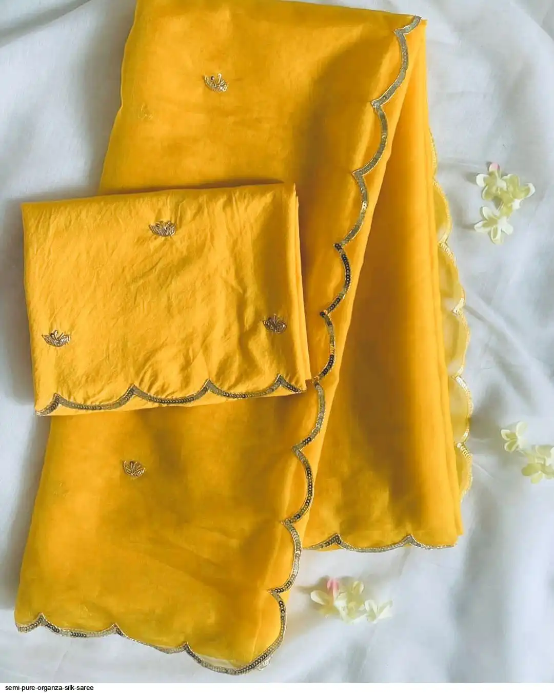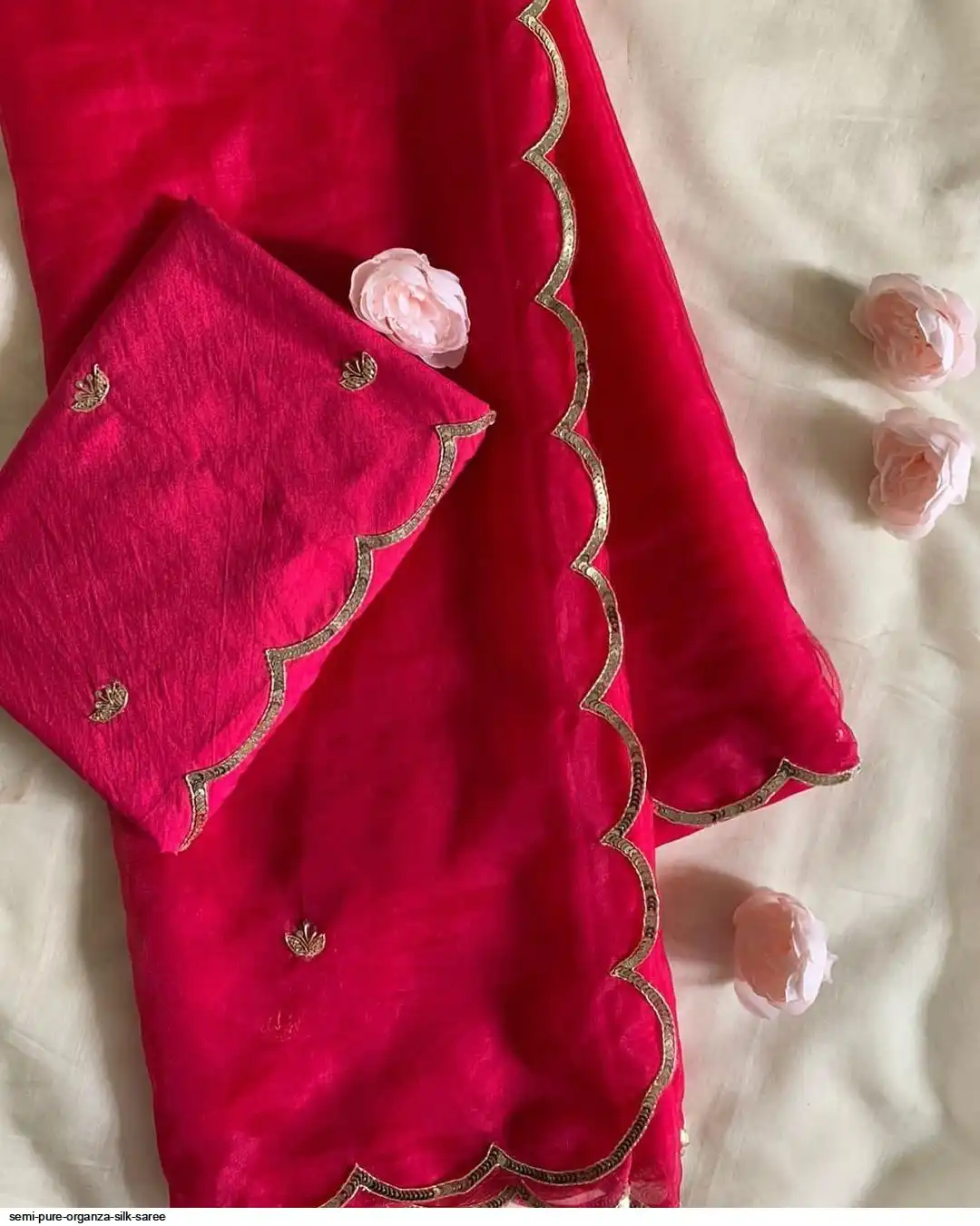 Semi pure organza saree with beautiful handwork all over saree and silk blouse with handwork