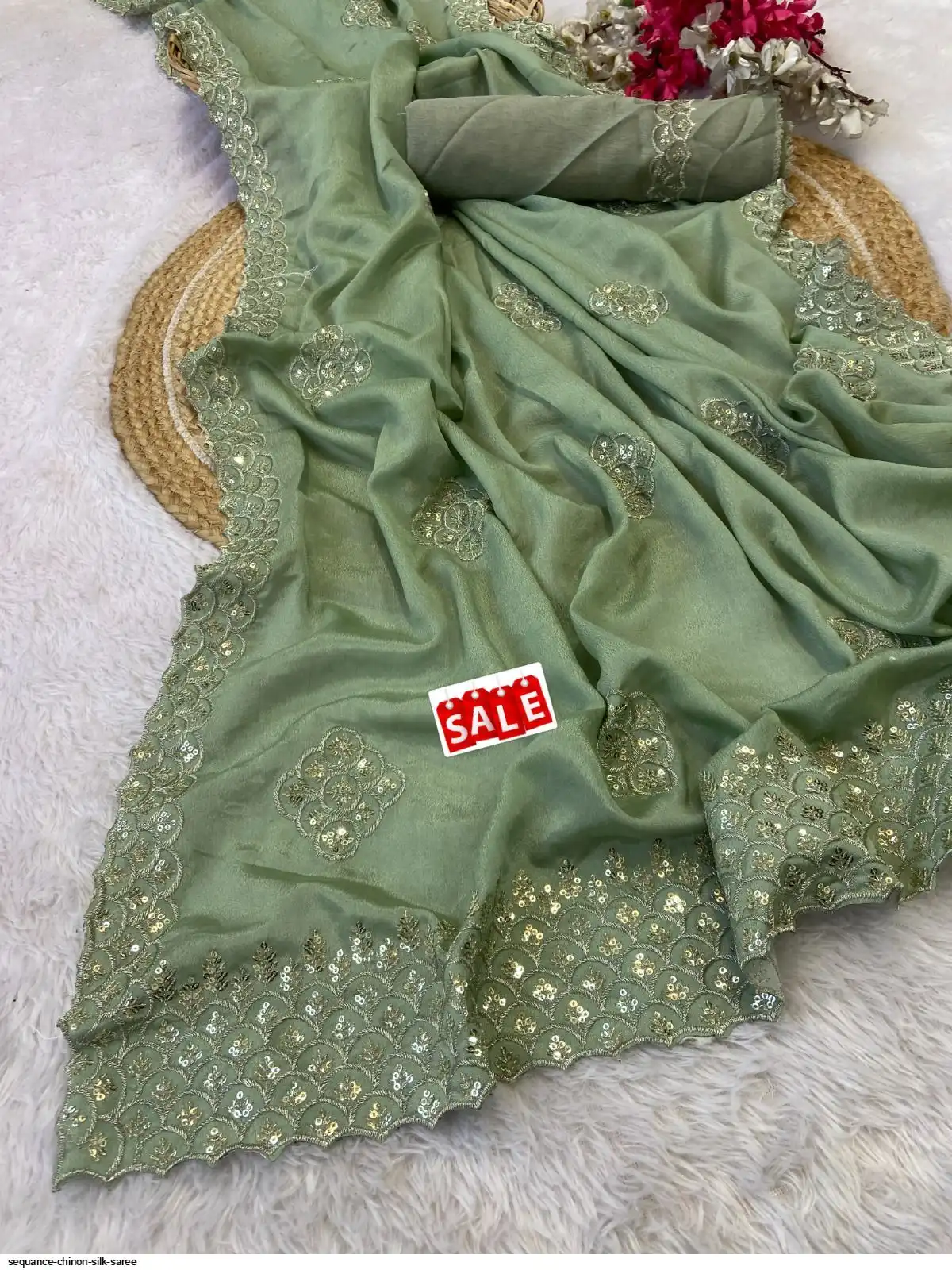 SAREE FABRIC CHINON SILK STAR GEORGETTE AND GEORGETTE BANDHANI PRINT ALL DESIGN HEAVY MULTI AND SEQUANCE C PALLU WORK DONE