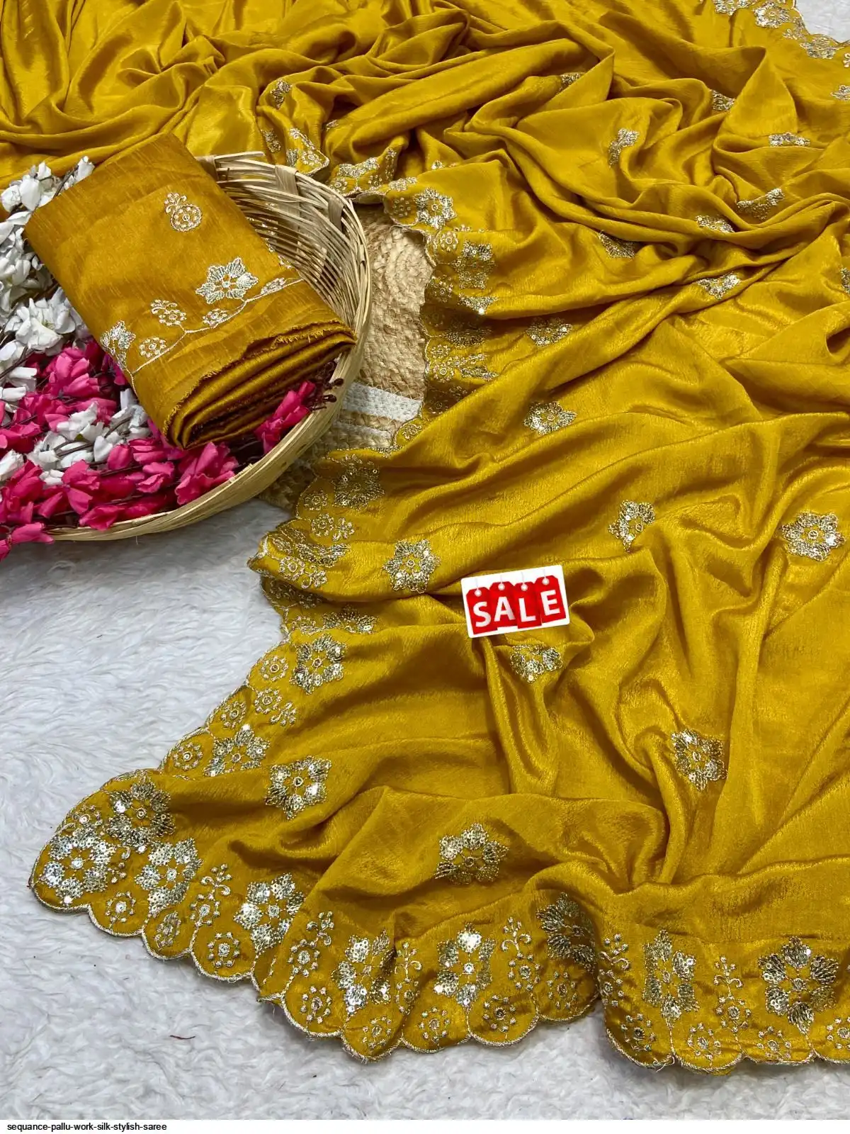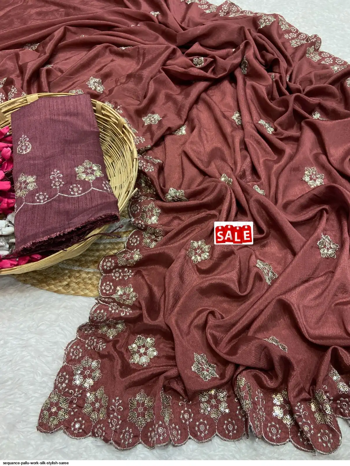 SAREE FABRIC CHINON SILK STAR GEORGETTE AND GEORGETTE BANDHANI PRINT ALL DESIGN HEAVY MULTI AND SEQUANCE C PALLU WORK DONE