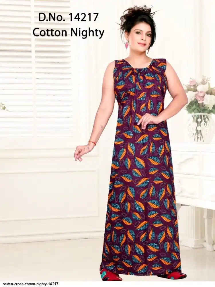 COTTON PRINTED NIGHTY SINGLE PCS PACKING WITH POSTER WITH INTERLOCK,SIZE-FREE SIZE,LENGHT-54 TO 56 INCH