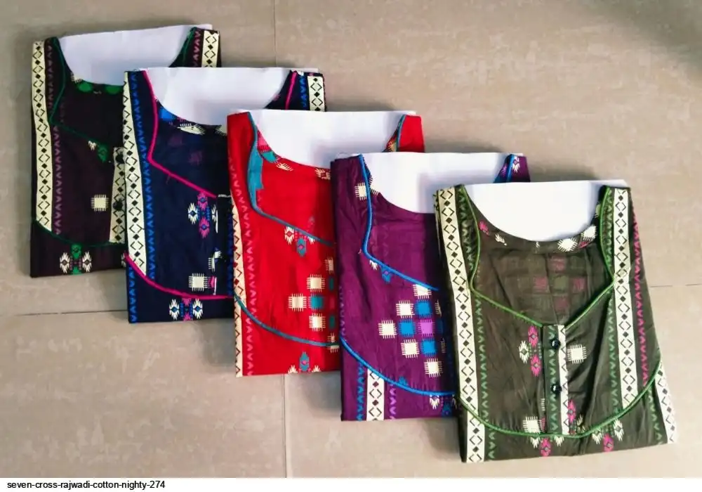 RAJWADI COTTON PAIPING NIGHTY SINGLE PCS PACKING WITH POSTER WITH INTERLOCK,SIZE-FREE SIZE,LENGHT-54 TO 56 INCH