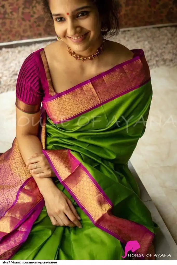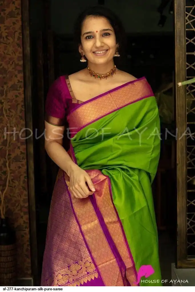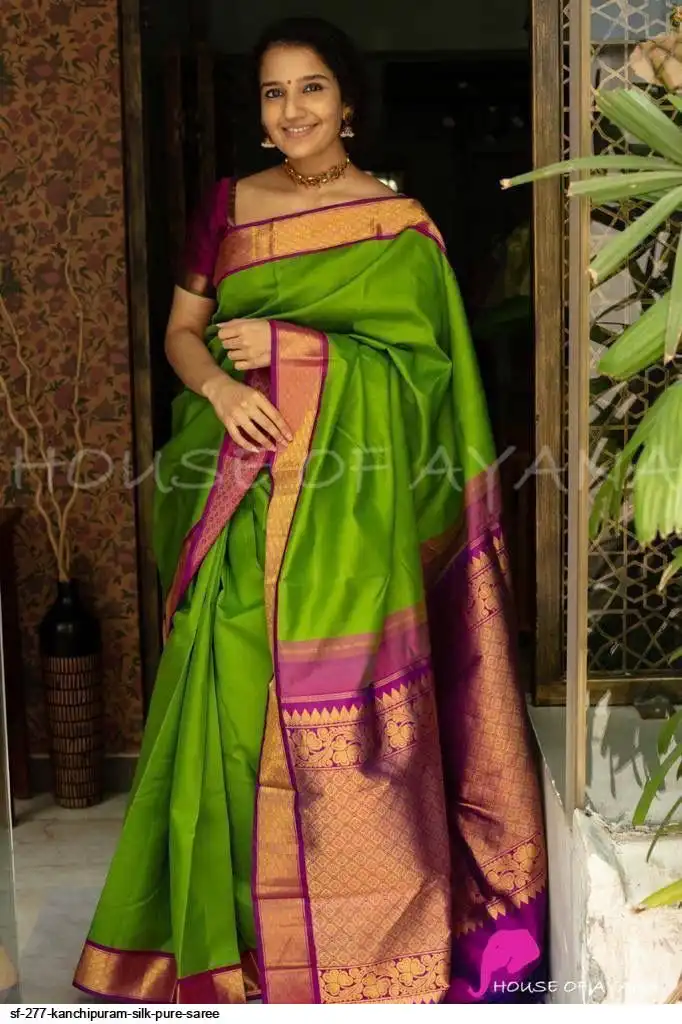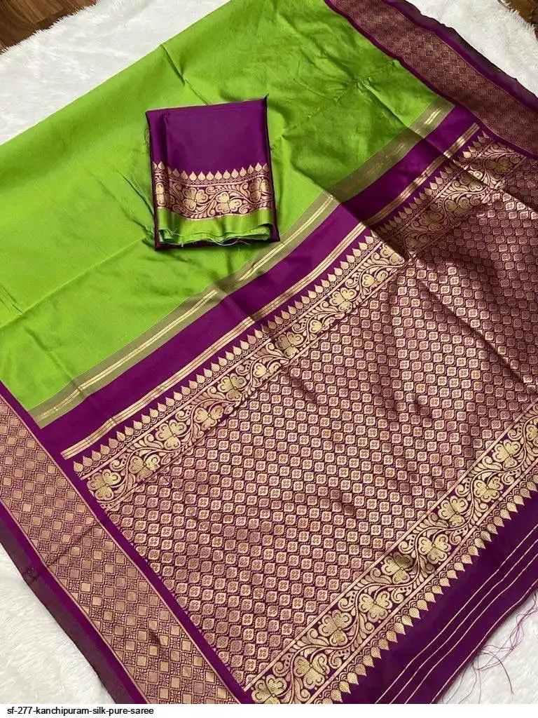 Traditional Kanchipuram PEROT Color saree With lovely weaving WINE border and Pallu WEAVING at its finest and most classic!