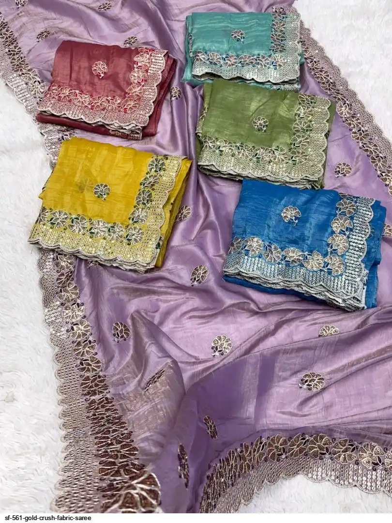 *Fabric : Gold Crush Fabric With Coding Sequence Embroidery Work (C-Pallu) Border And Butta In All Over Saree with work Broder nd aarco