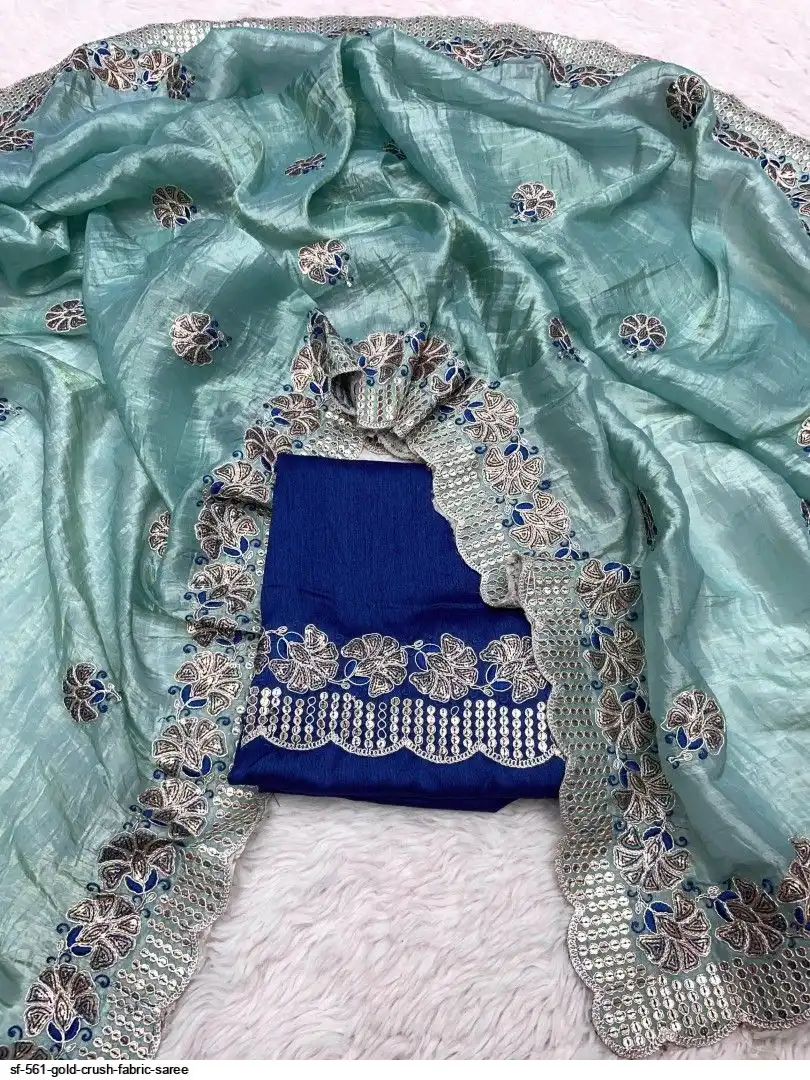 *Fabric : Gold Crush Fabric With Coding Sequence Embroidery Work (C-Pallu) Border And Butta In All Over Saree with work Broder nd aarco