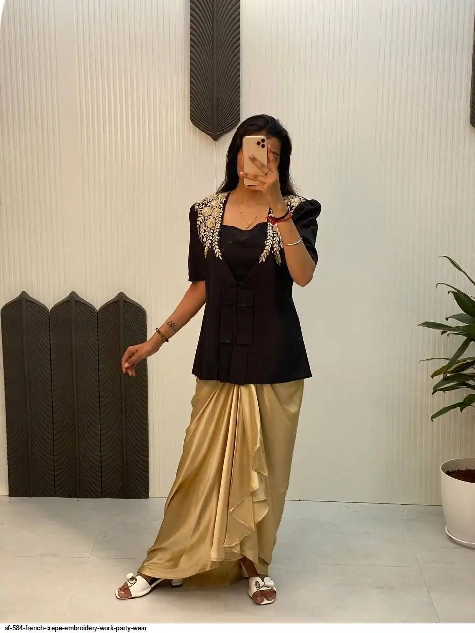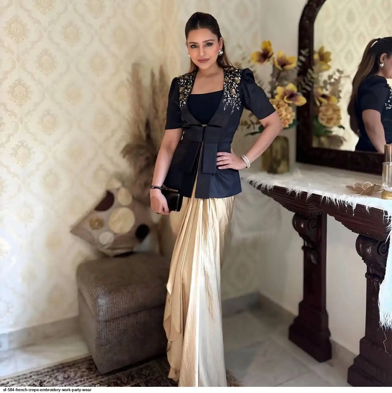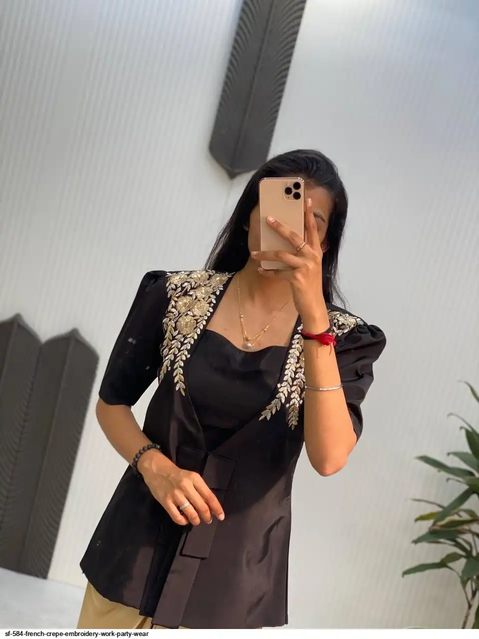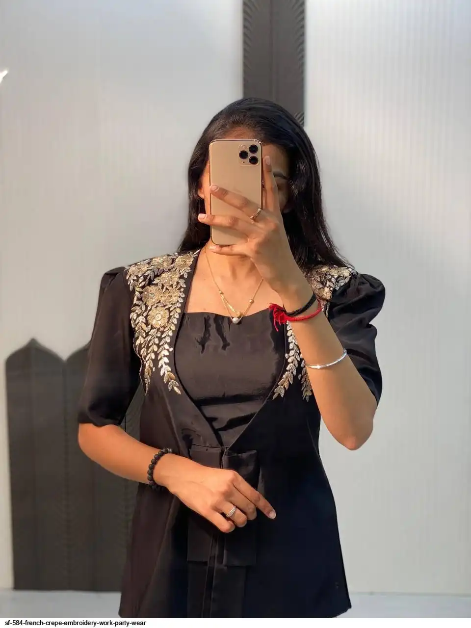 # BLAZER : FRENCH CRAPE WITH SEQUENCE EMBROIDERY (FREE SIZE)