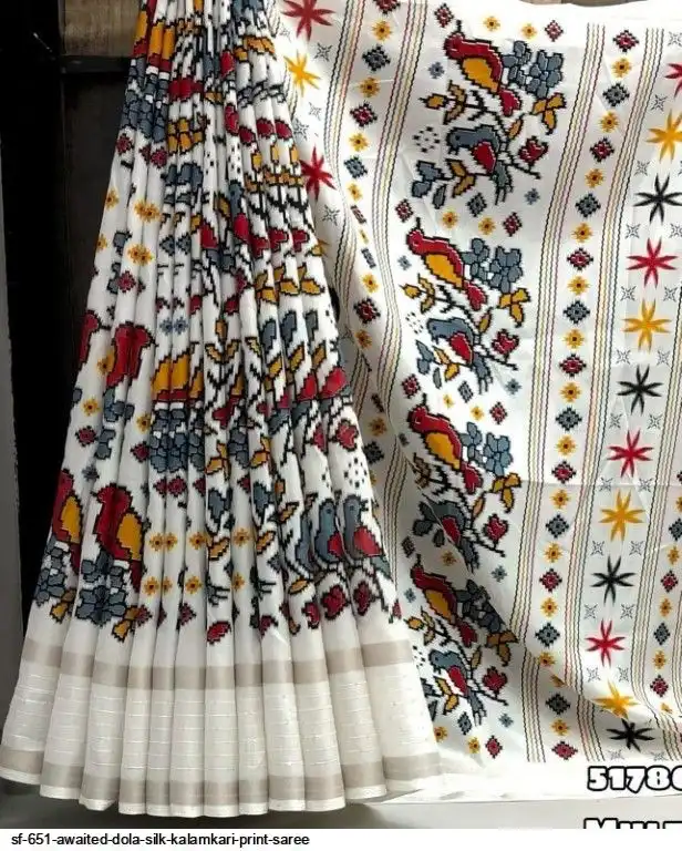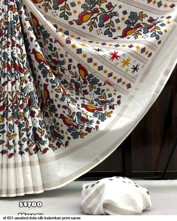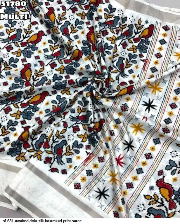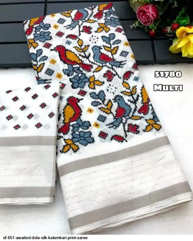 [ heavy zari weaving and sequence work border and beautiful HD kalamkari style print ]