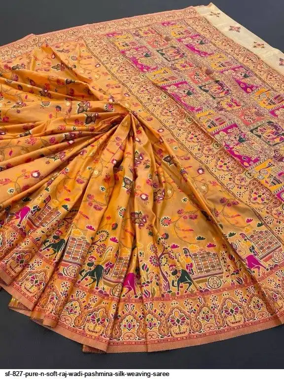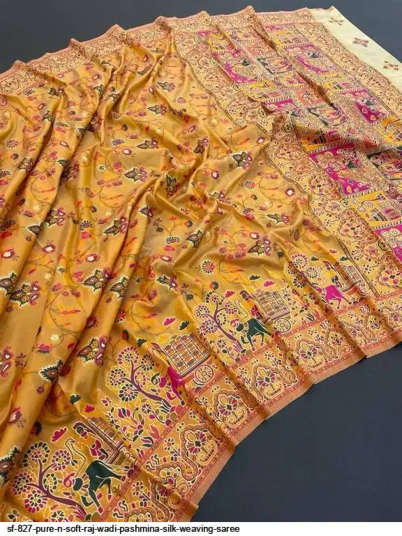 SF 827 PURE N SOFT RAJ WADI PASHMINA SILK WEAVING SAREE E