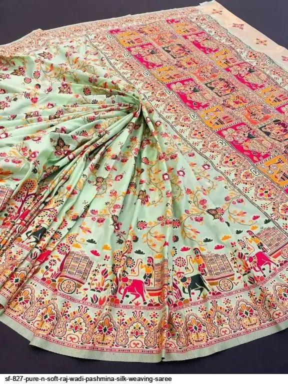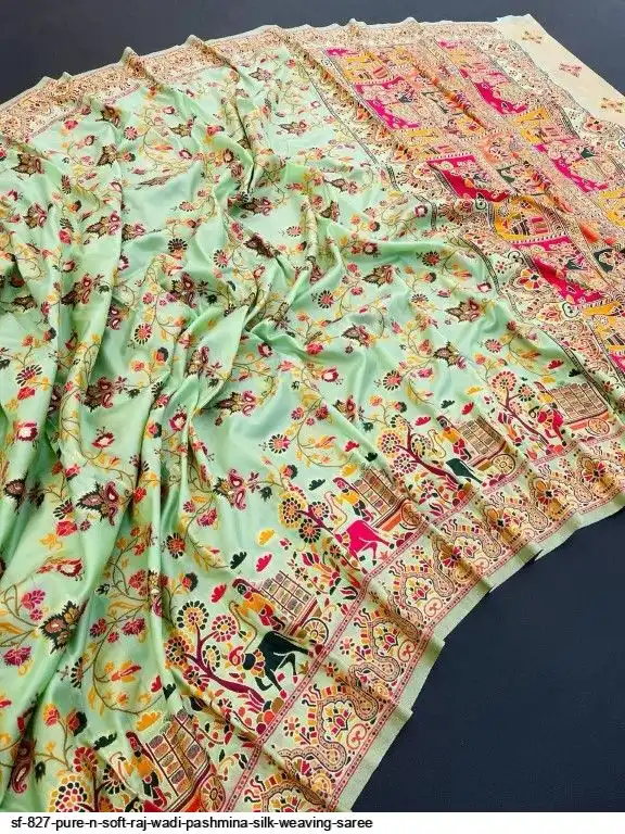 SF 827 PURE N SOFT RAJ WADI PASHMINA SILK WEAVING SAREE F