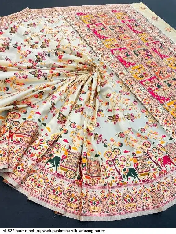 SF 827 PURE N SOFT RAJ WADI PASHMINA SILK WEAVING SAREE G