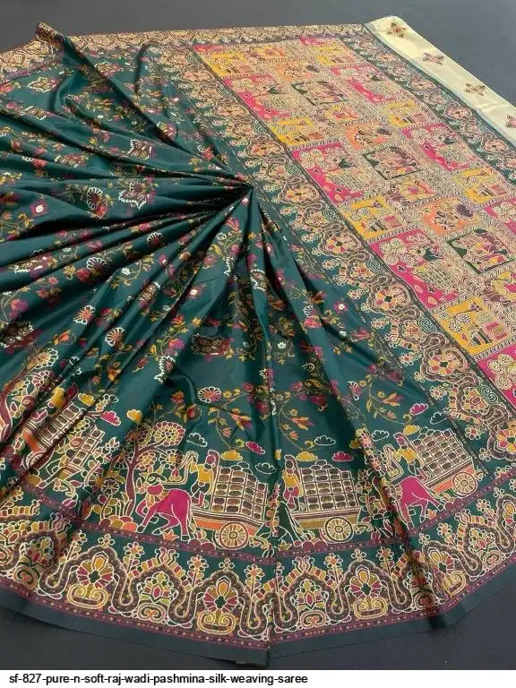 SF 827 PURE N SOFT RAJ WADI PASHMINA SILK WEAVING SAREE N