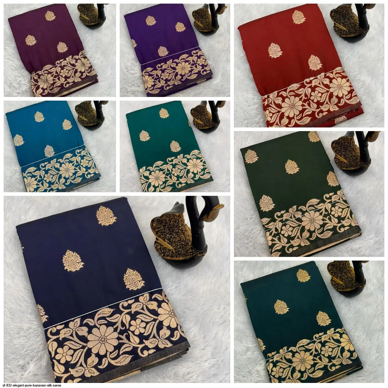 Pure Banarasi Silk Sarees, designed for elegance and grace. The soft silk fabric with intricate golden zari weaving