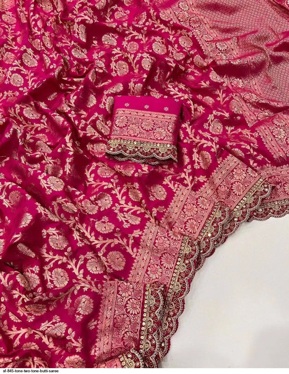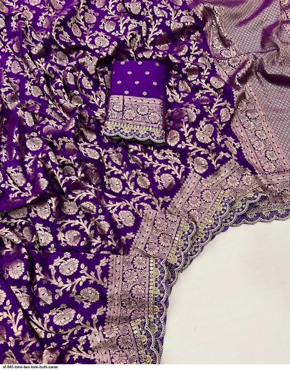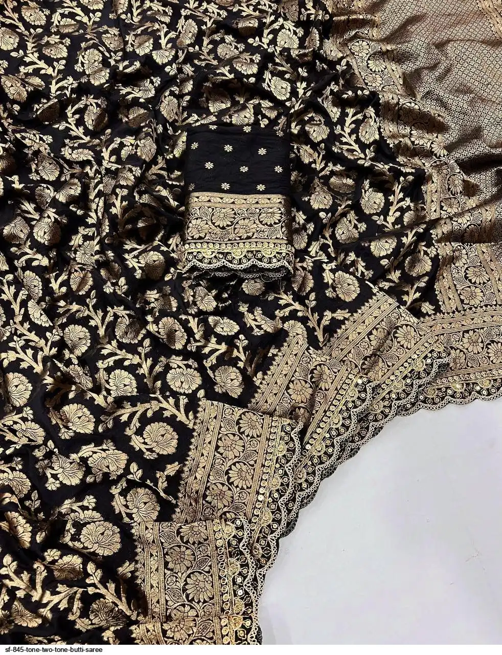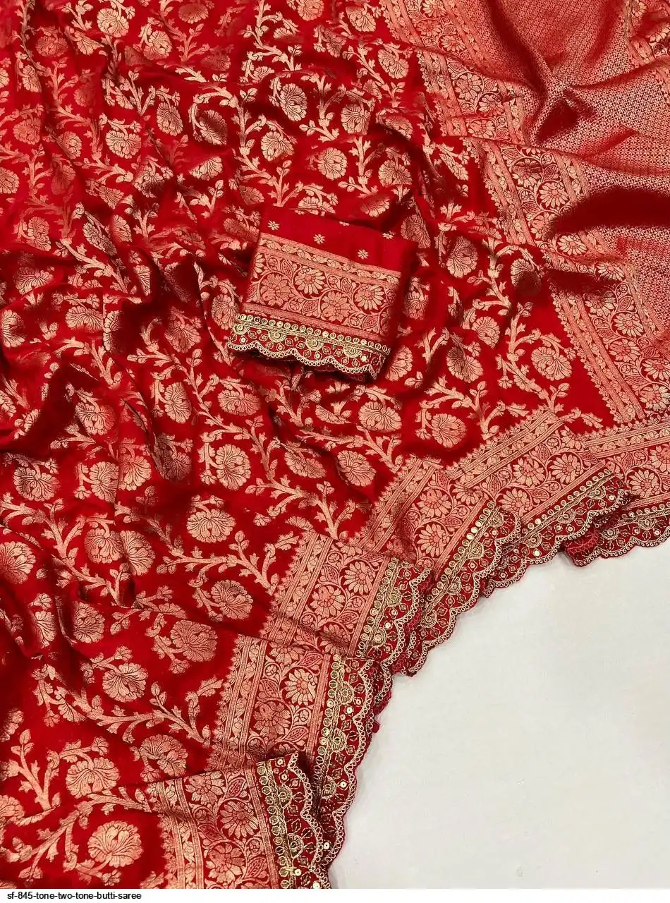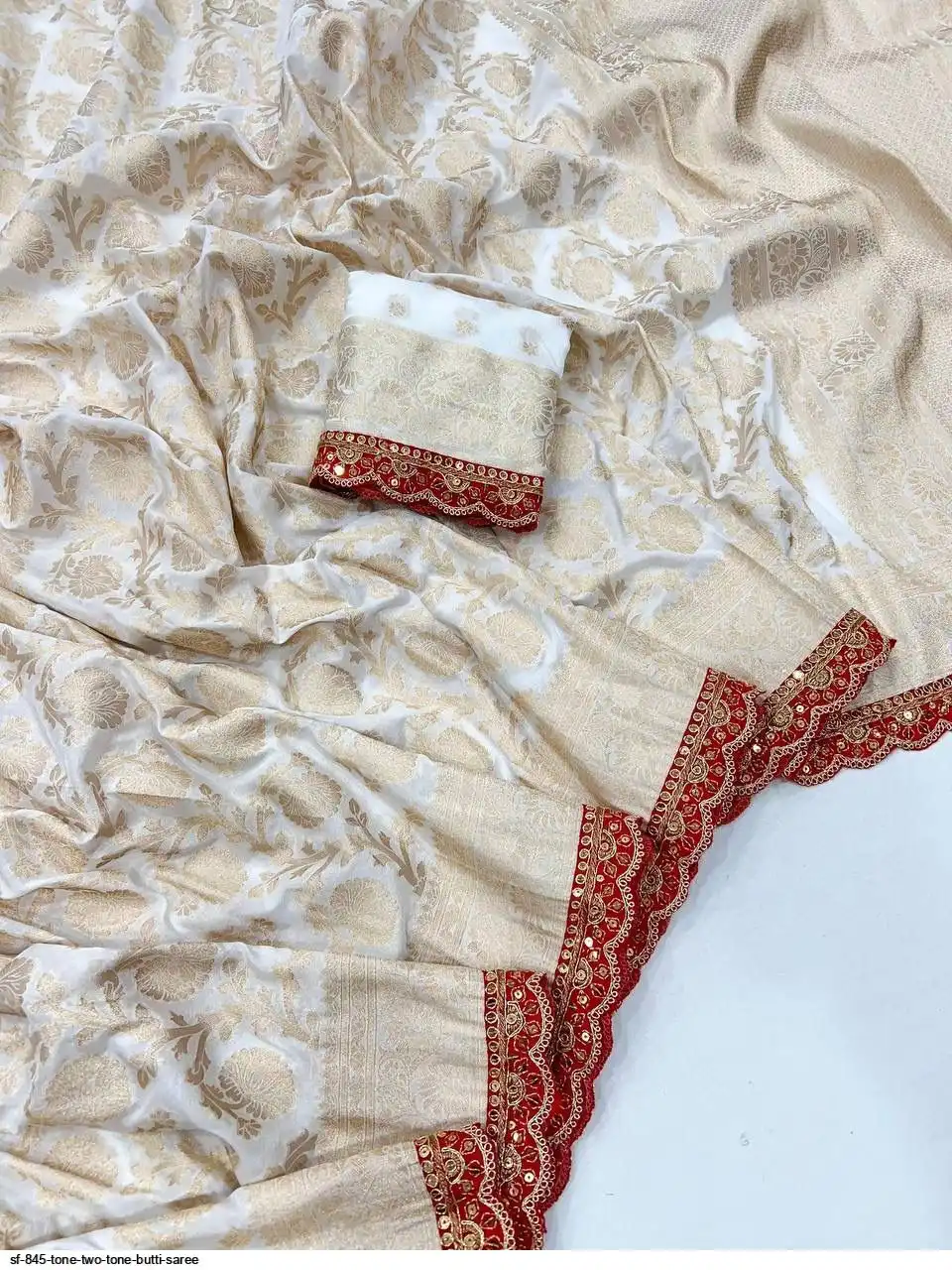 Adorn yourself in this beautiful and charming pure khaddi georgette designer saree in sabyasachi scallop intricate borders