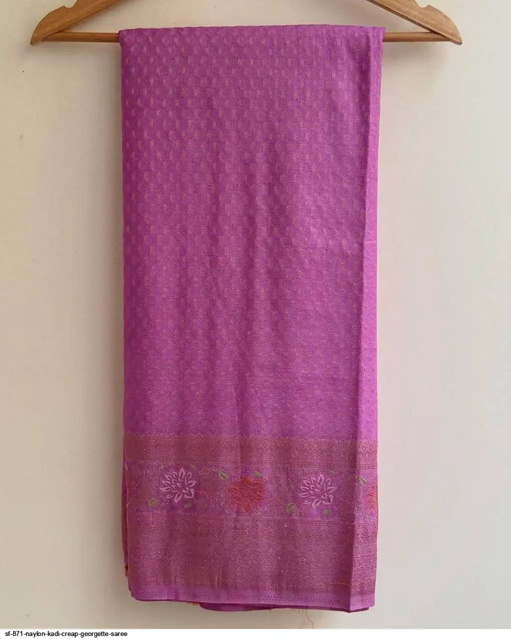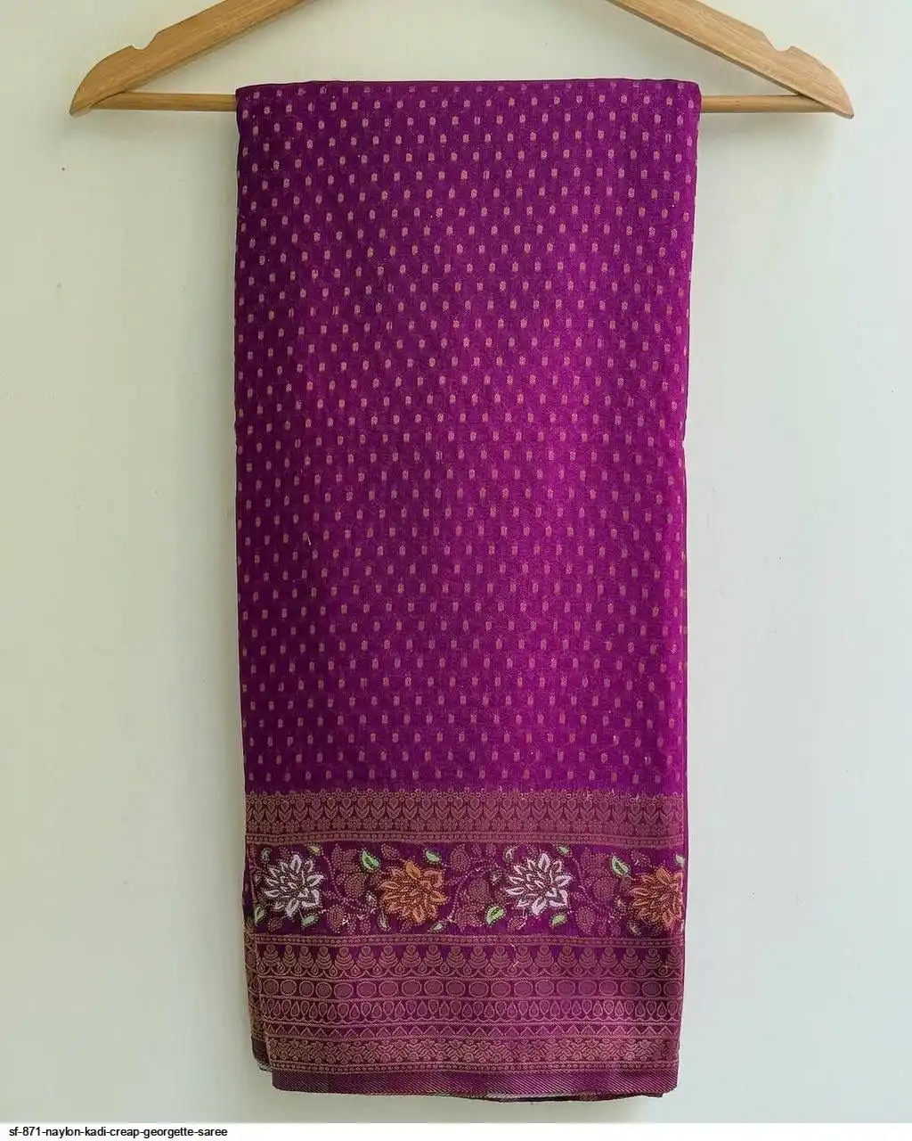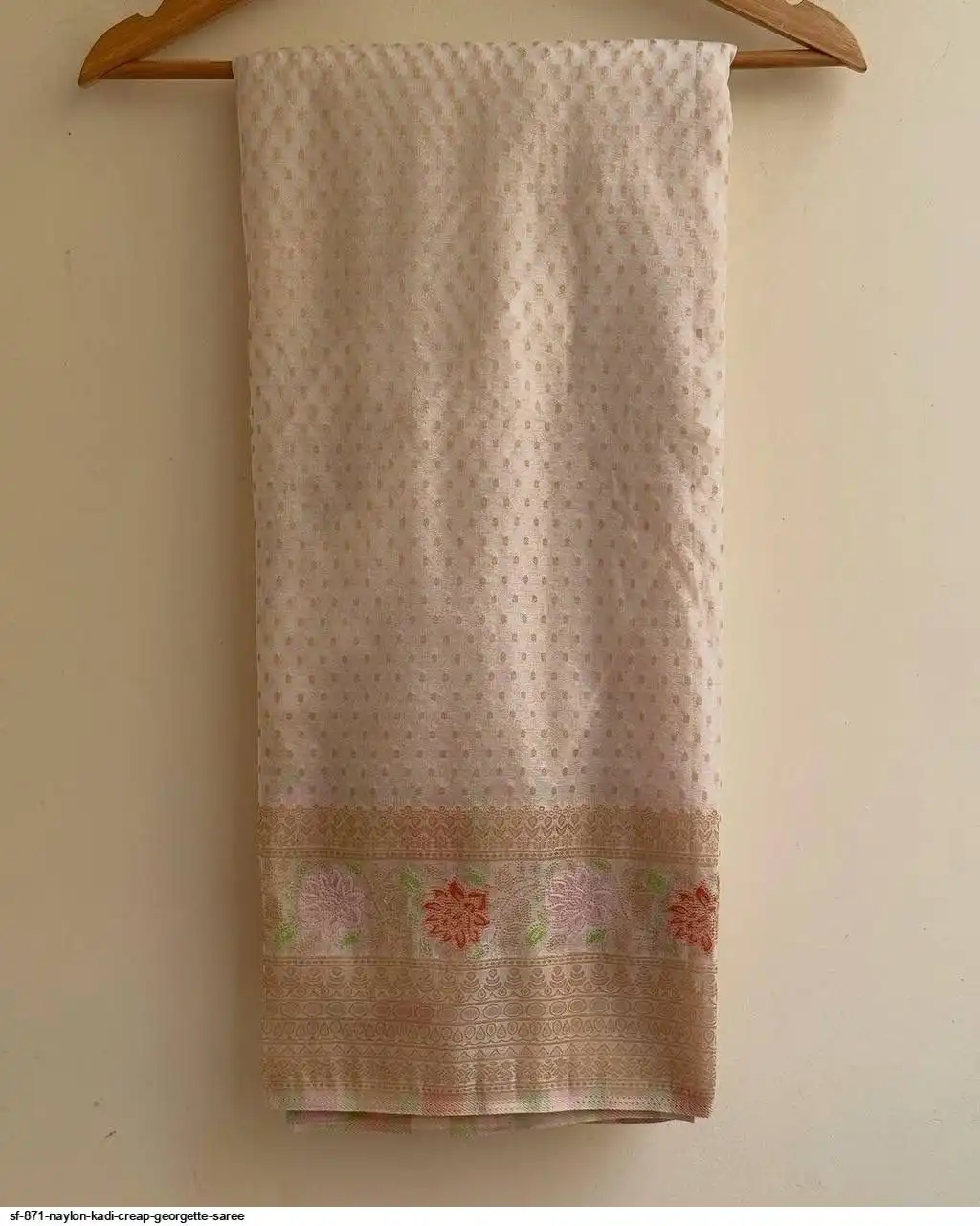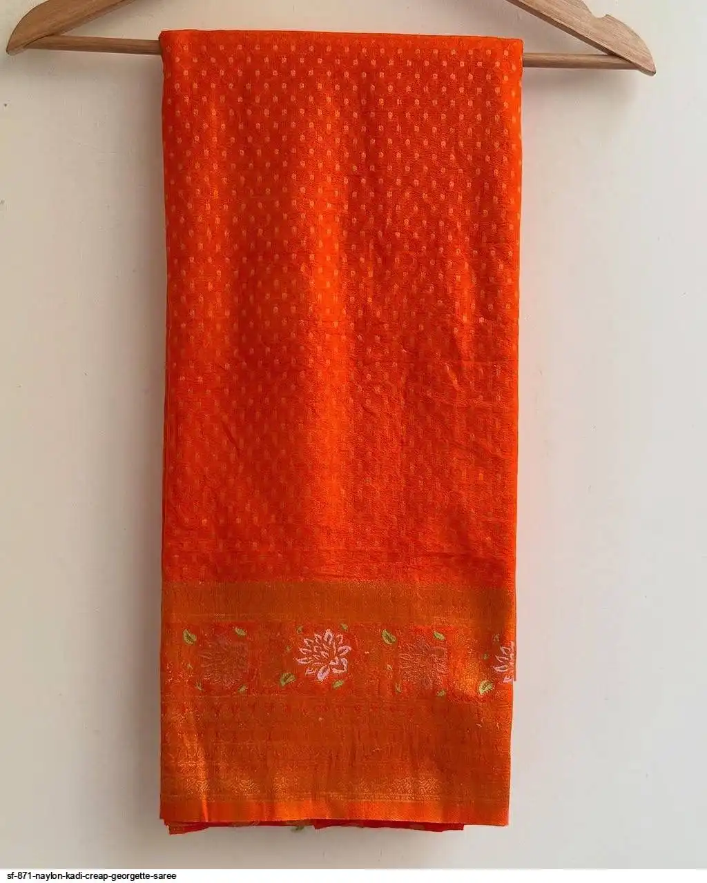 Pure Naylon kadi Creap Georgette jangal theem meenakari jaqurad weveing body ,border with Rich pallu