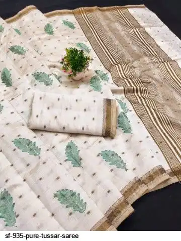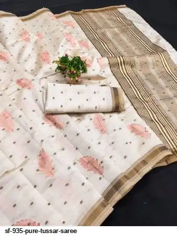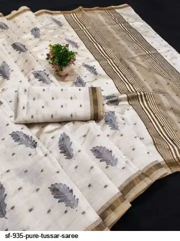 Saree : Pure Tussar Saree with all over the multi thread embroidery work and piping border.