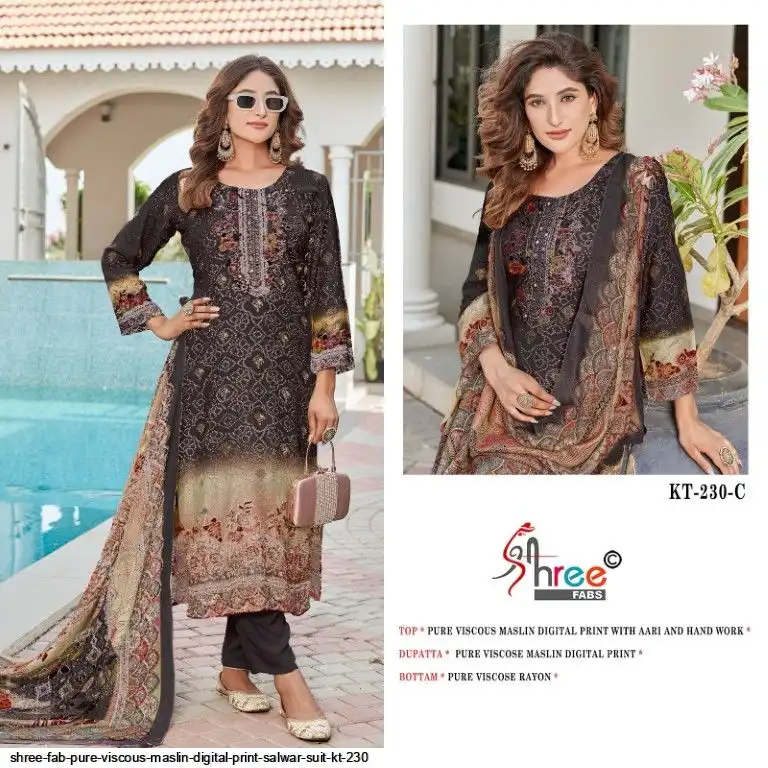 Top Pure viscous Maslin digital print with aari and hand work