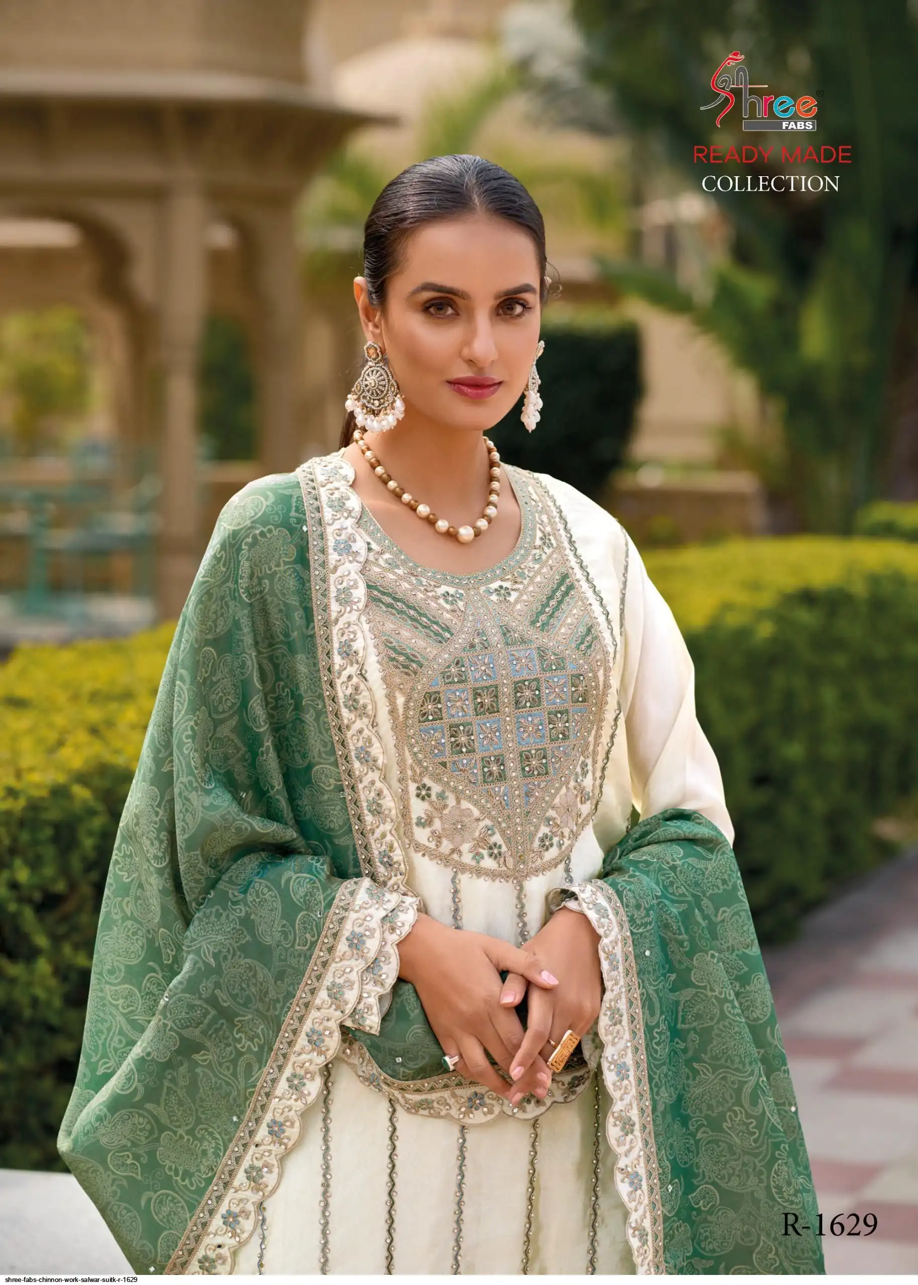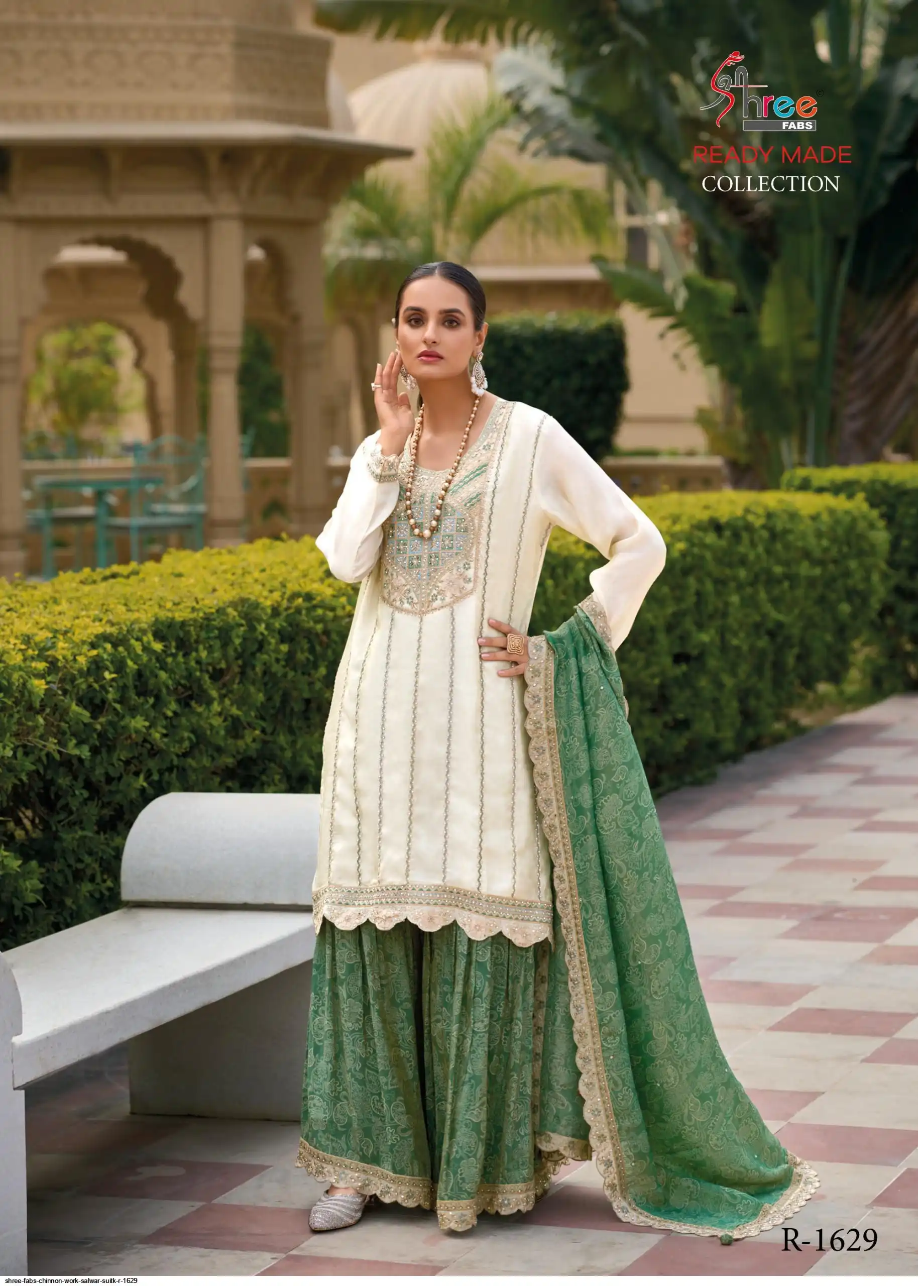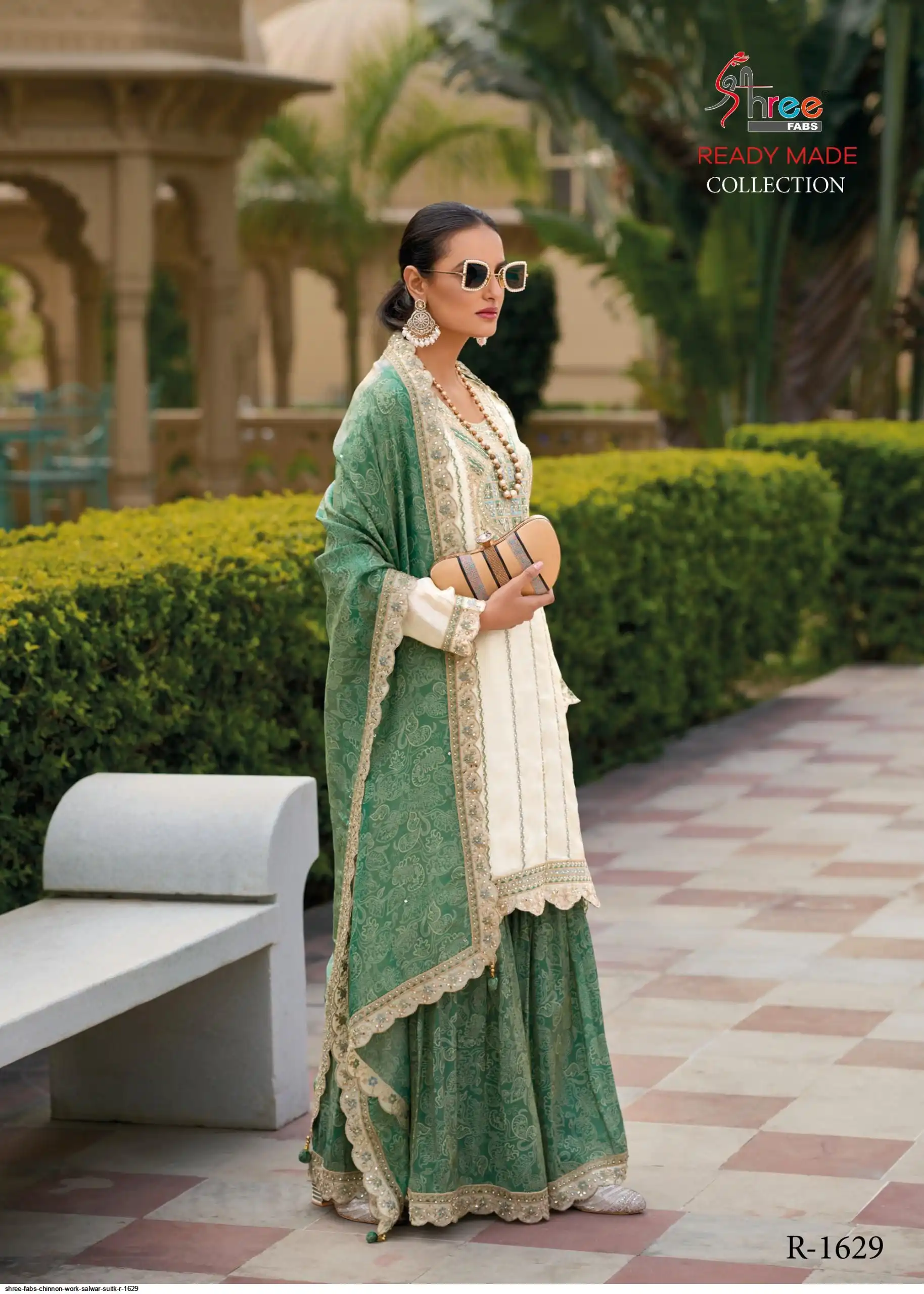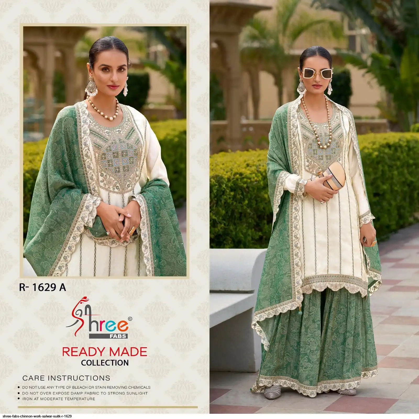 plazo duppta all 3 pc in chinon with digital print heavy embroderd