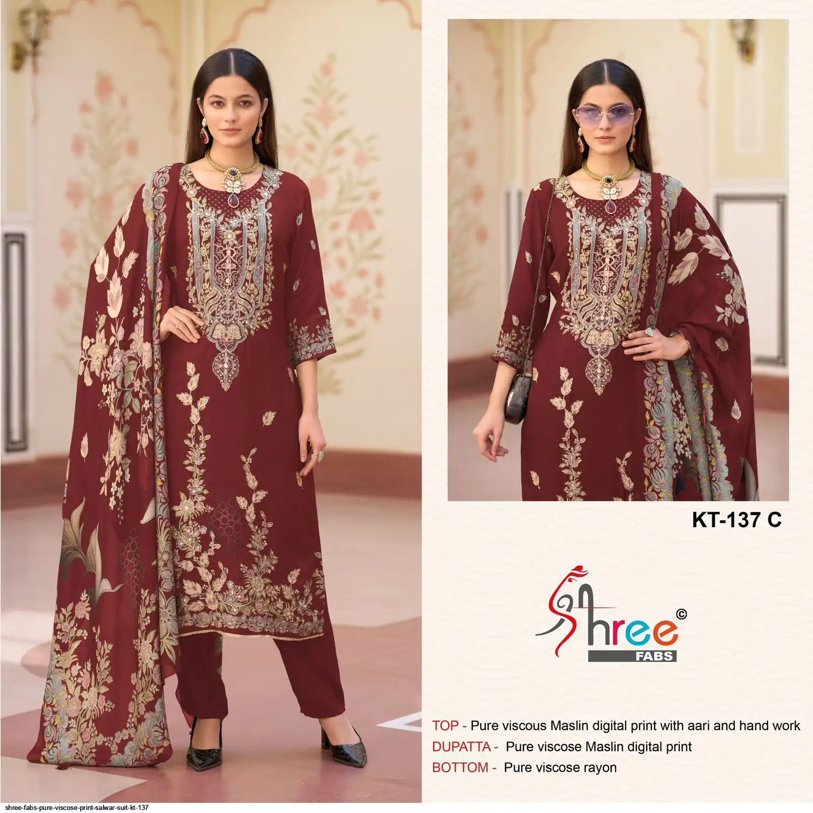 Top- Pure Viscous New cMaslin Digital Print and Aari Work