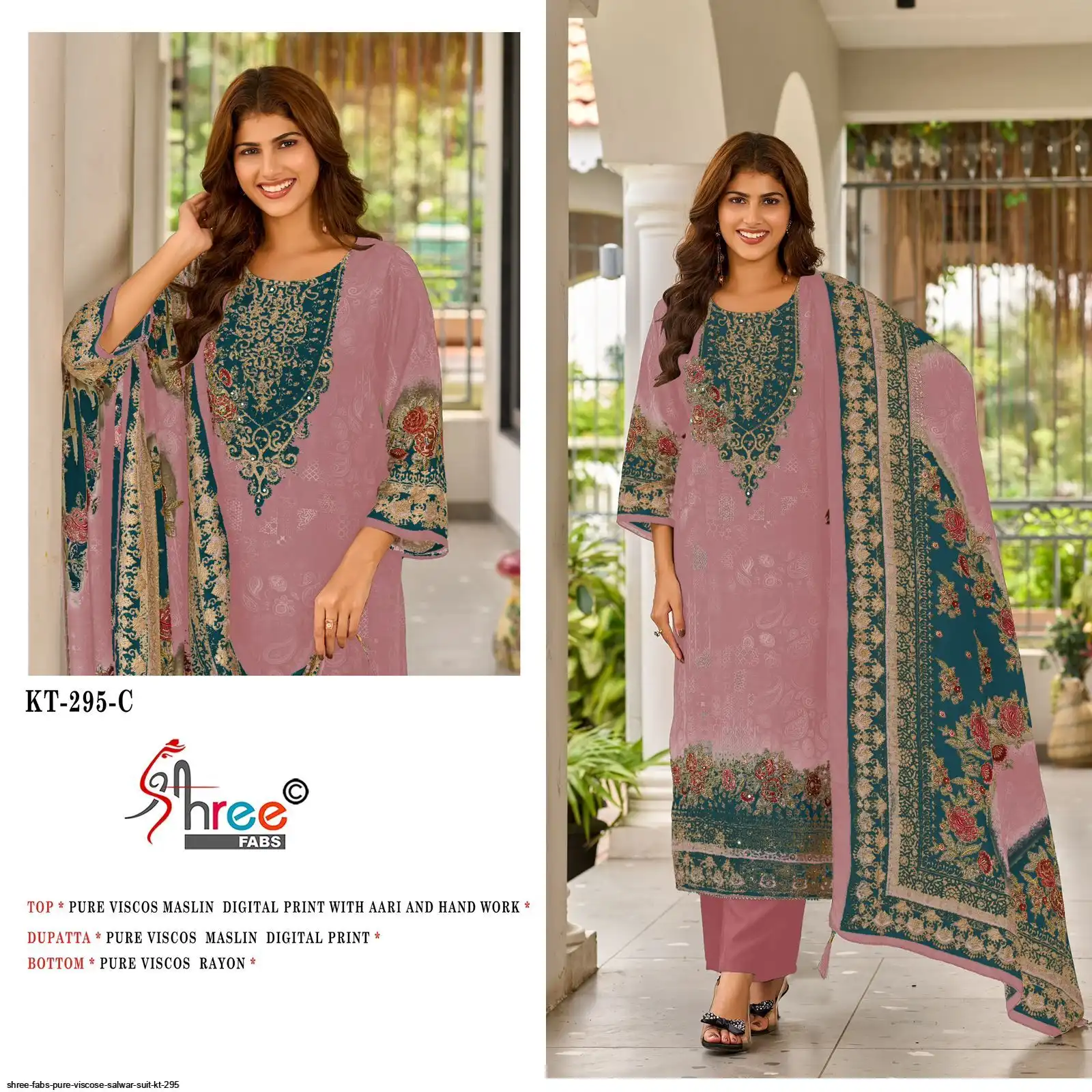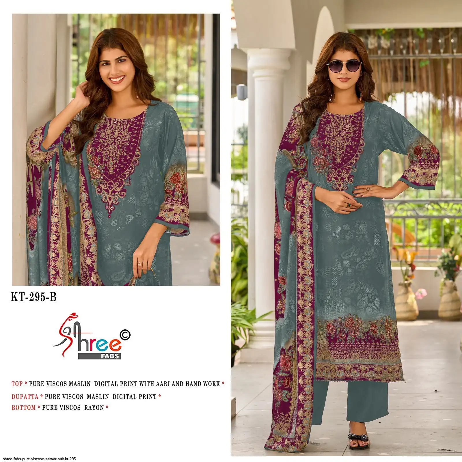 Top- Pure Viscous Maslin Digital Print and Aari Work