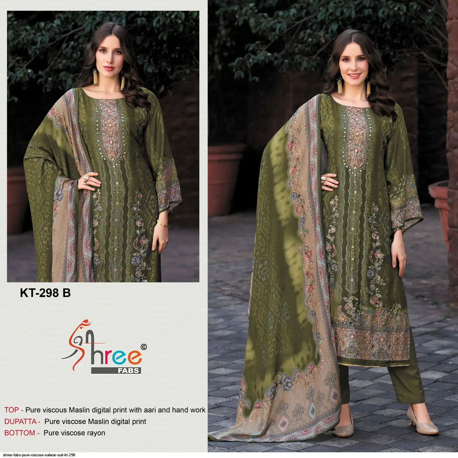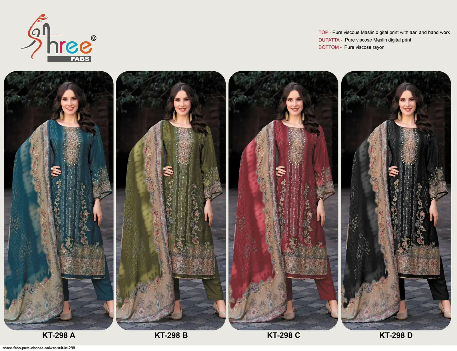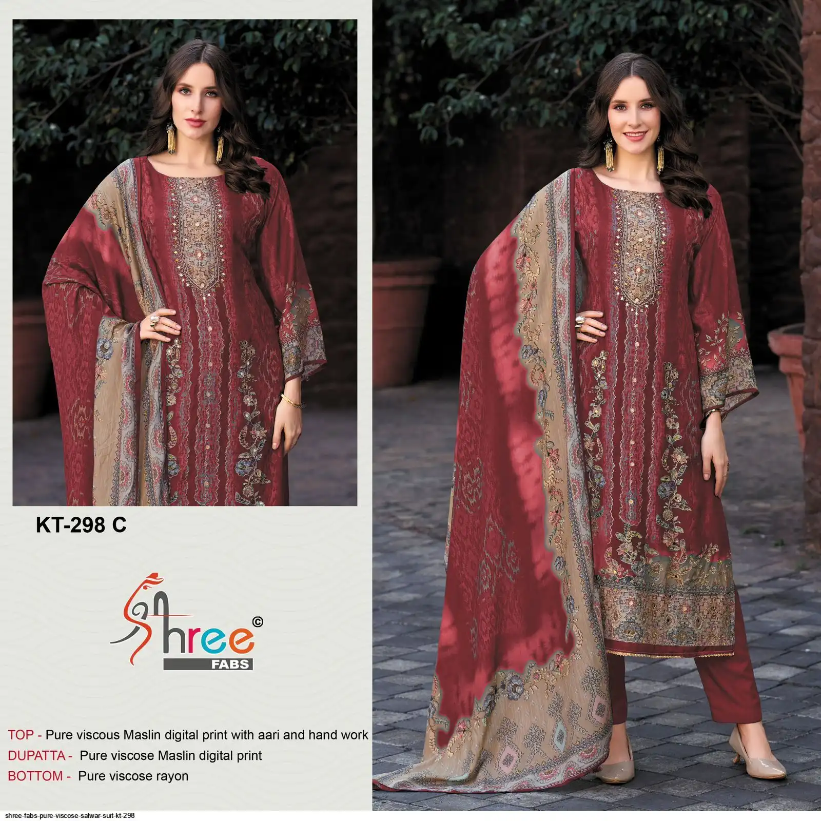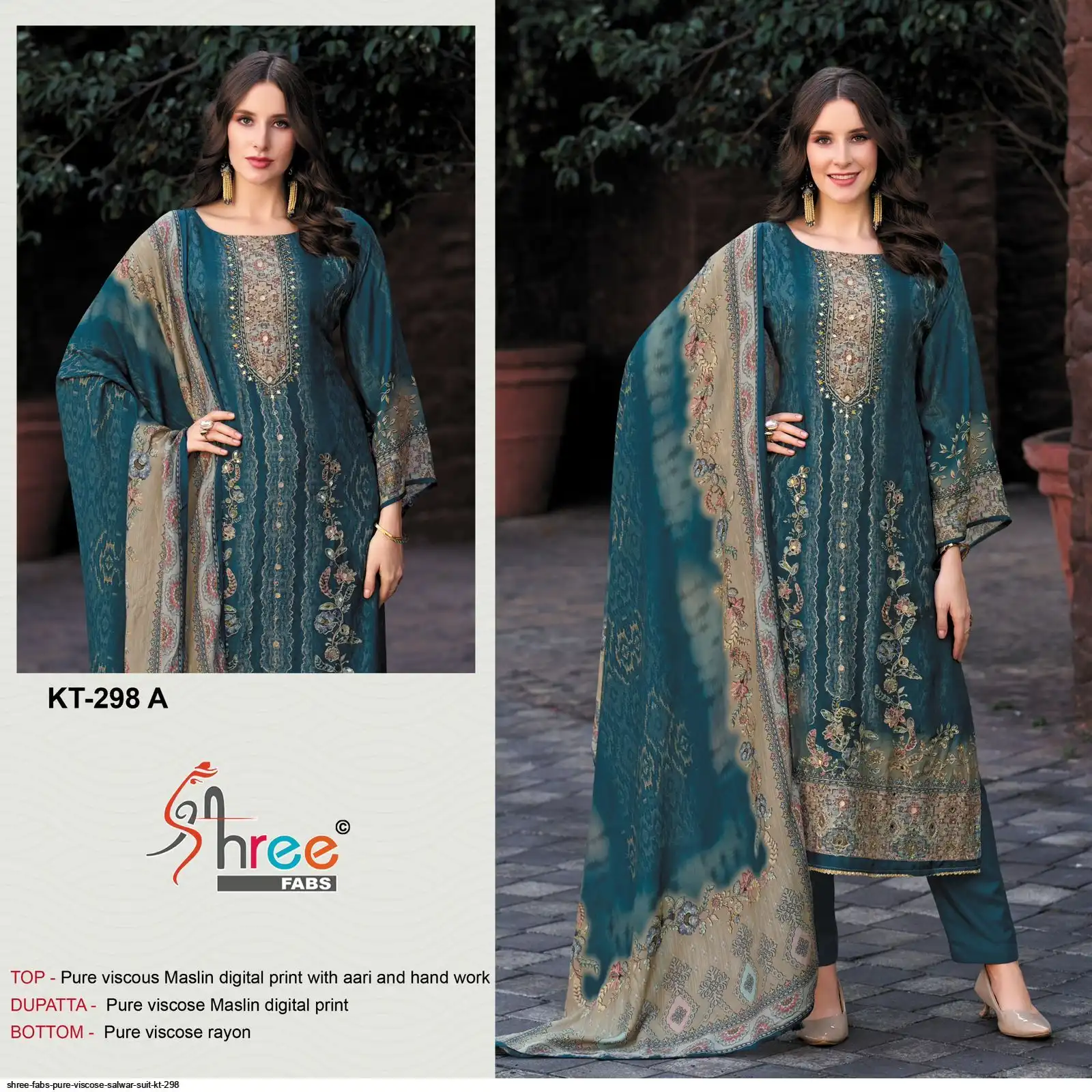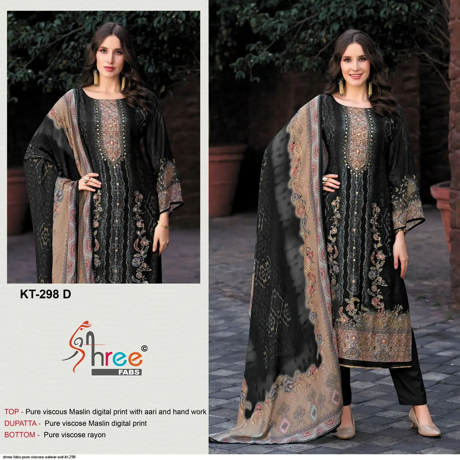 Top- Pure Viscous Maslin Digital Print and Aari Work