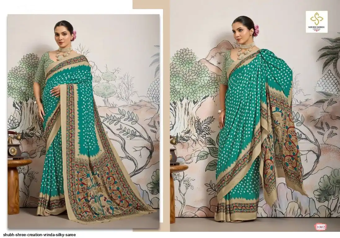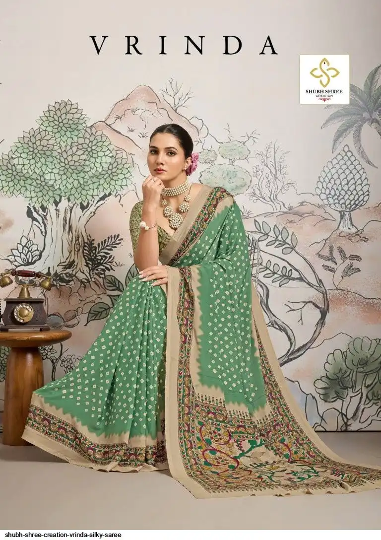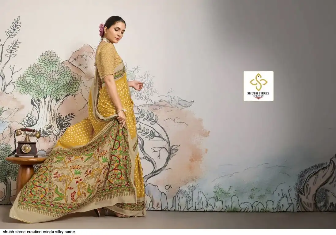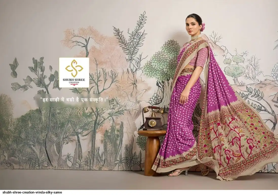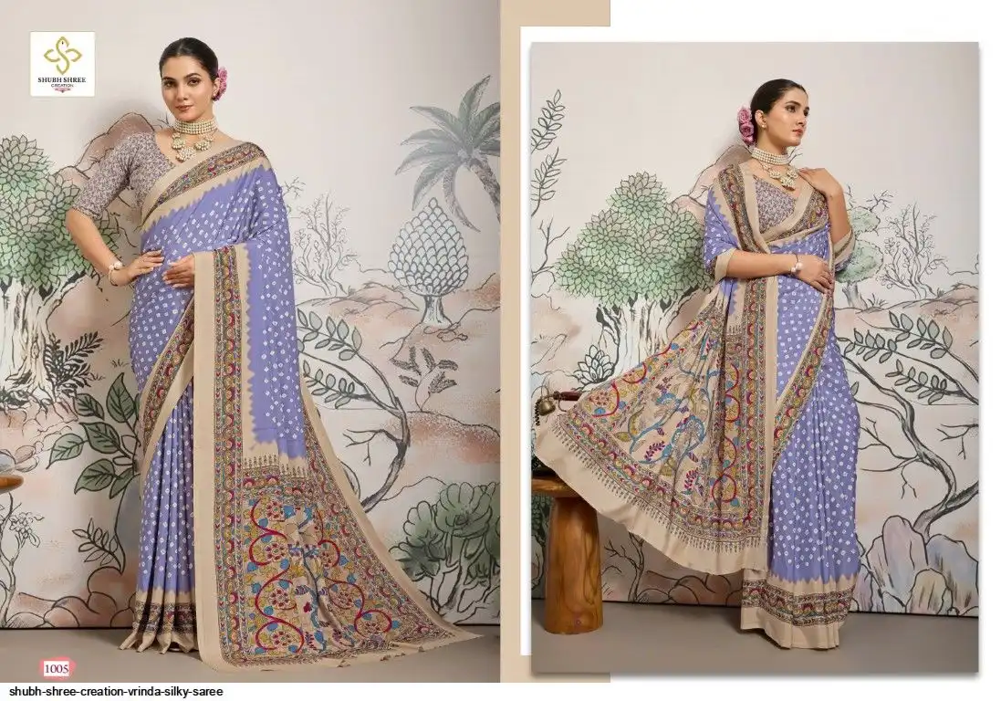 FABRIC - DULL CREAP WITH SMALL WHITE BANDEJ STYLE MOTIFS , KALAMKARI PALLU & SILKY BLOUSE , LITTLE DUSTY MATCHING