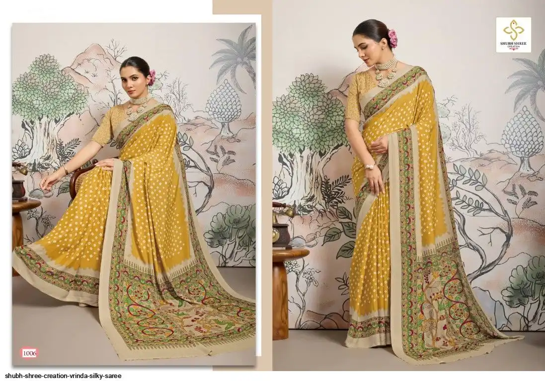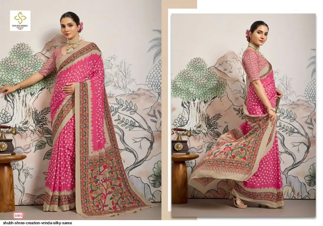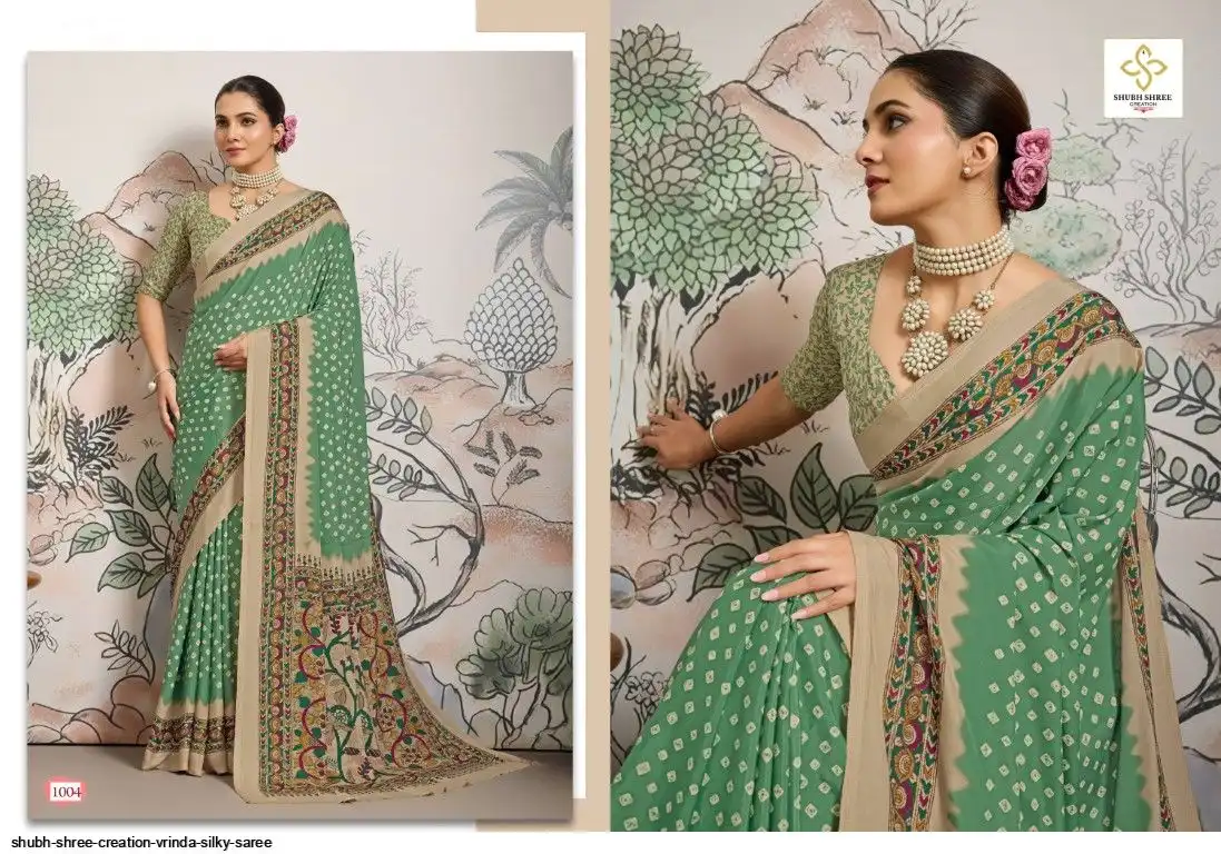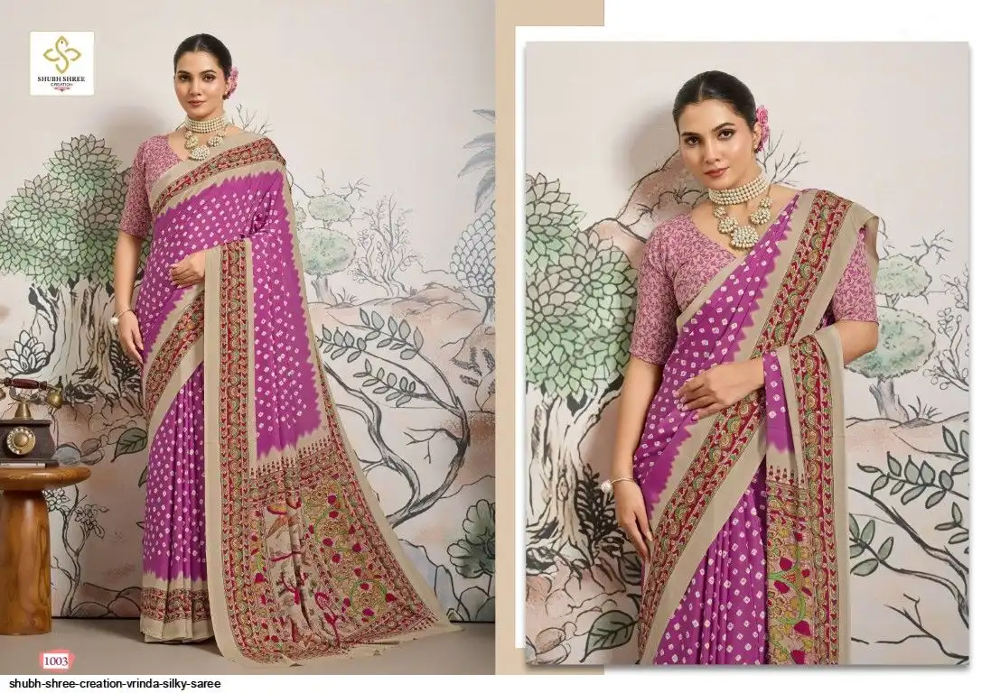 FABRIC - DULL CREAP WITH SMALL WHITE BANDEJ STYLE MOTIFS , KALAMKARI PALLU & SILKY BLOUSE , LITTLE DUSTY MATCHING