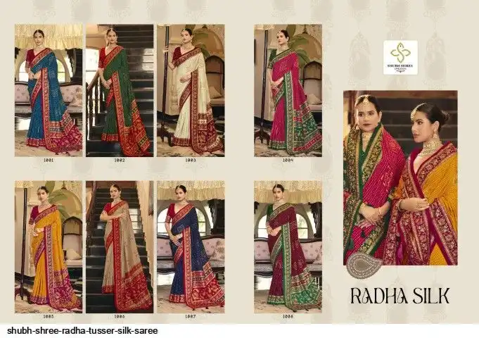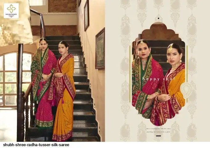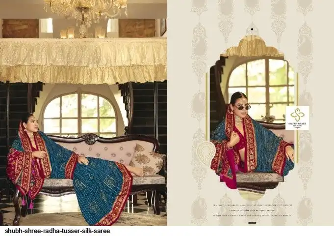 FABRIC - WELVET TUSSER SILK FUSION OF BANDHANI PRINT WITH RICH BANARASI SILK BORDER & PALLU & REGULAR BLOUSE & TUSSELLES