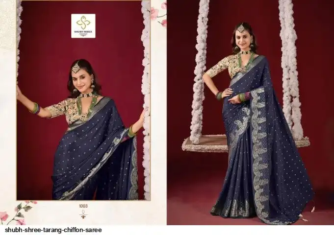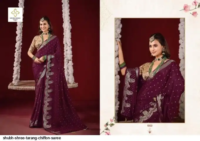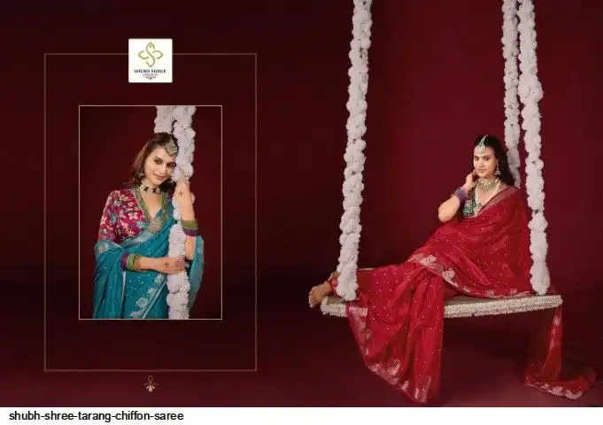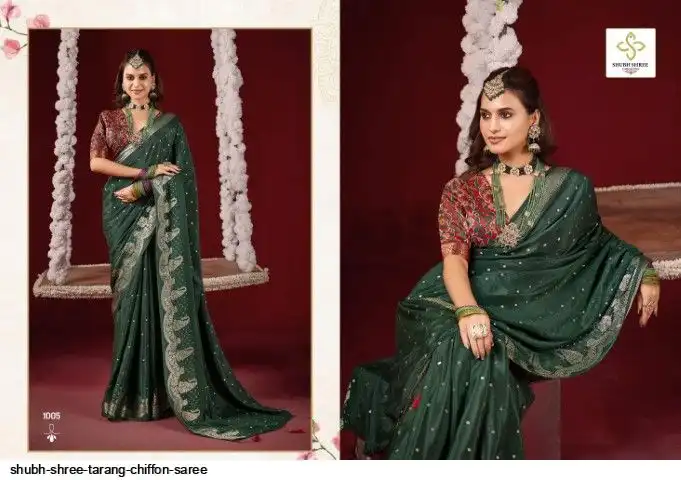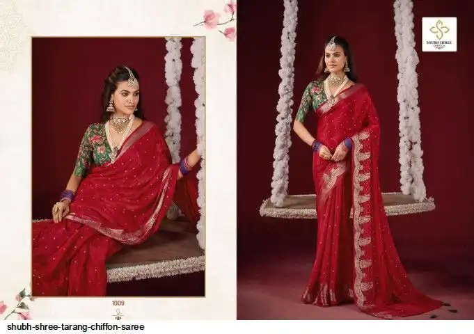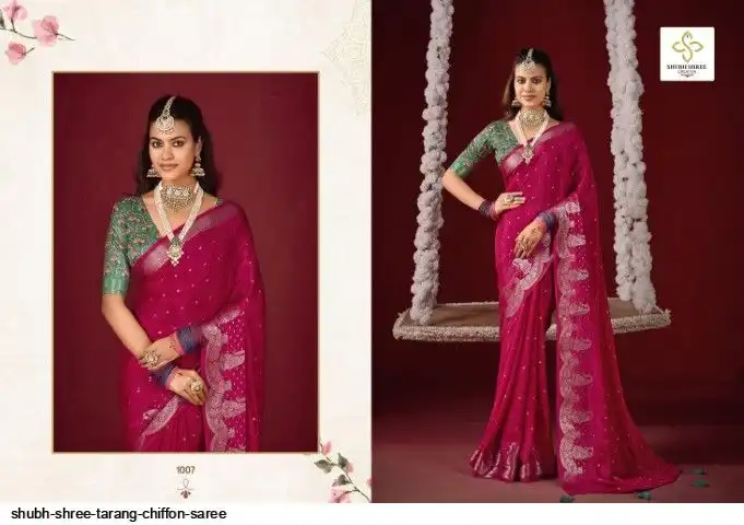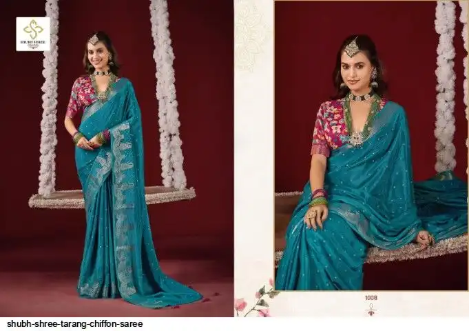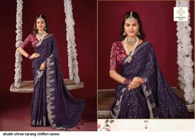 FABRIC - ALFINO CHIFFON JACQUARD BORDER , BUTTY WITH DIGITAL PRINT CONTRAST BLOUSE , WITH SPRING TUSSELLS , EXCLUSIVE DYING FRESH DARK COLOUR RANGE