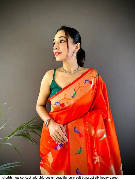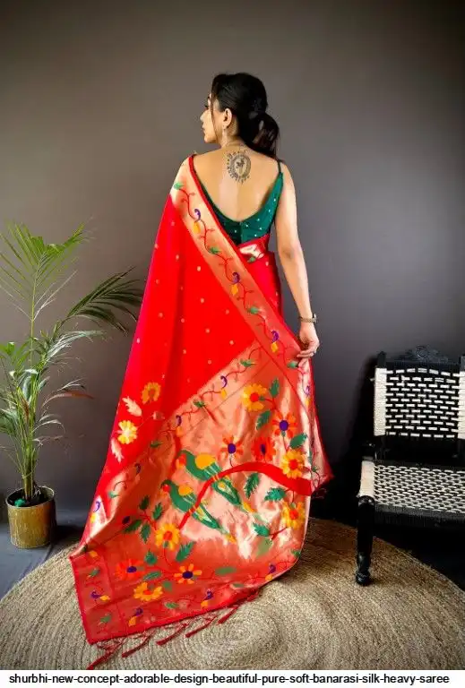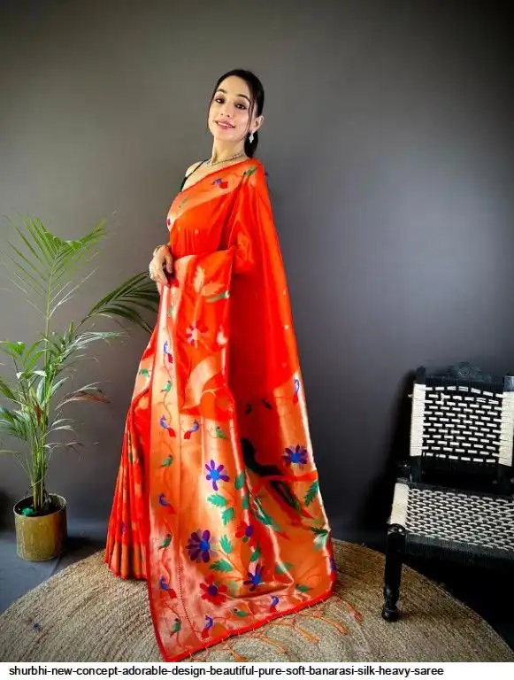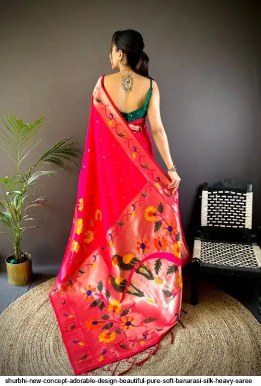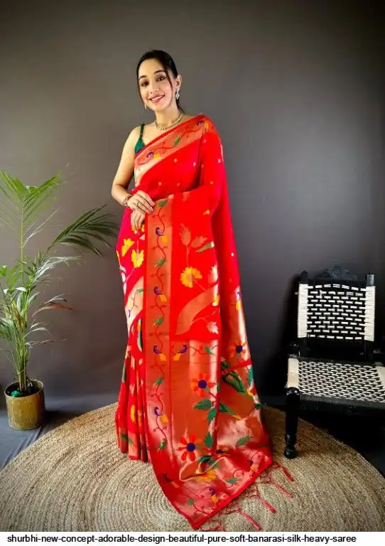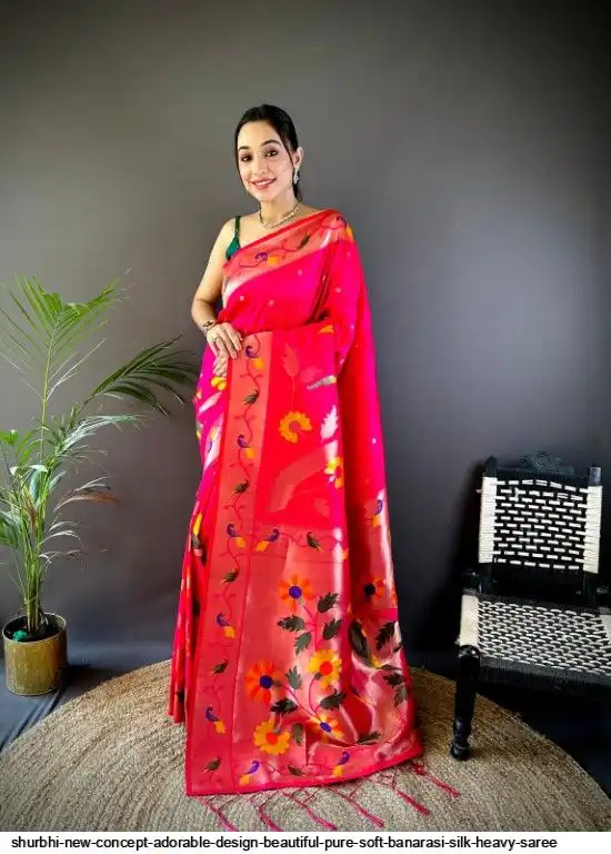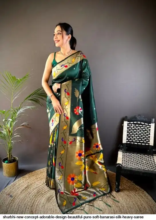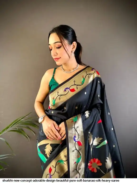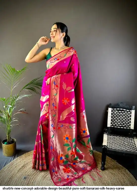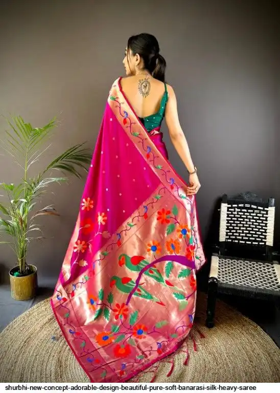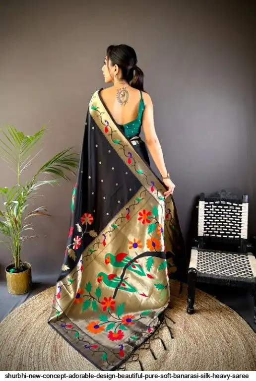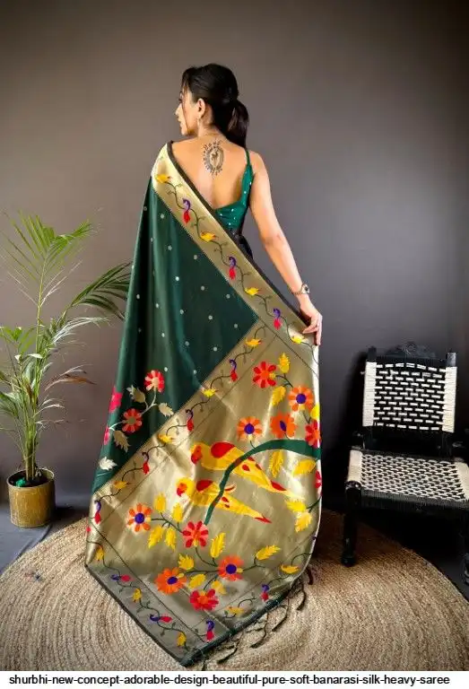 New Concept Adorable Design Beautiful pure soft banarasi silk heavy saree with nice & designer look GOLD jari Pallu and border weaving.