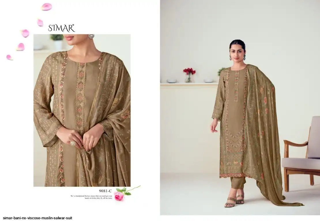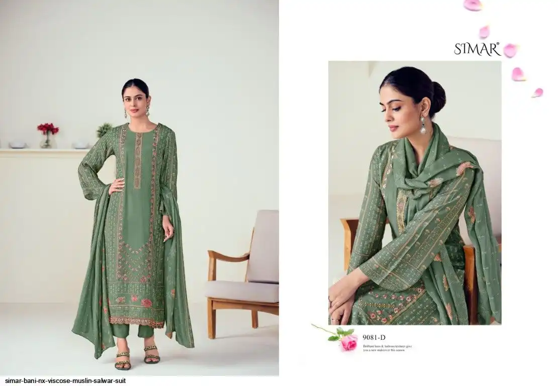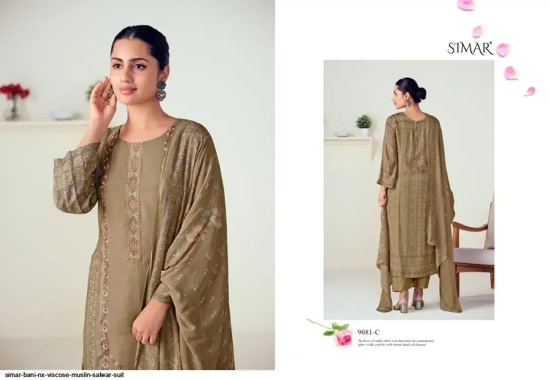 Pure Viscose Muslin Digital Print With Embroidery Work