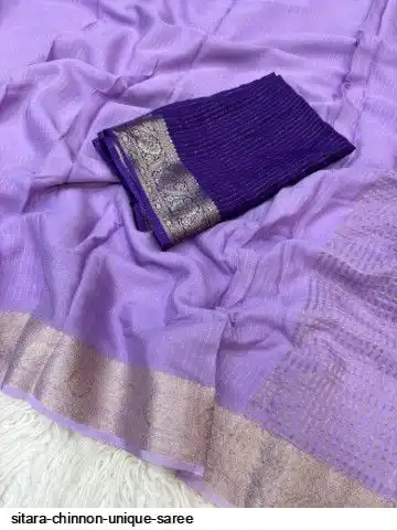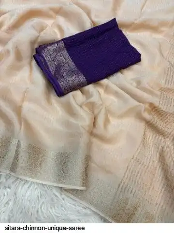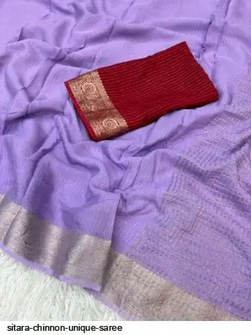 Catalog - Sitara Chinnon Pure viscose Chinnon with lurex jacquard border with contrast blouse