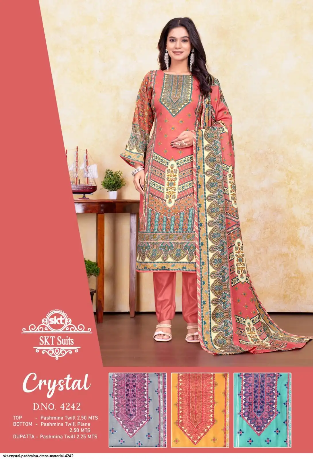 SKT CRYSTAL PASHMINA DRESS MATERIAL 4242