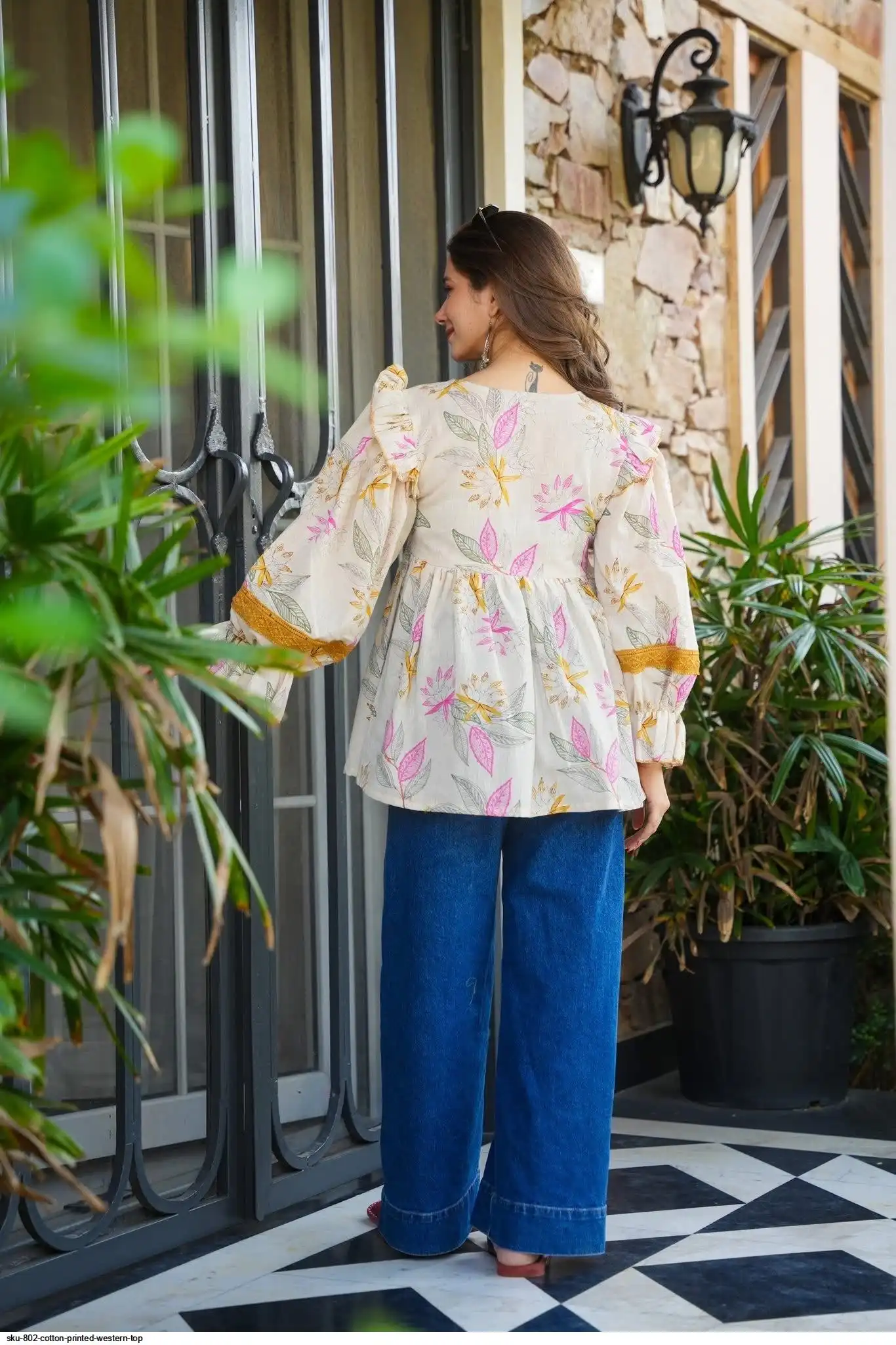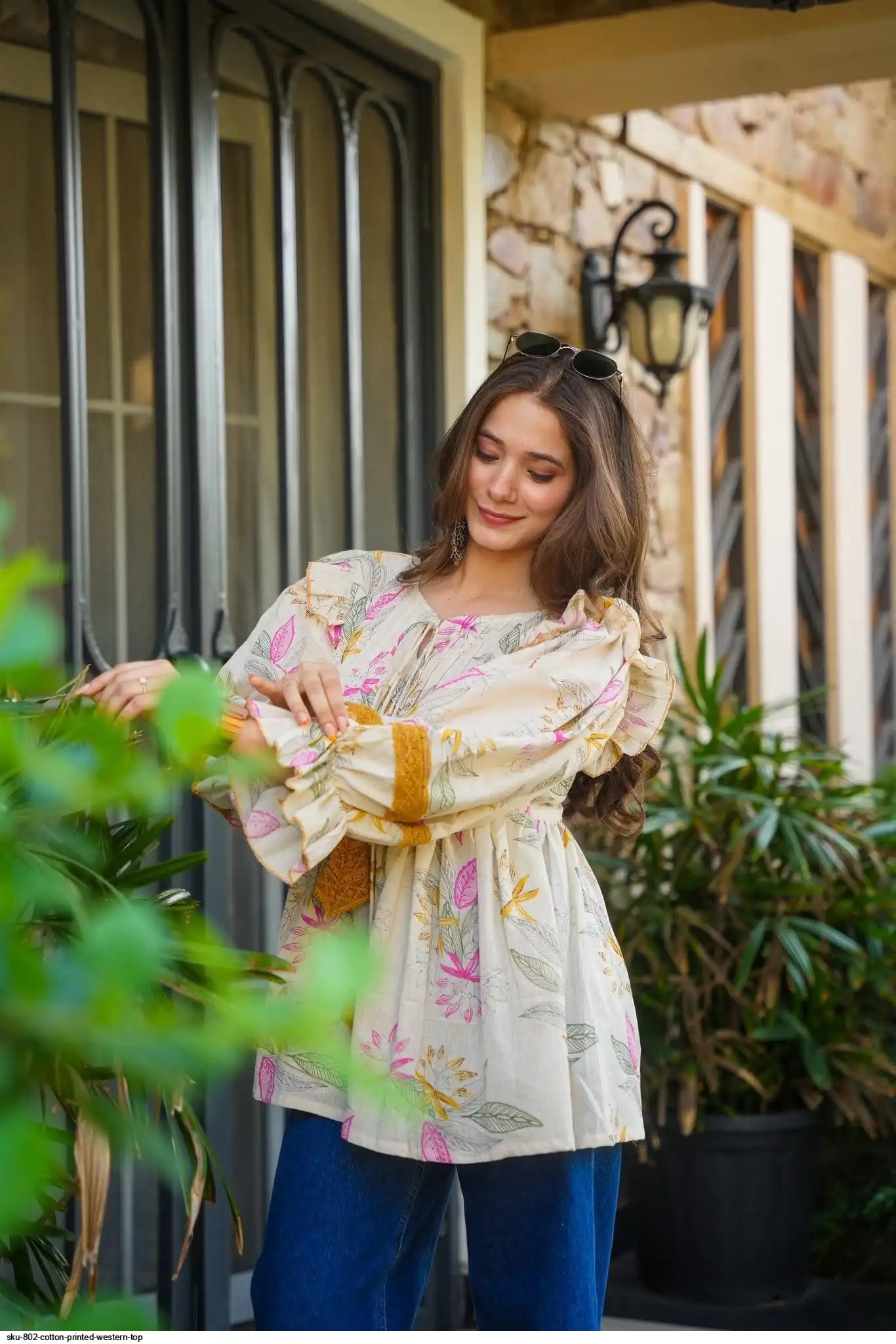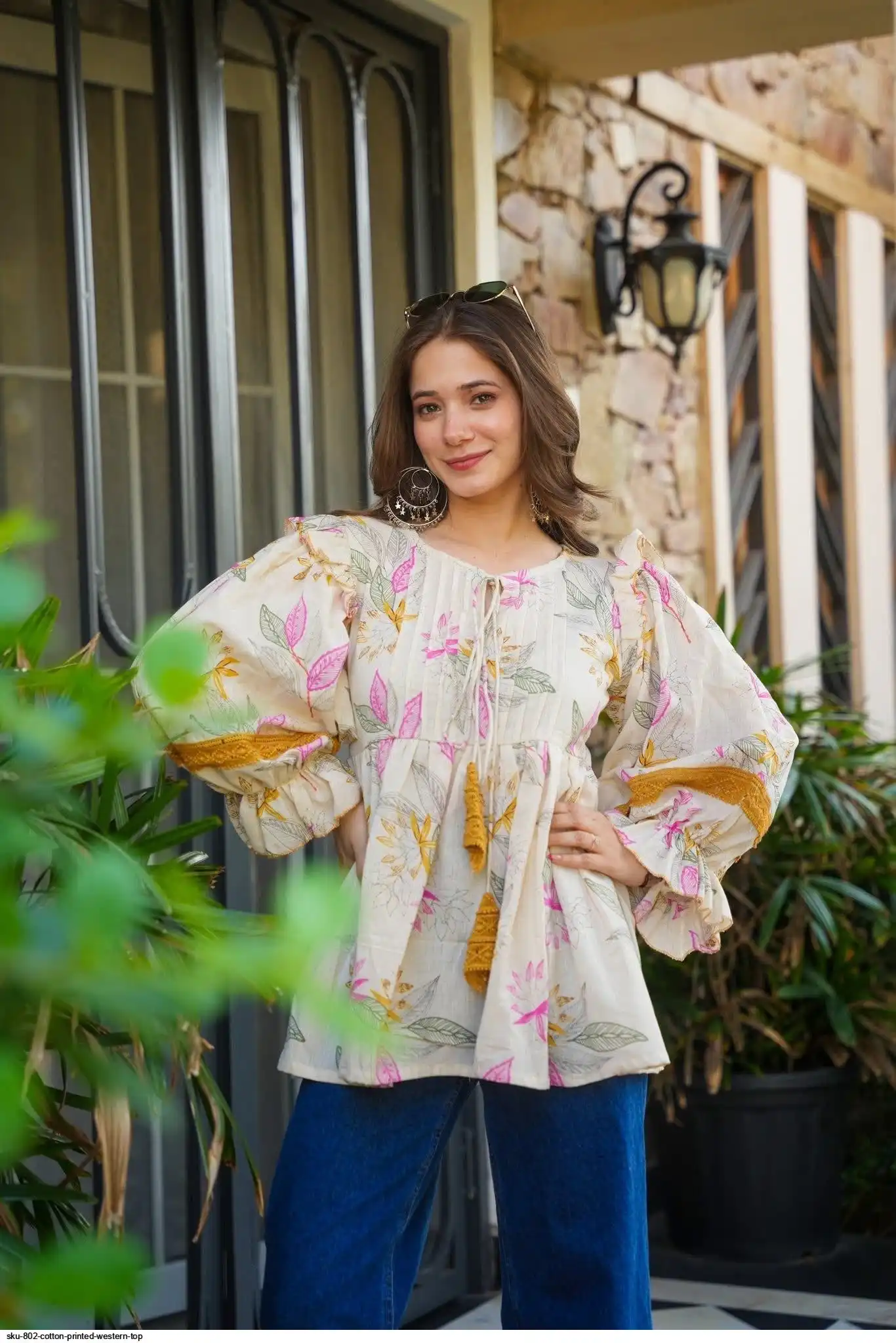 SKU 802 COTTON PRINTED WESTERN TOP
