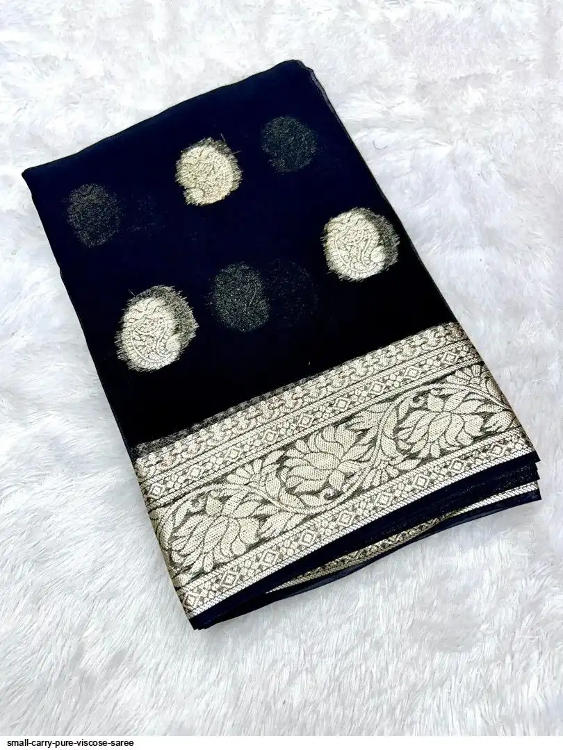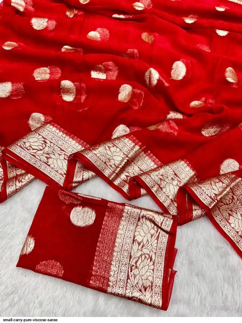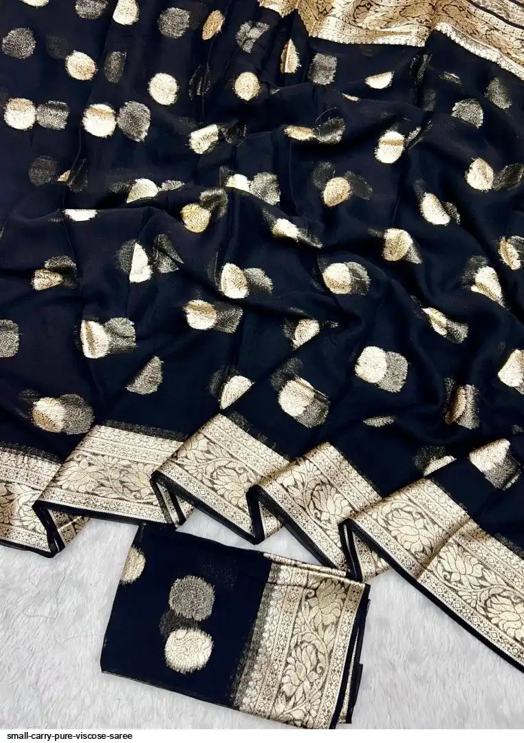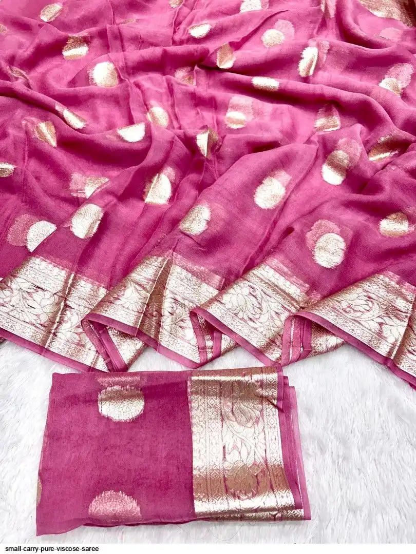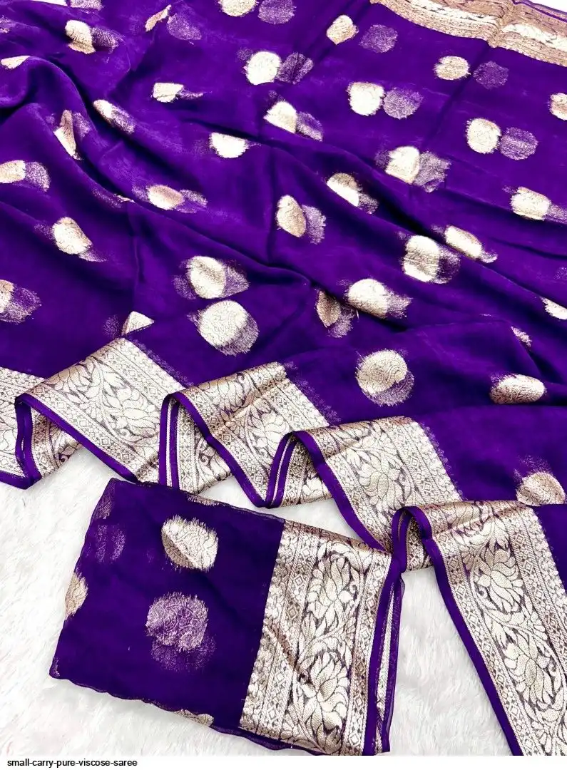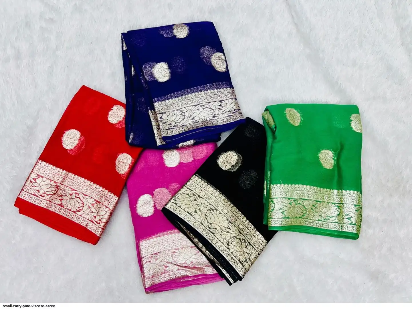 Pure Viscose Georgette Saree With Fancy Zari And Fancy Jacquard Border With Fancy Viscose Georgette Silk Blouse