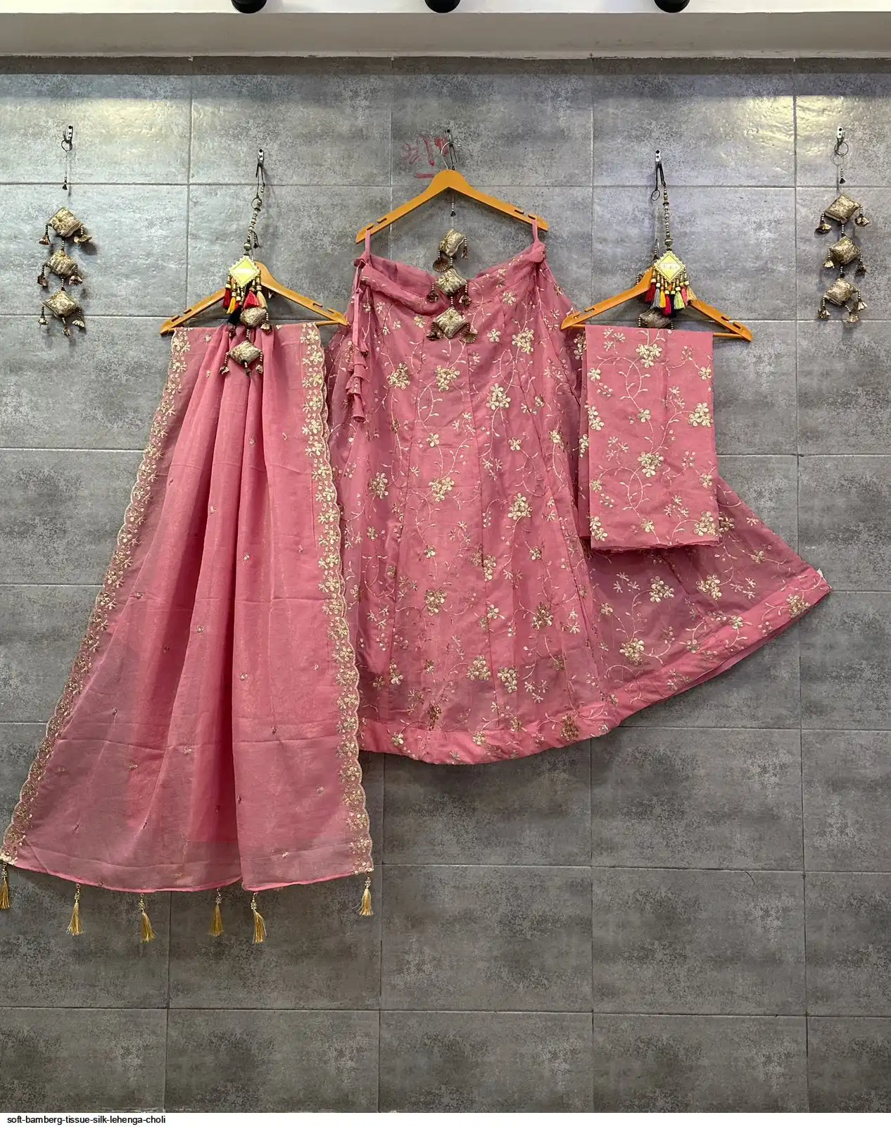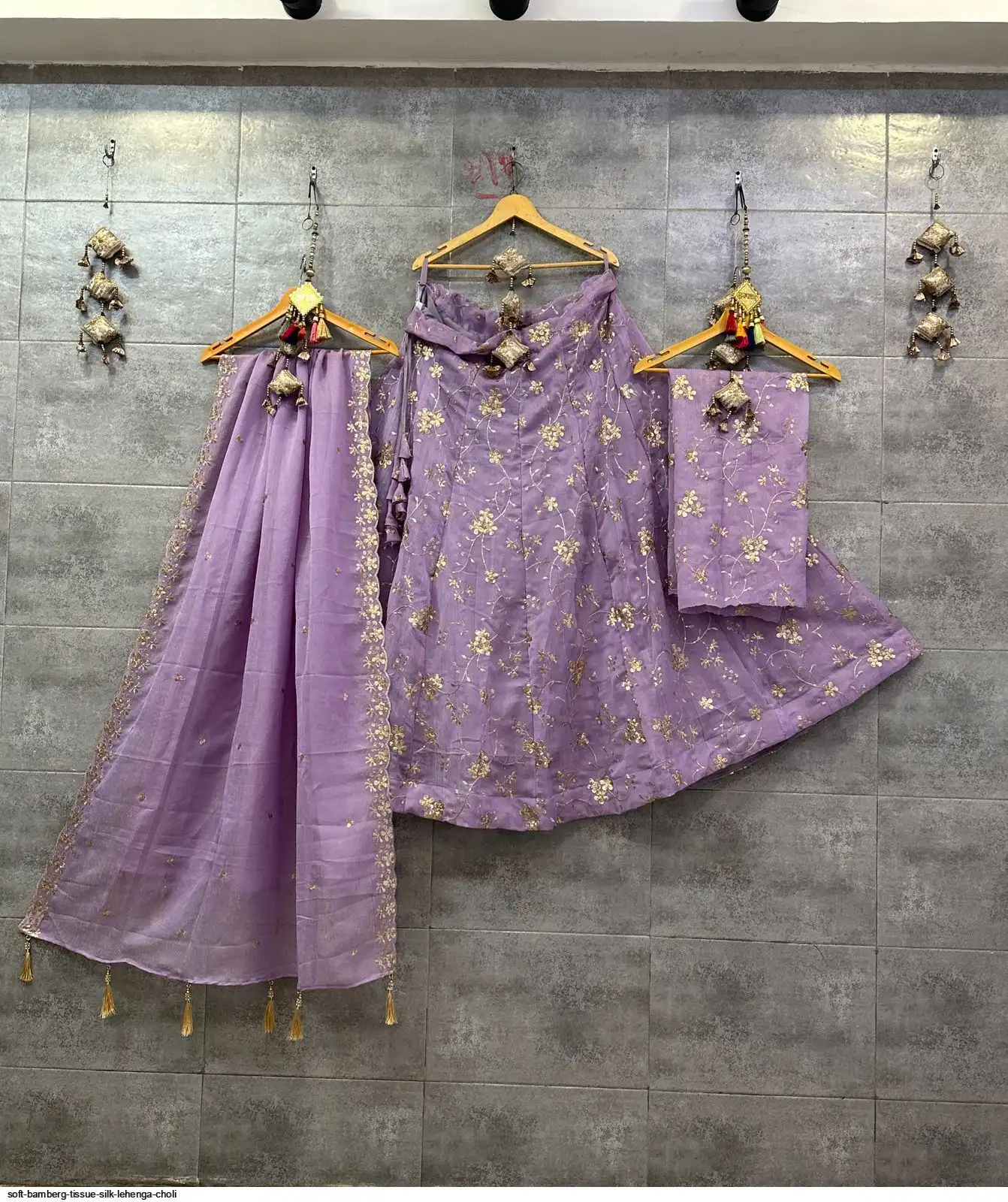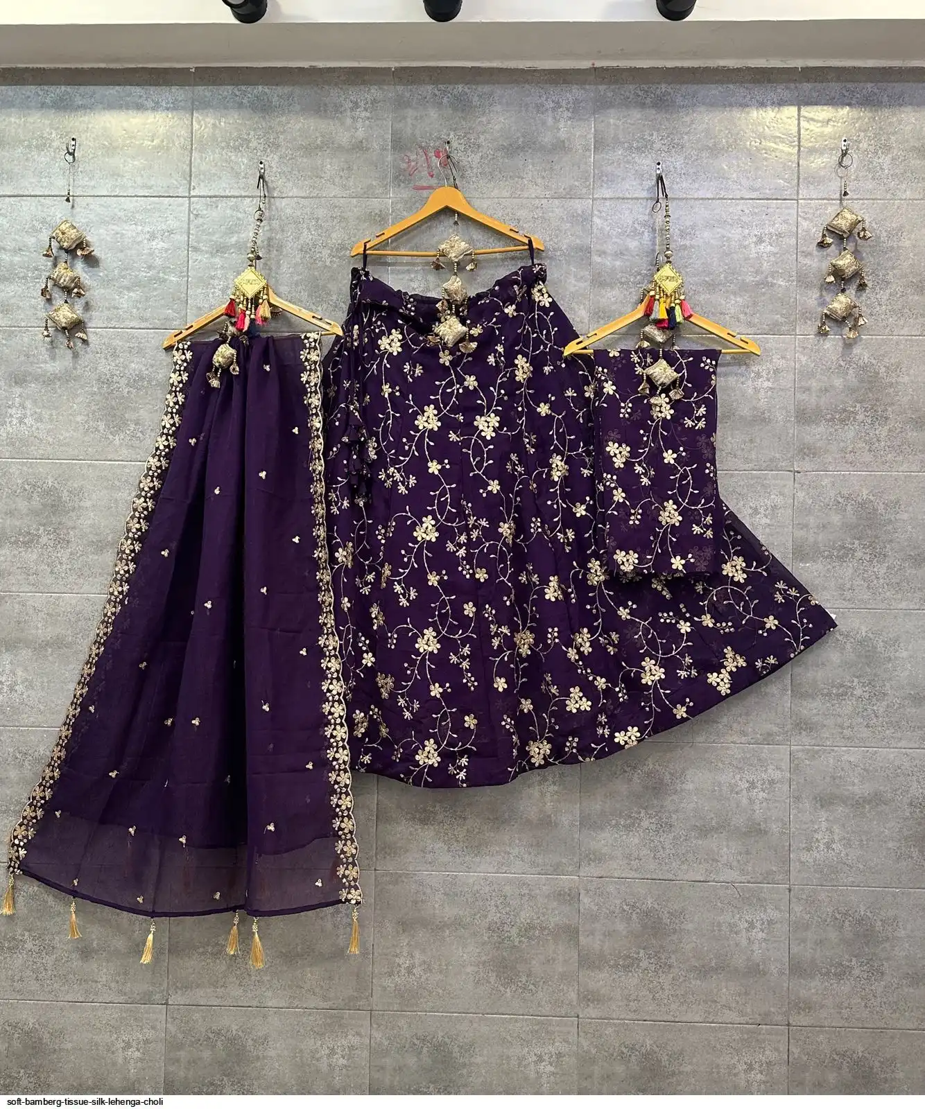 Soft Bamberg tissue silk chaniya choli with sequence work