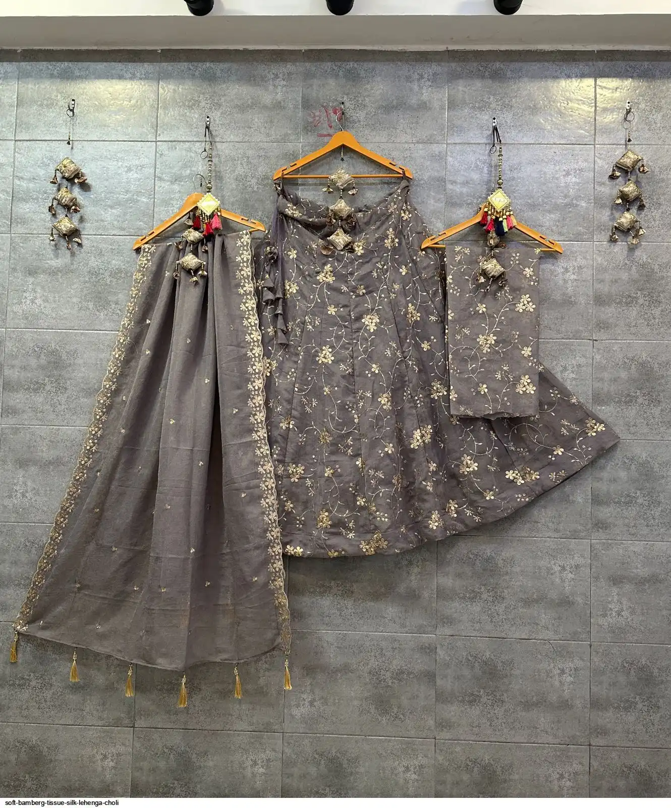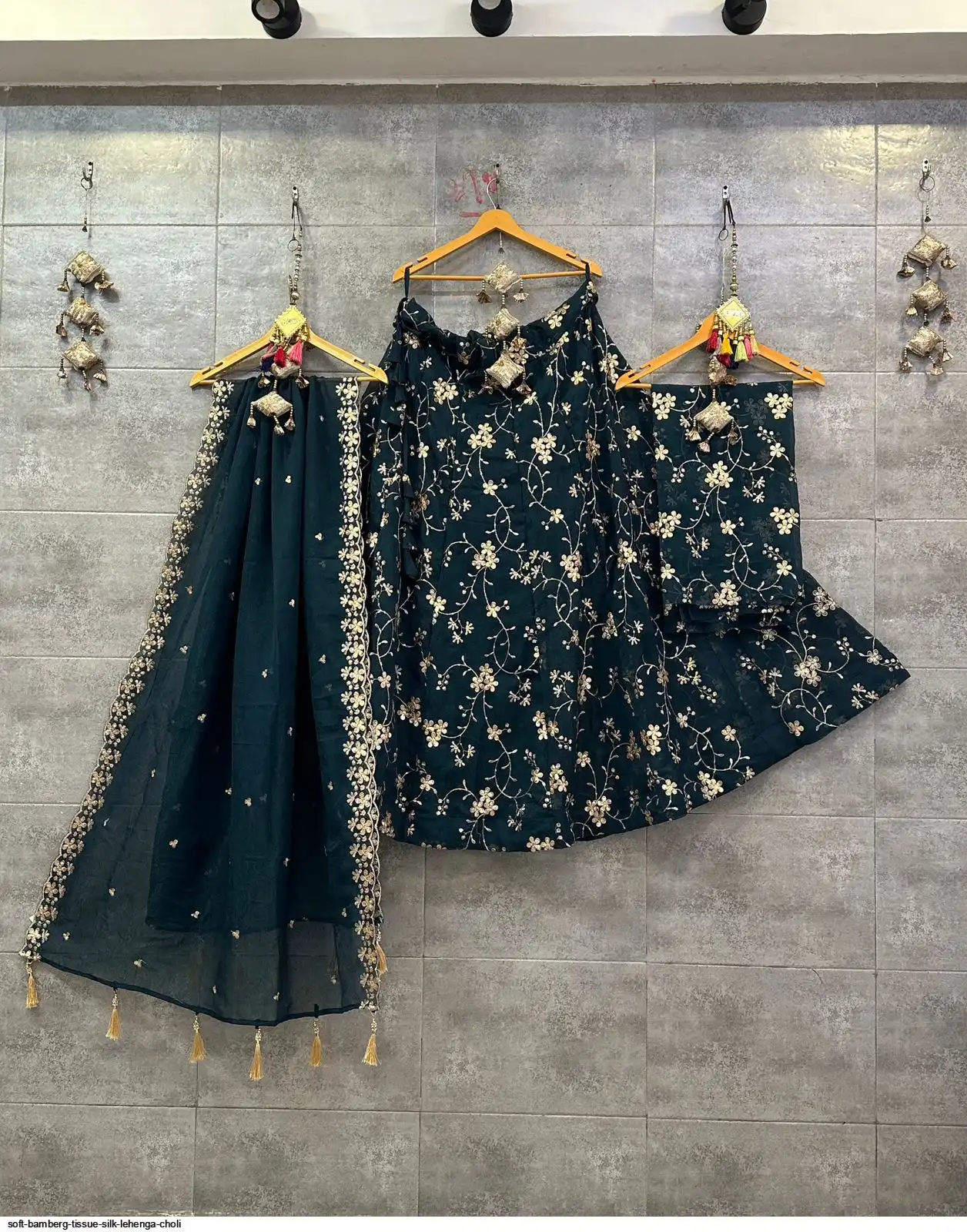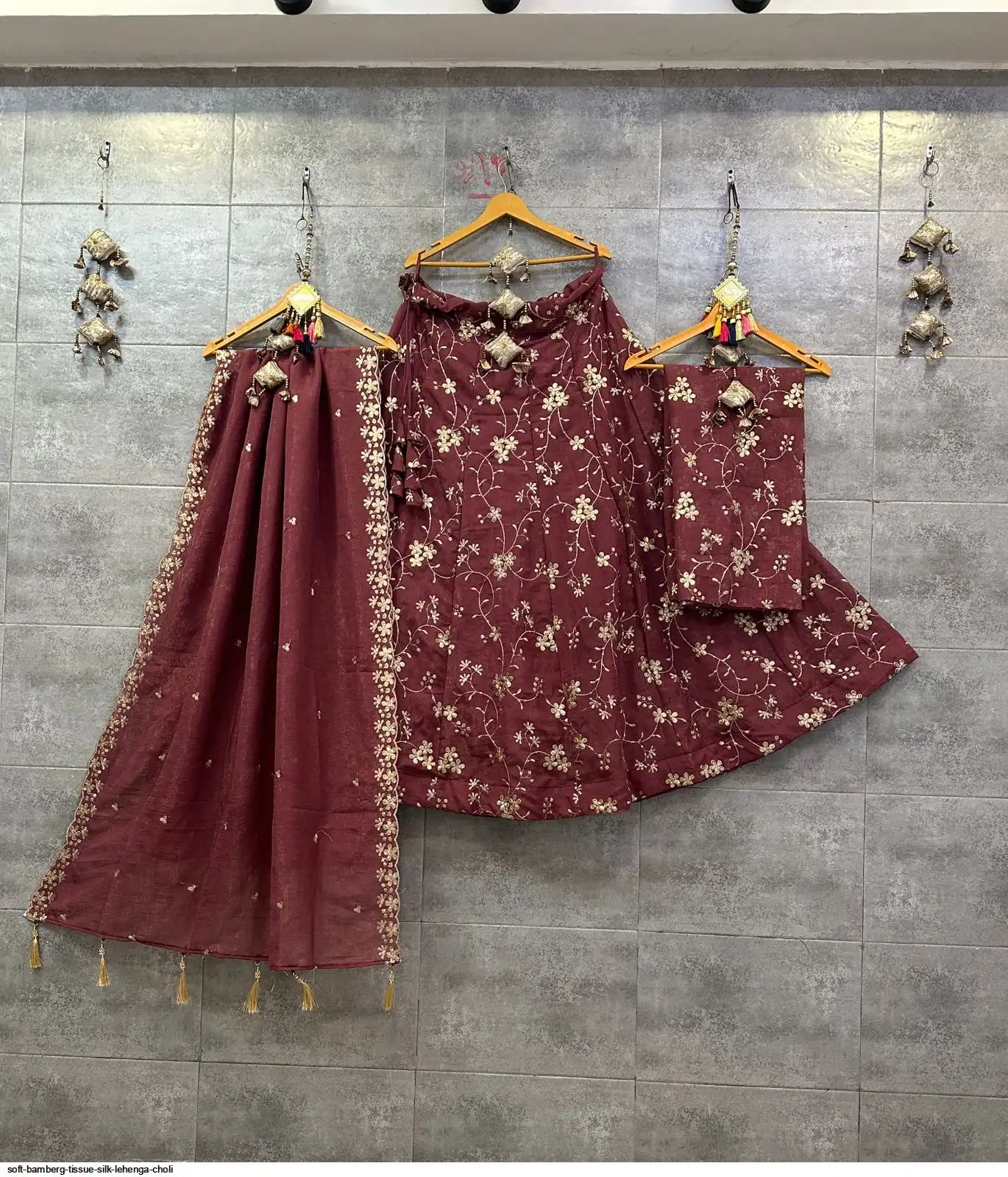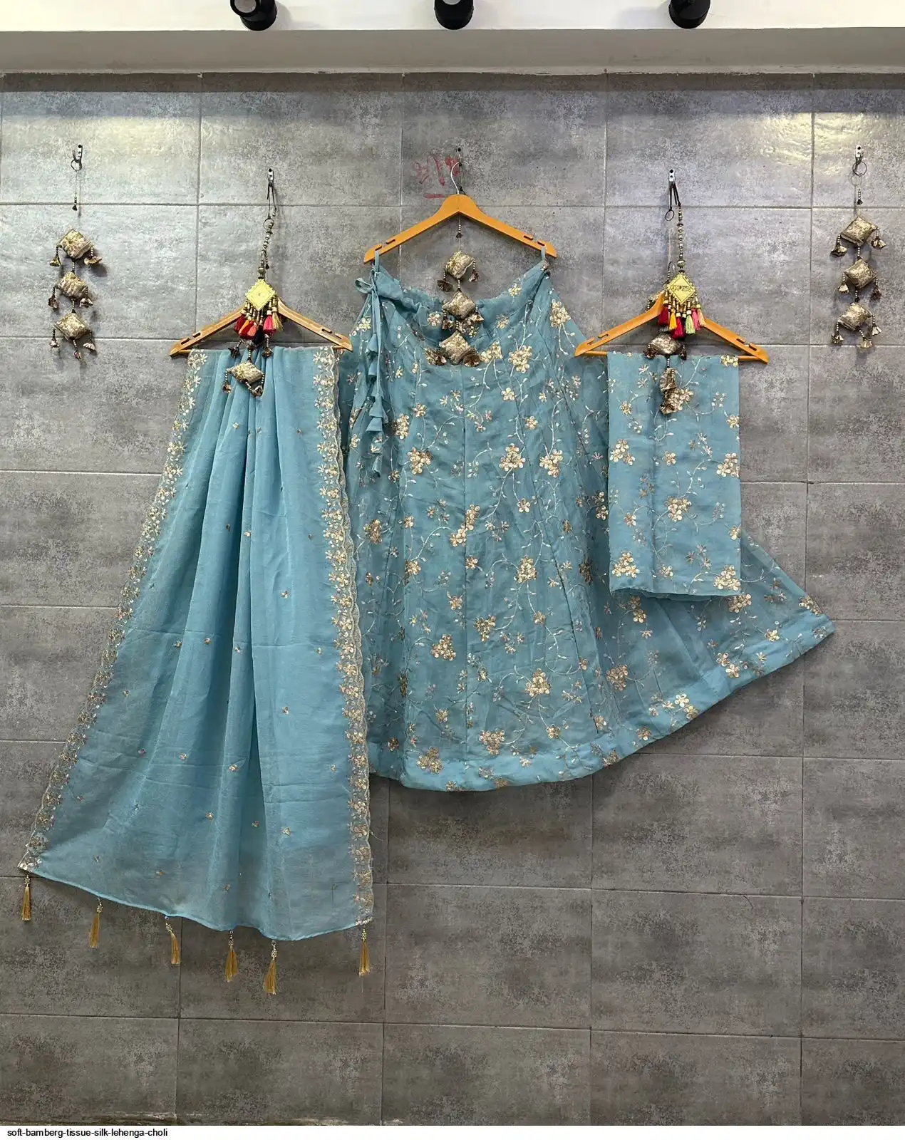 Soft Bamberg tissue silk chaniya choli with sequence work