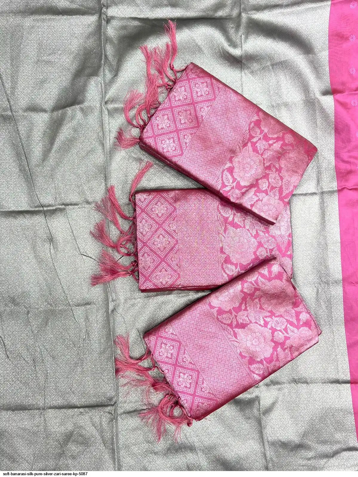 Soft banarasi Silk Saree With Weaving & Silver Zari with Heavy Pallu & Zari Wooven Border with Raning Blouse