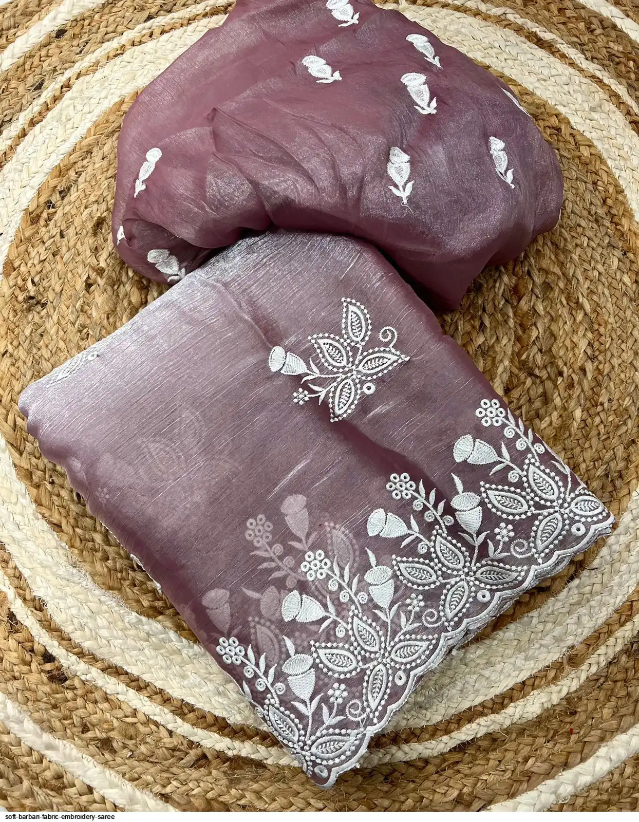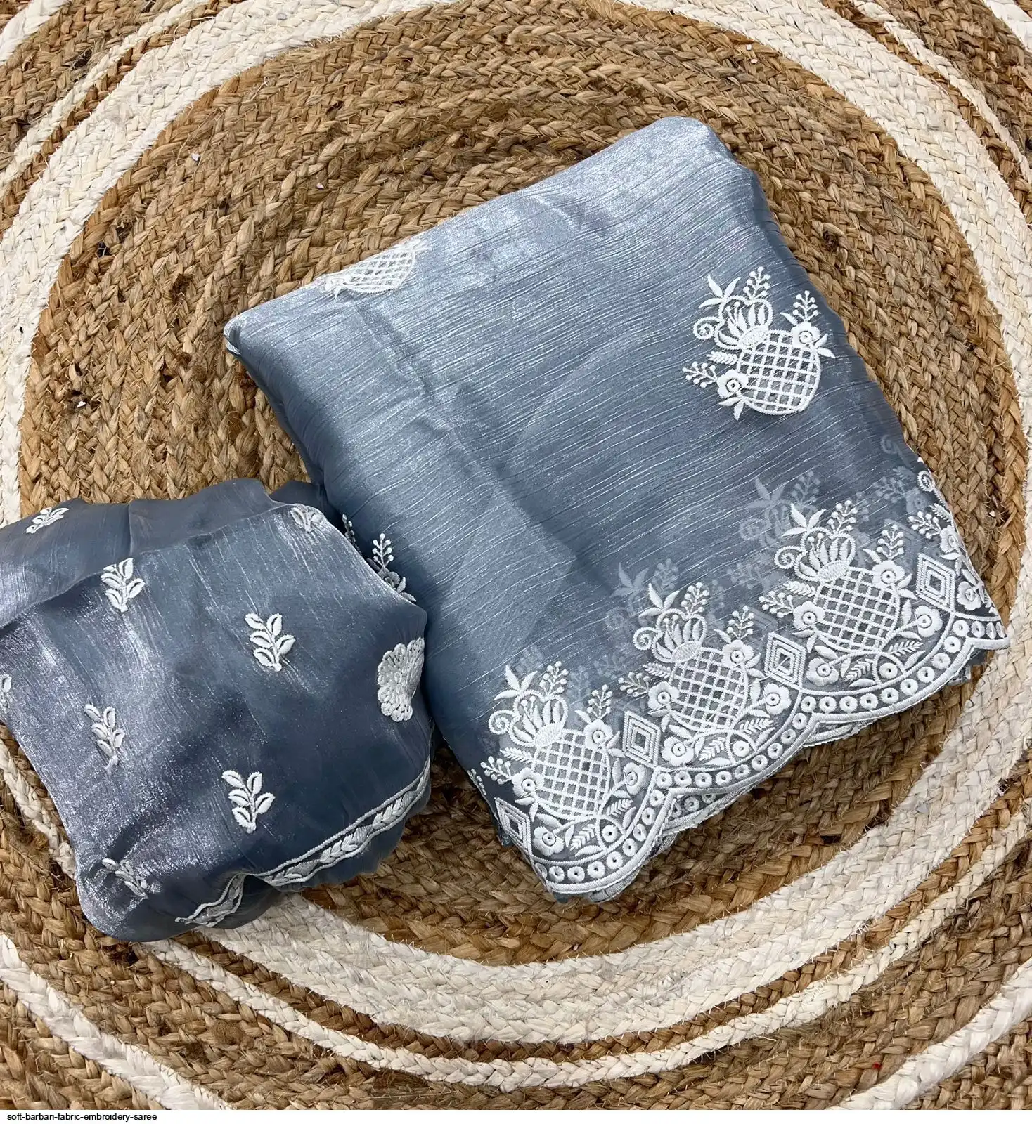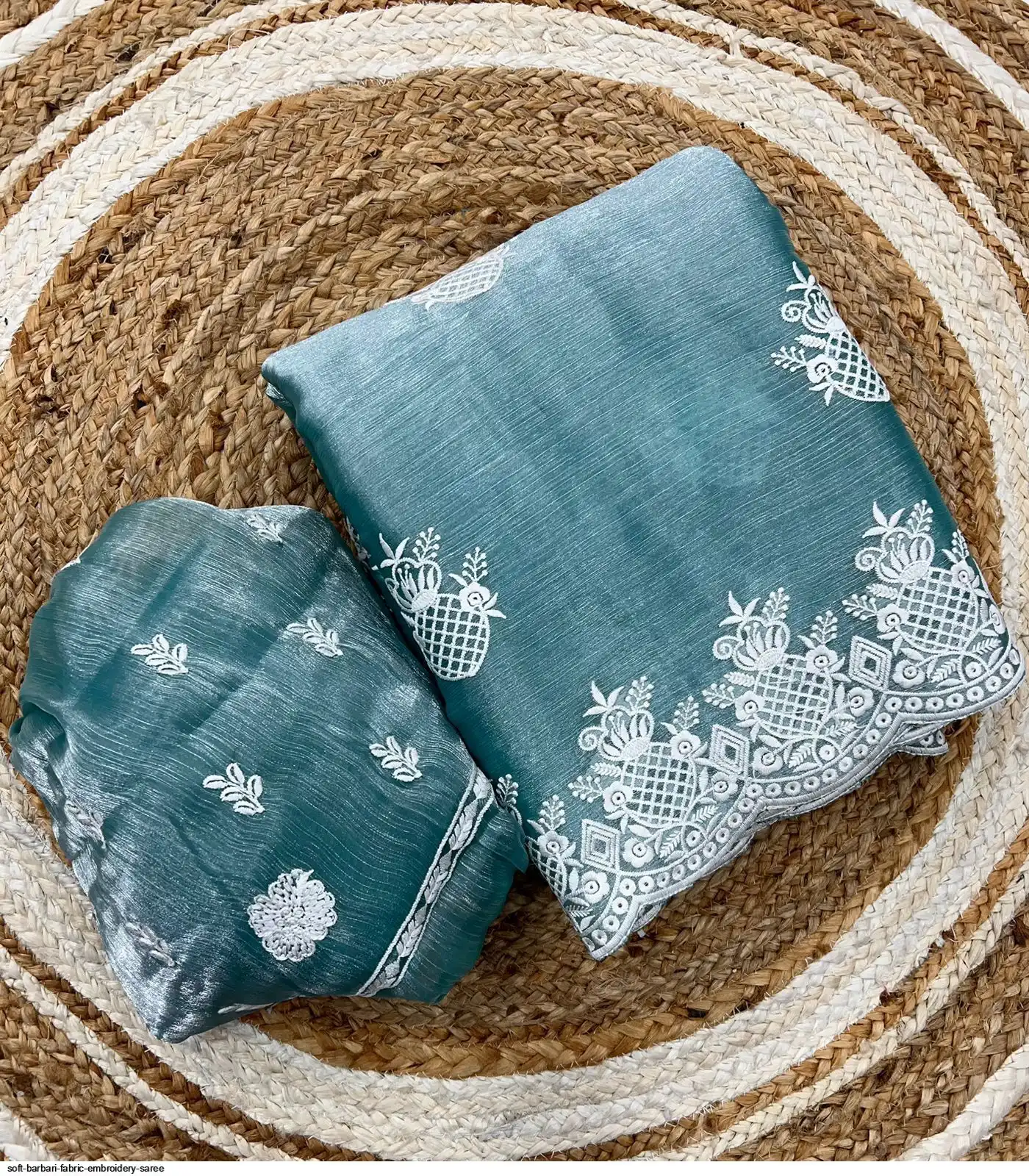 Fabric - Soft Barbari Fabric With White Threading Embroidery Work And Runing Embroidery Work Blouse