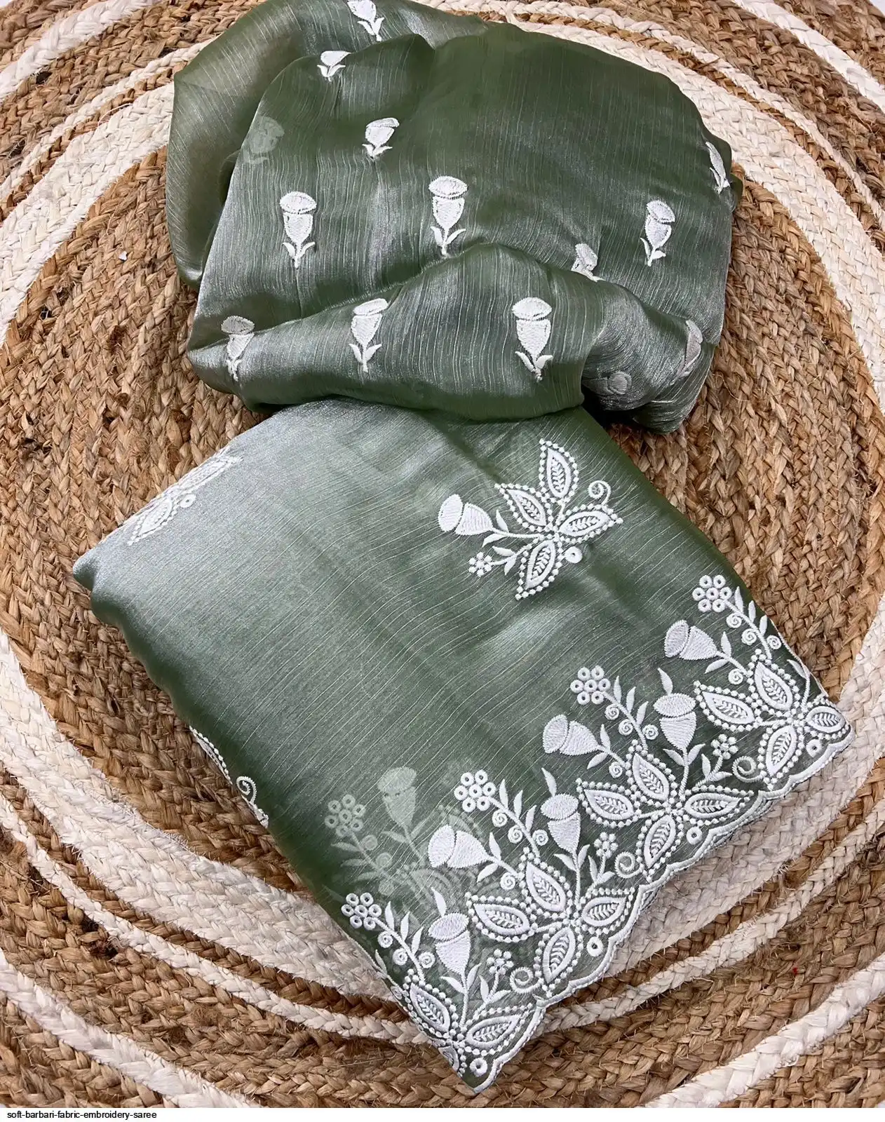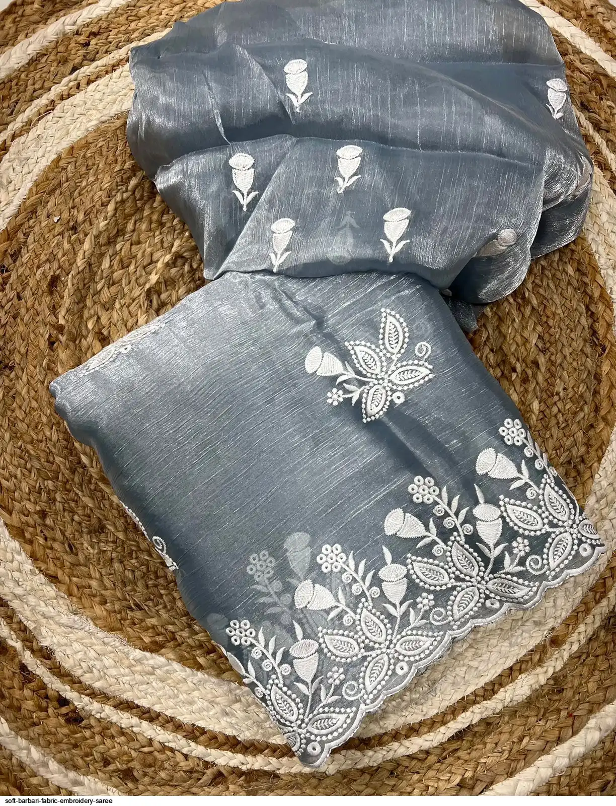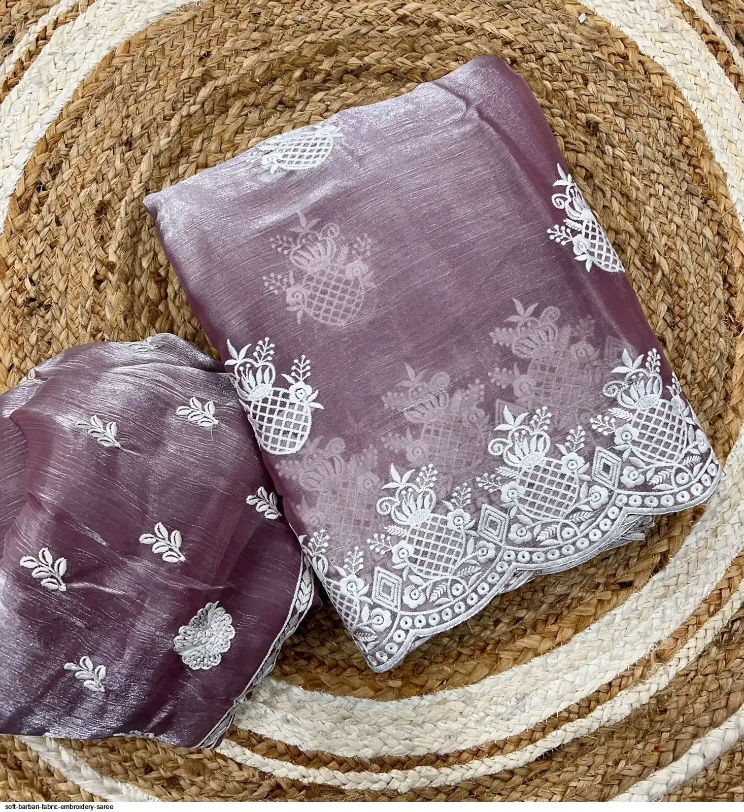 Fabric - Soft Barbari Fabric With White Threading Embroidery Work And Runing Embroidery Work Blouse
