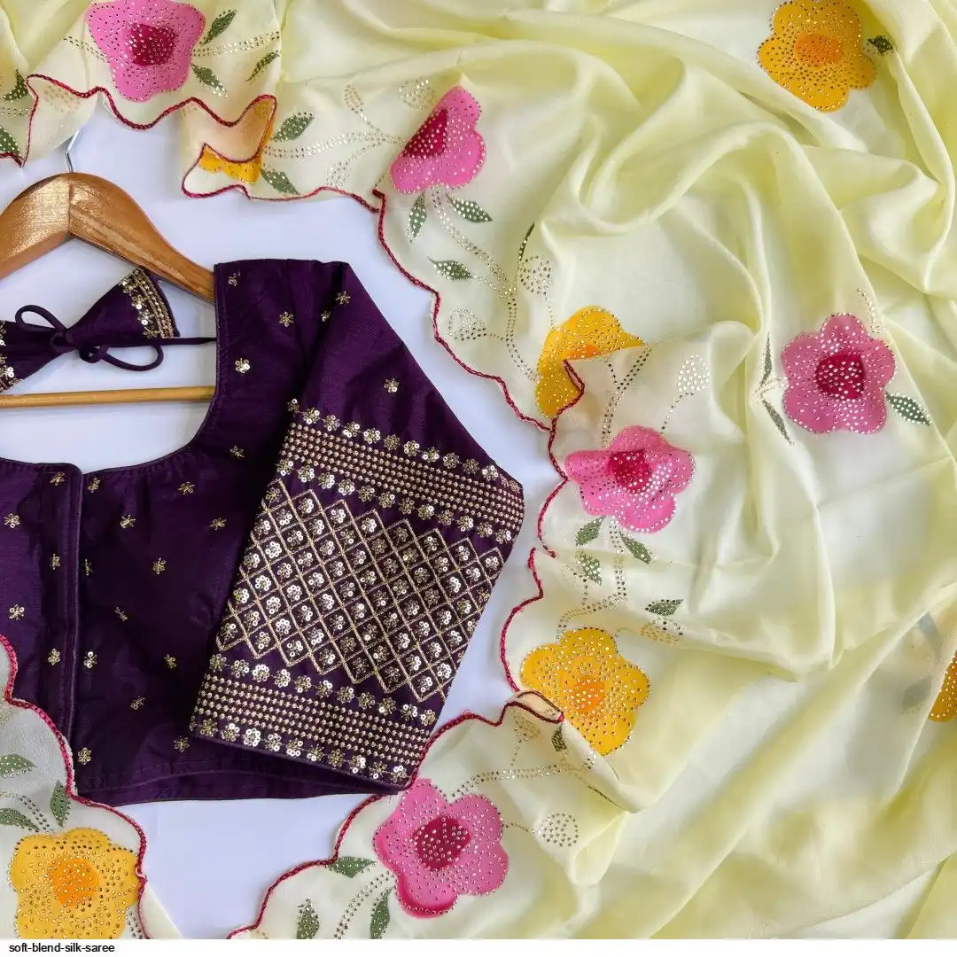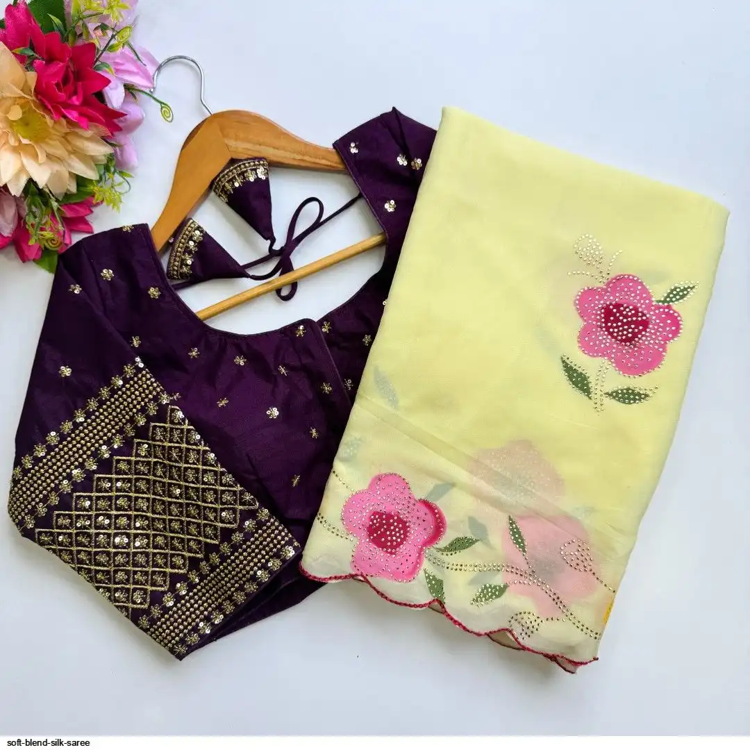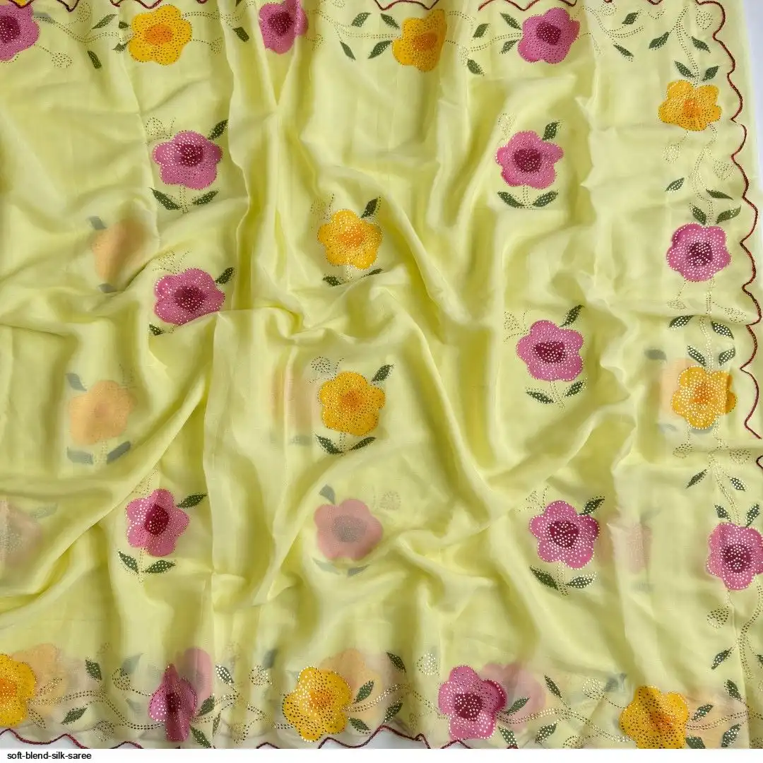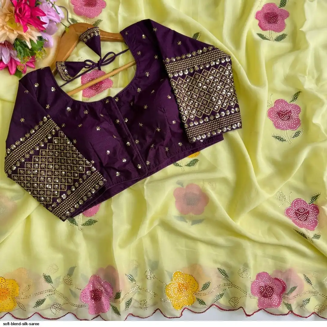 Soft blend silk saree with hand paint with golden drop and stitched silk blouse with work