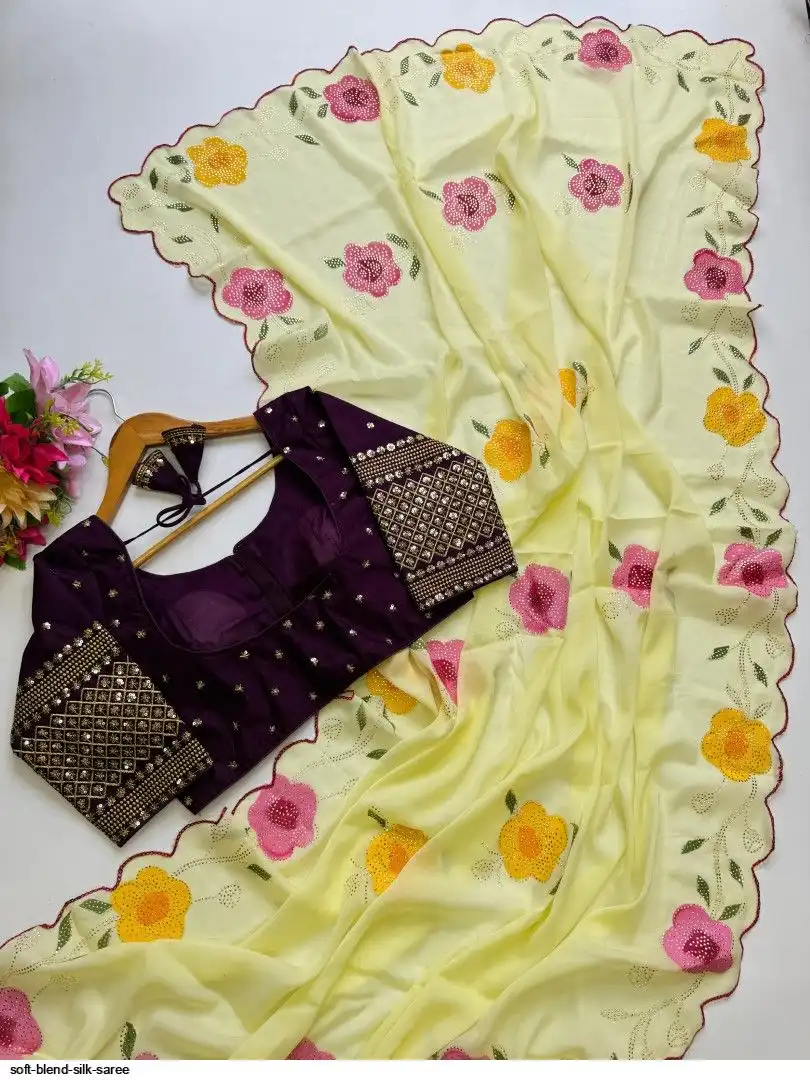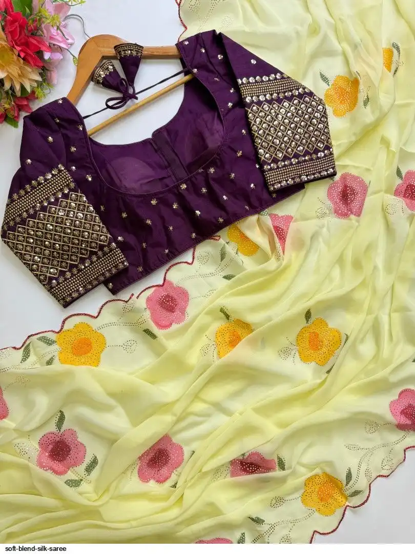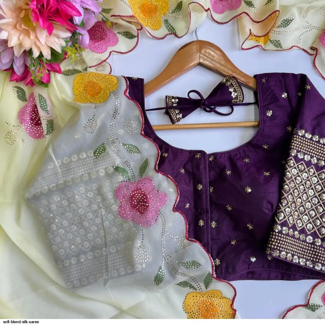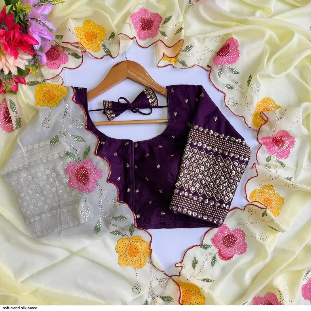 Soft blend silk saree with hand paint with golden drop and stitched silk blouse with work
